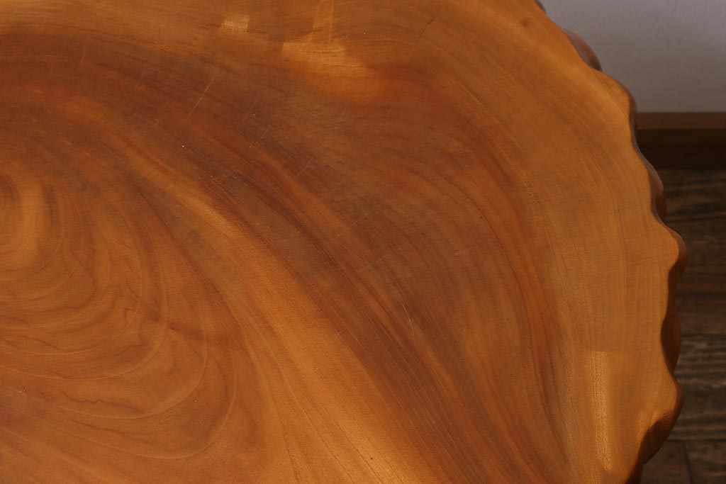 天板は贅沢に輪切りにした一枚板を使用し、