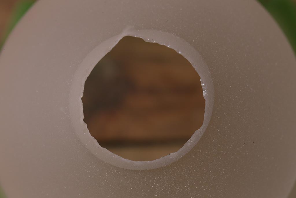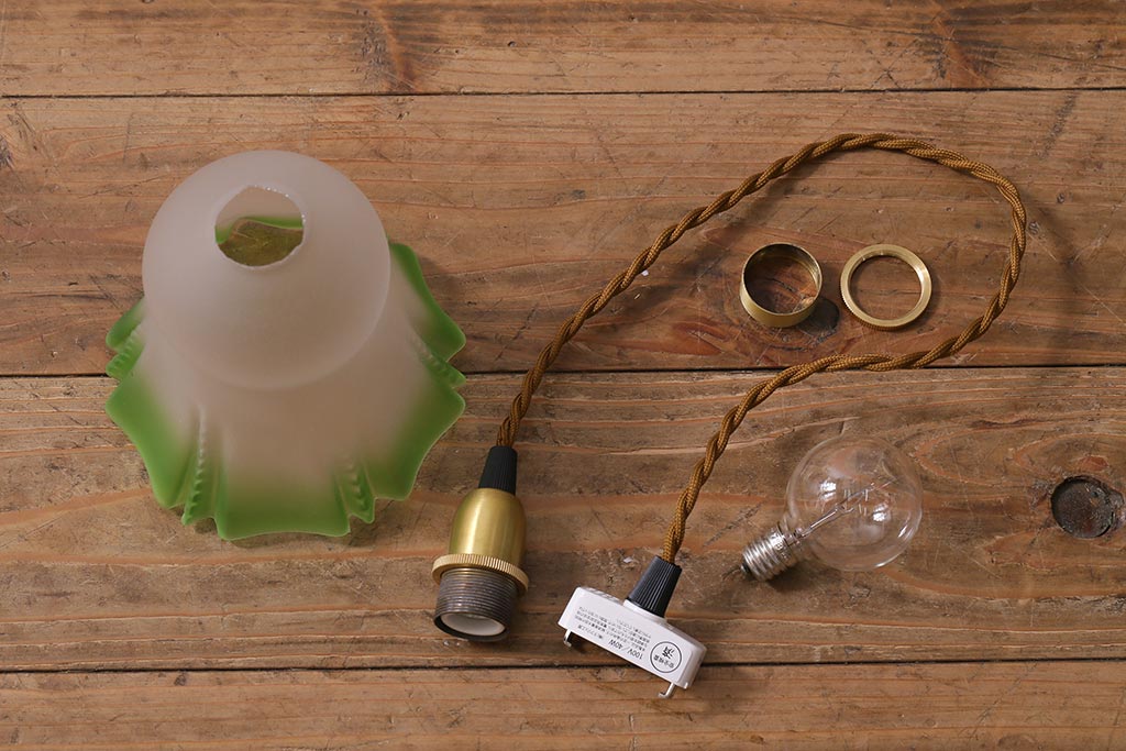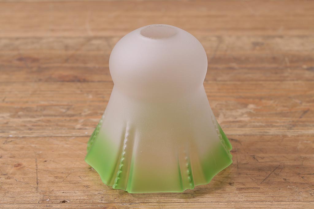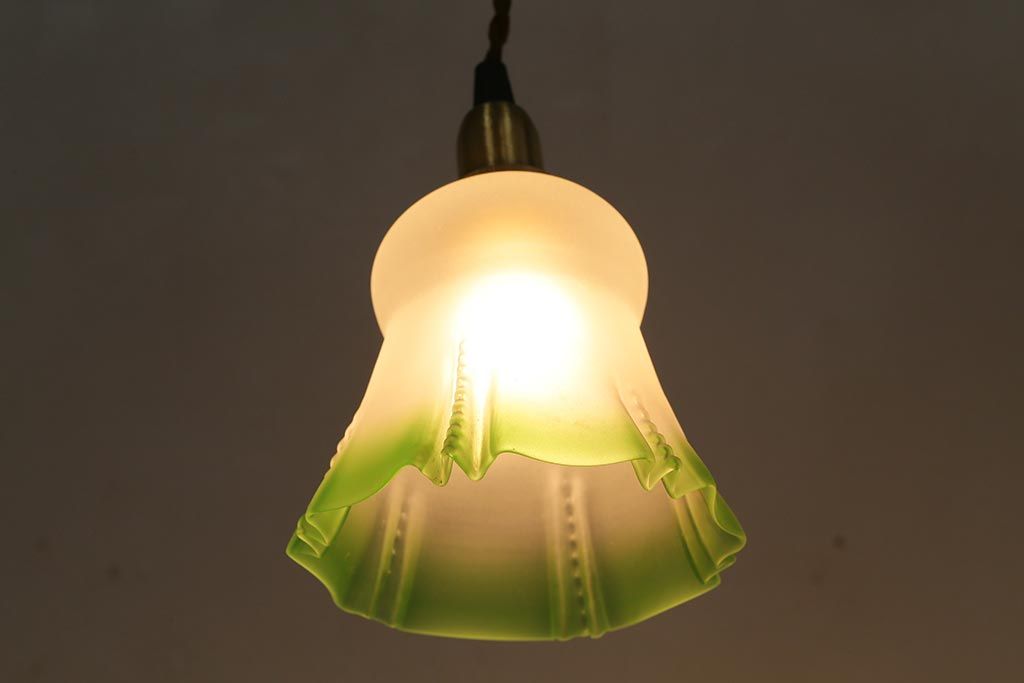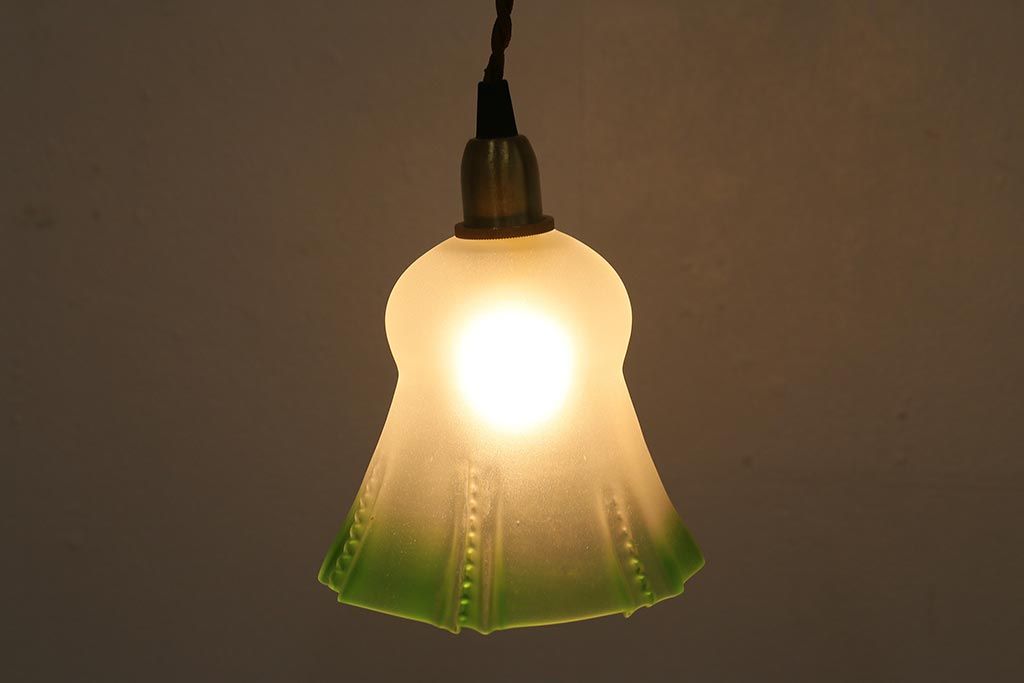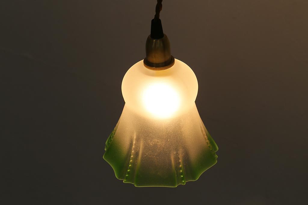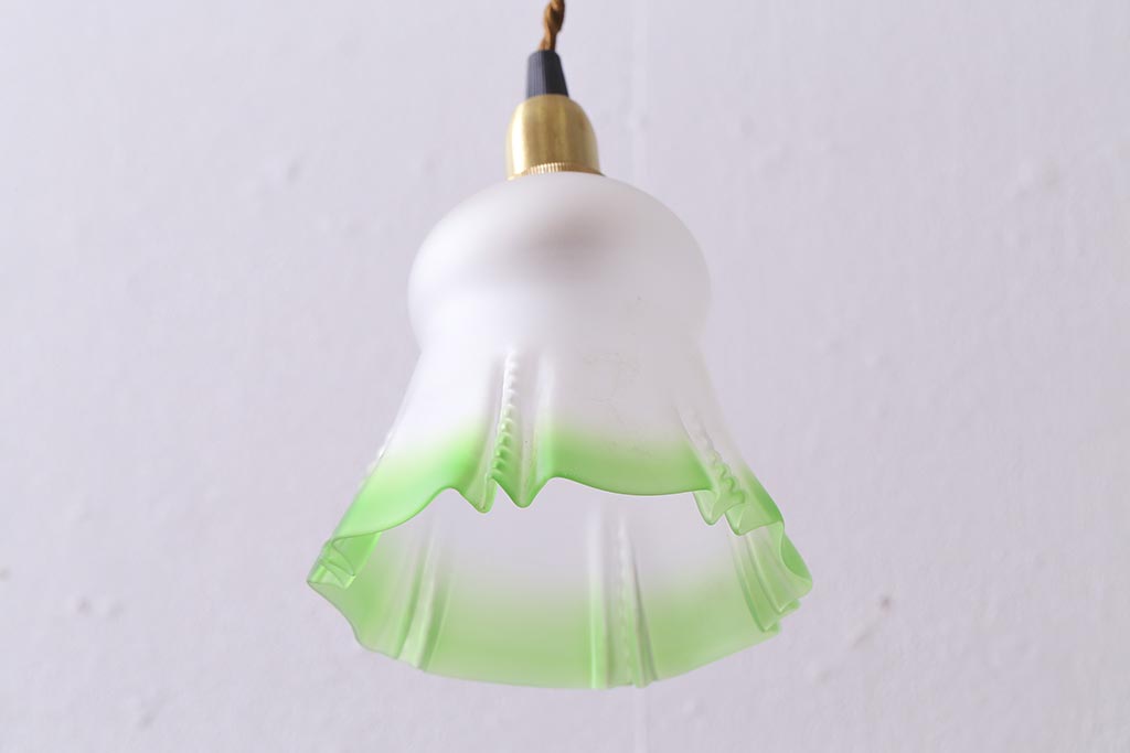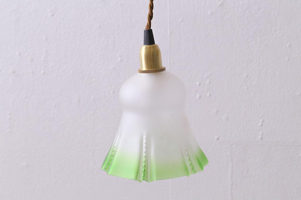 照明・ランプ> ペンダントライト > ヴィンテージ照明 イギリスビンテージ フロストガラス グリーンカラーがアクセントの小振りなペンダントライト(天井照明、シェード、吊り下げ照明)(R-041030)