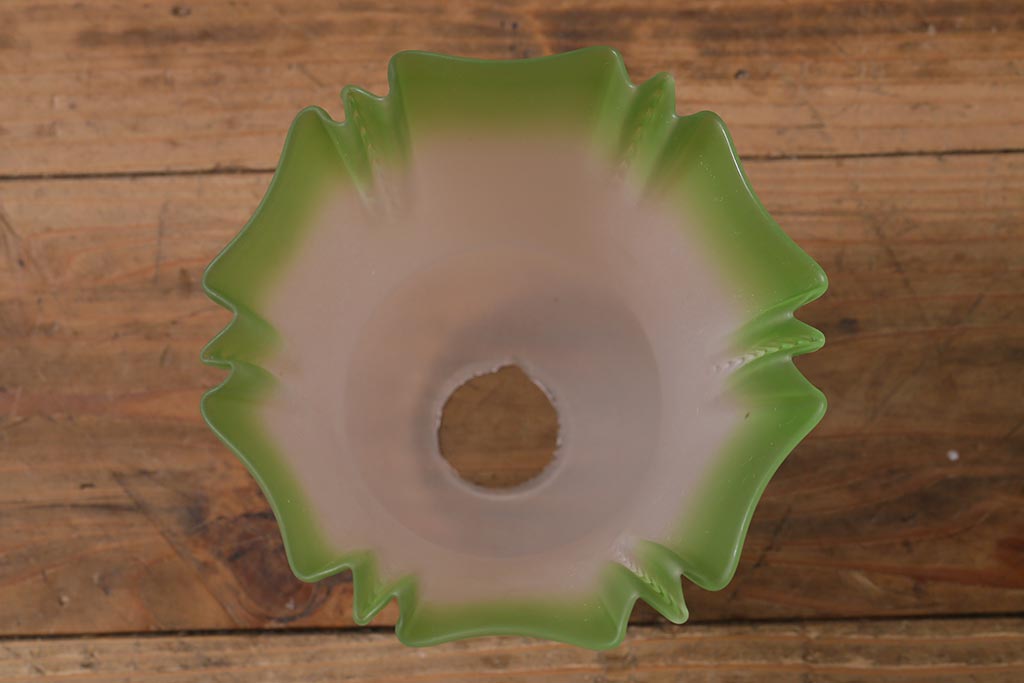 ヴィンテージ照明 イギリスビンテージ フロストガラス グリーンカラーがアクセントの小振りなペンダントライト(天井照明、シェード、吊り下げ照明)(R-041030)です。