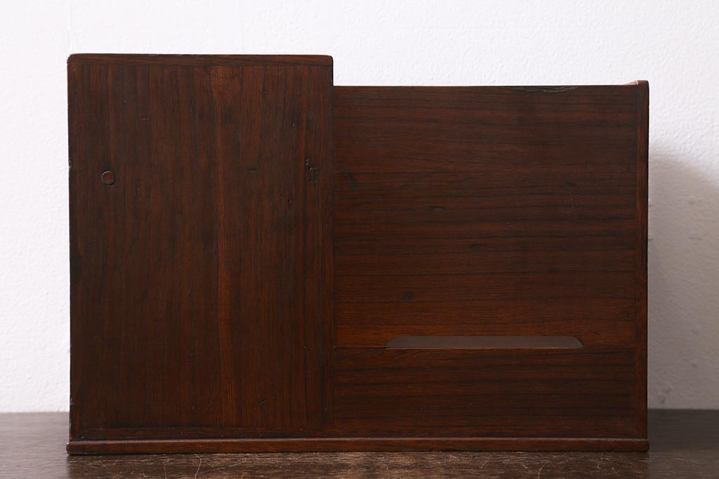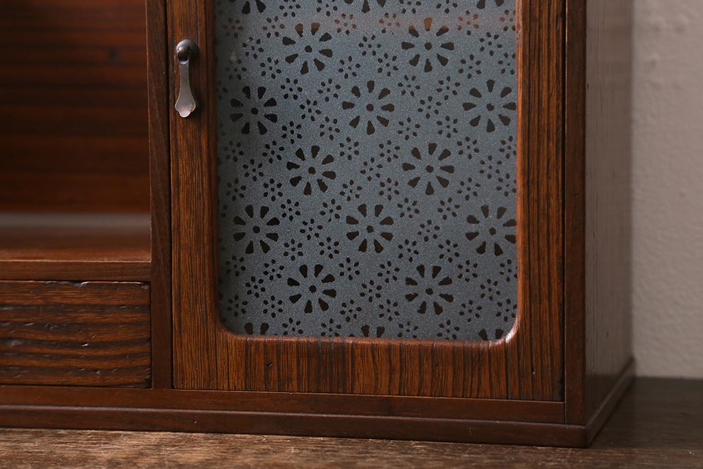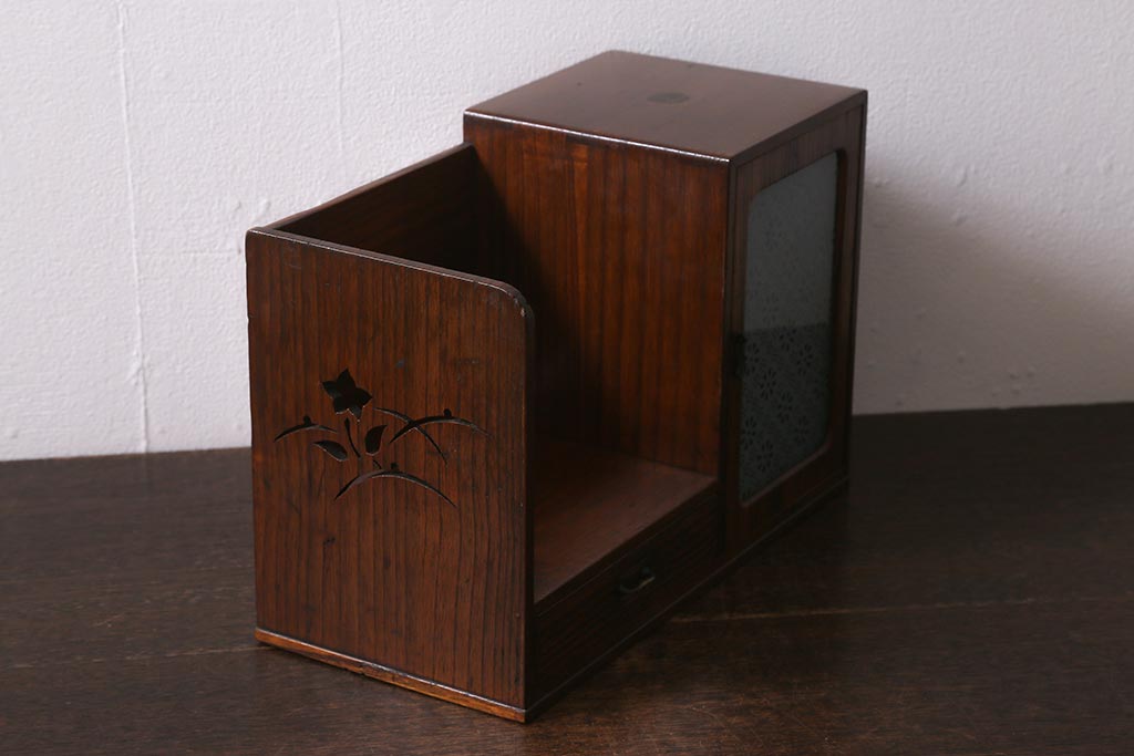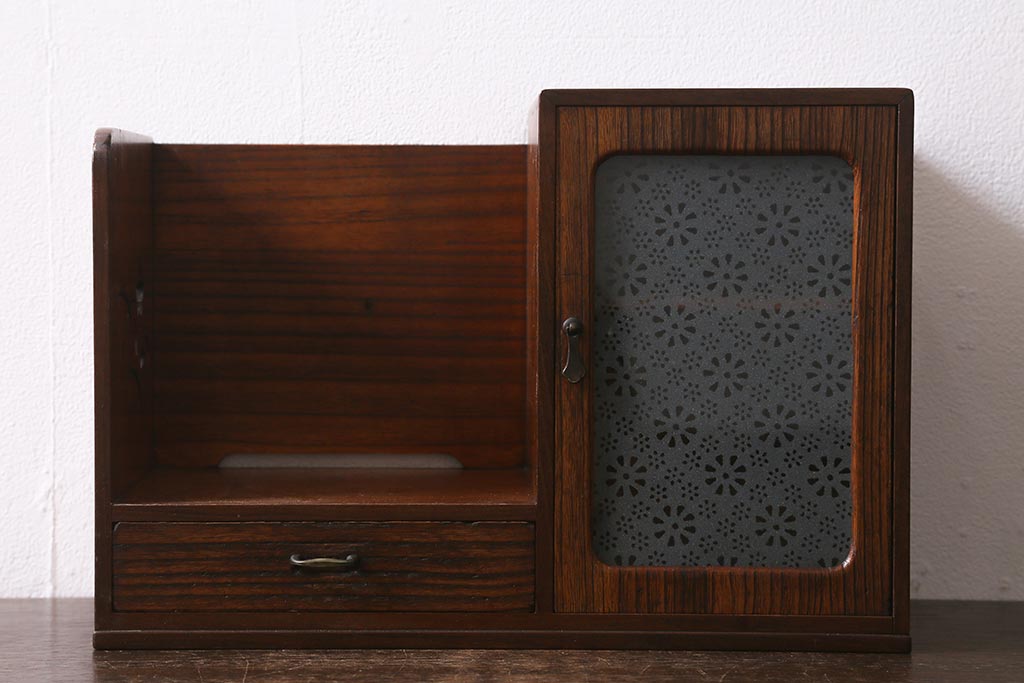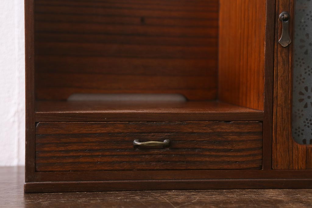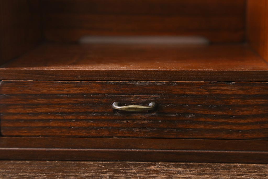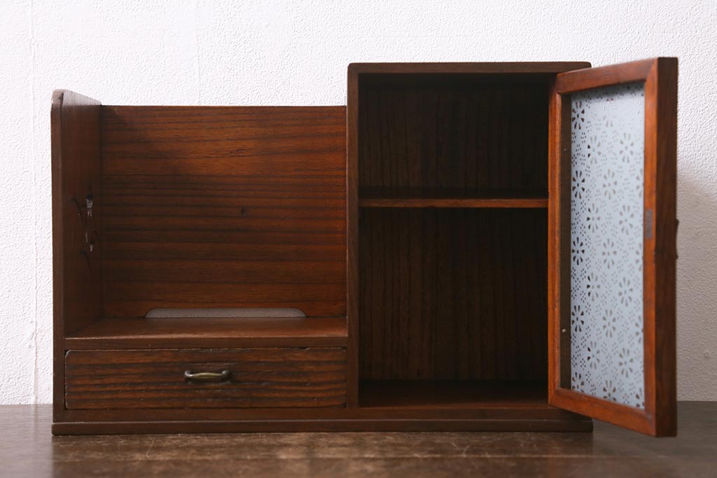 小物収納・トランク > アンティーク雑貨 昭和初期 総桐材 レトロガラス入り ガラス戸棚と引き出しが付いたレトロな本立て(ブックスタンド)(R-041172)