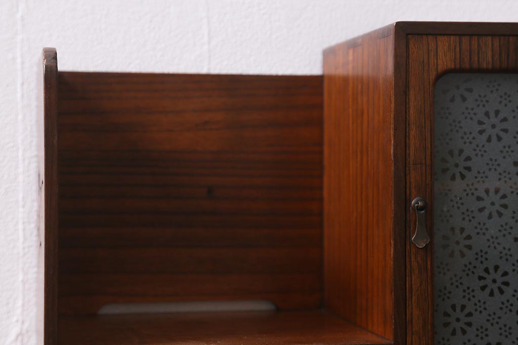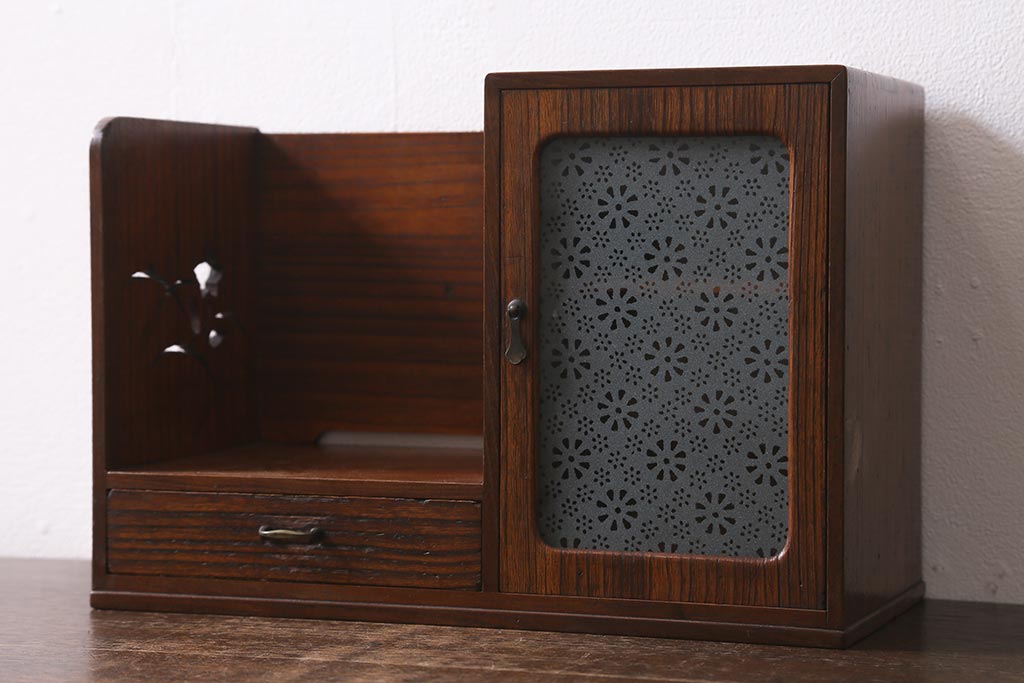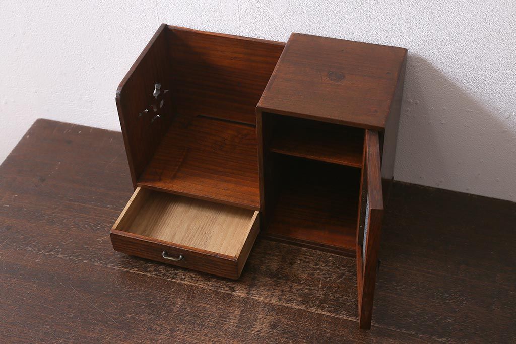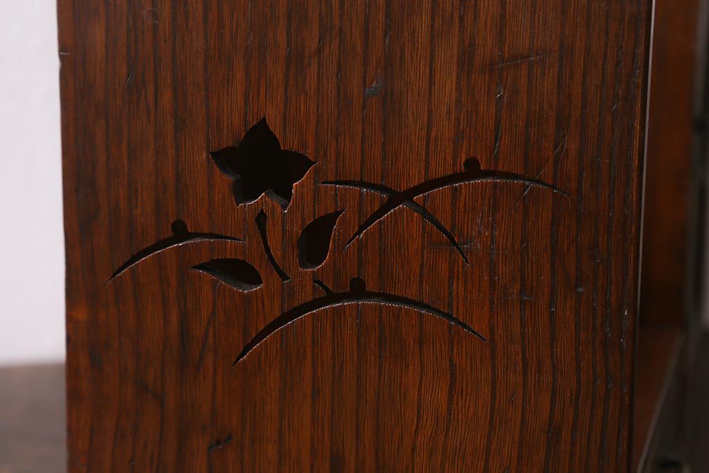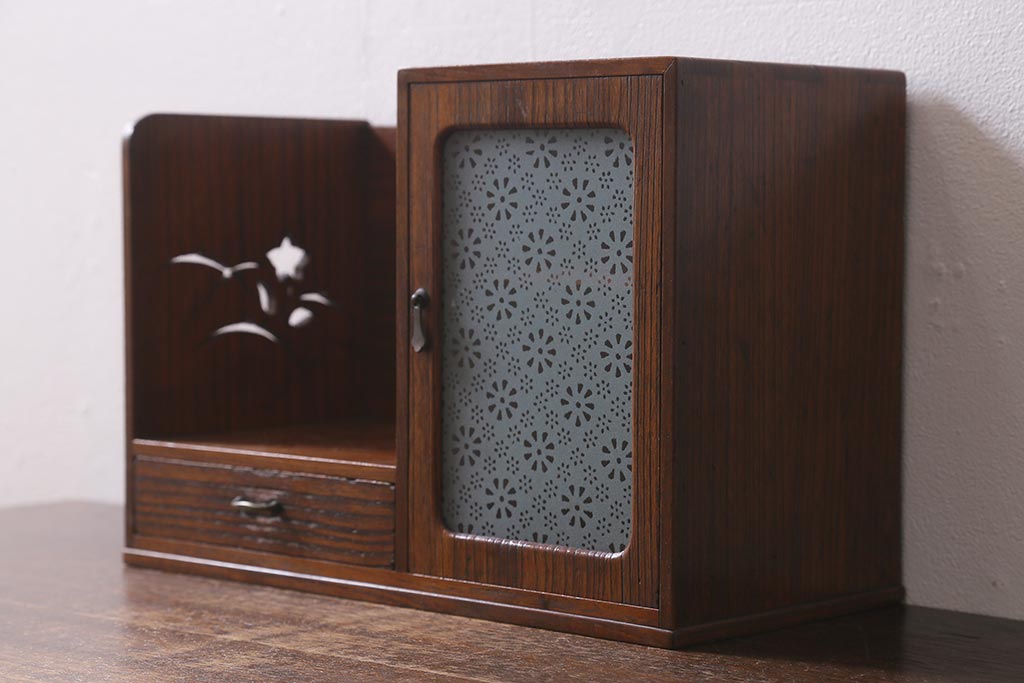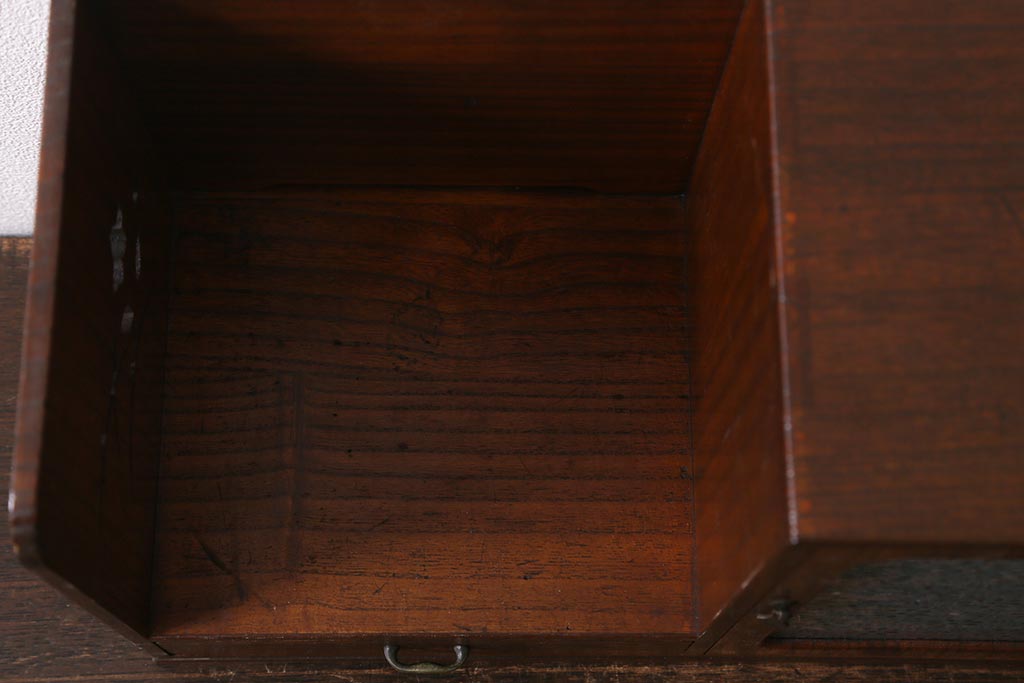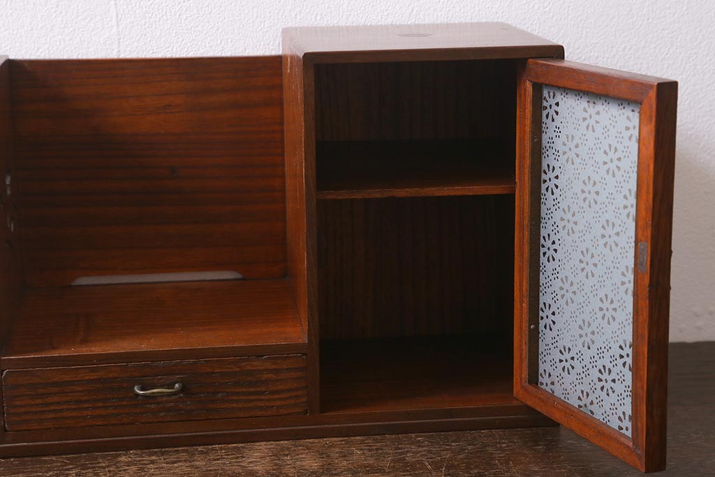 小物収納・トランク > アンティーク雑貨 昭和初期 総桐材 レトロガラス入り ガラス戸棚と引き出しが付いたレトロな本立て(ブックスタンド)(R-041172)