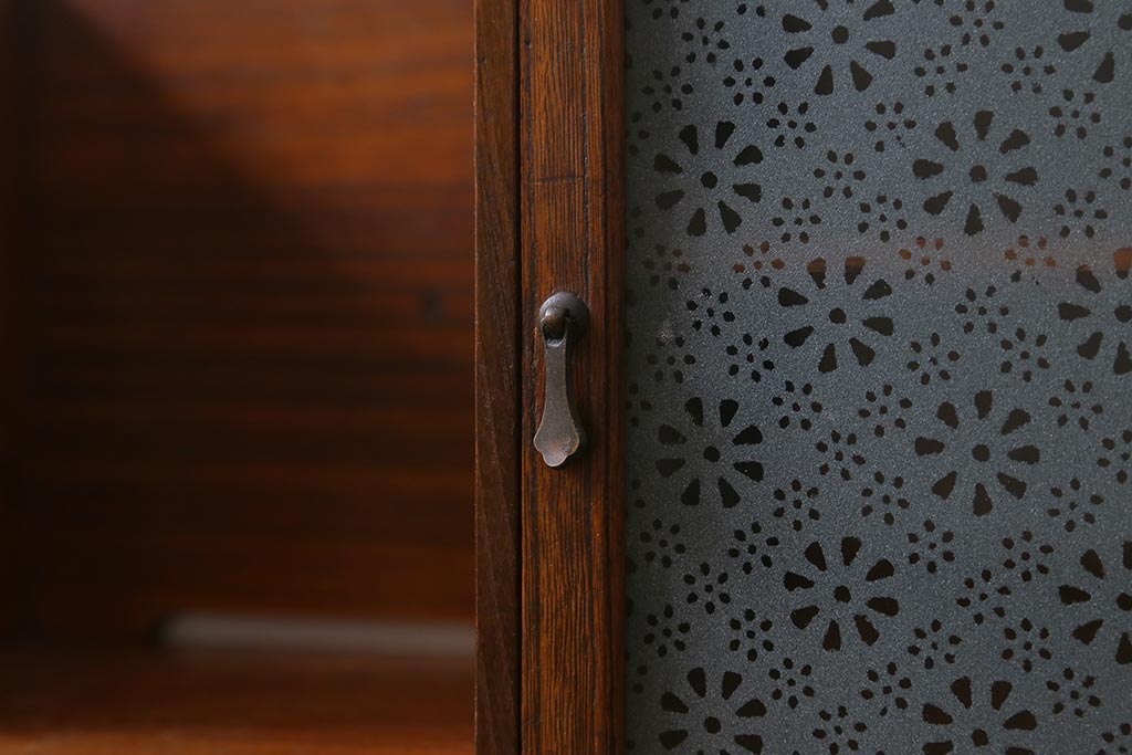 アンティーク雑貨 昭和初期 総桐材 レトロガラス入り ガラス戸棚と引き出しが付いたレトロな本立て(ブックスタンド)(R-041172)です。