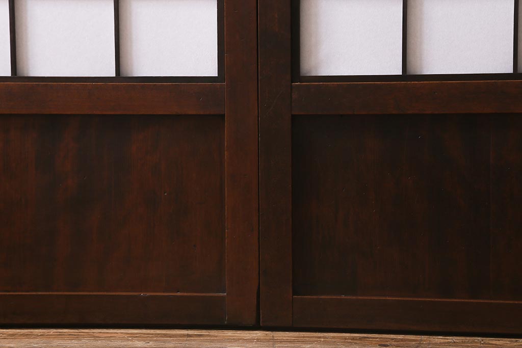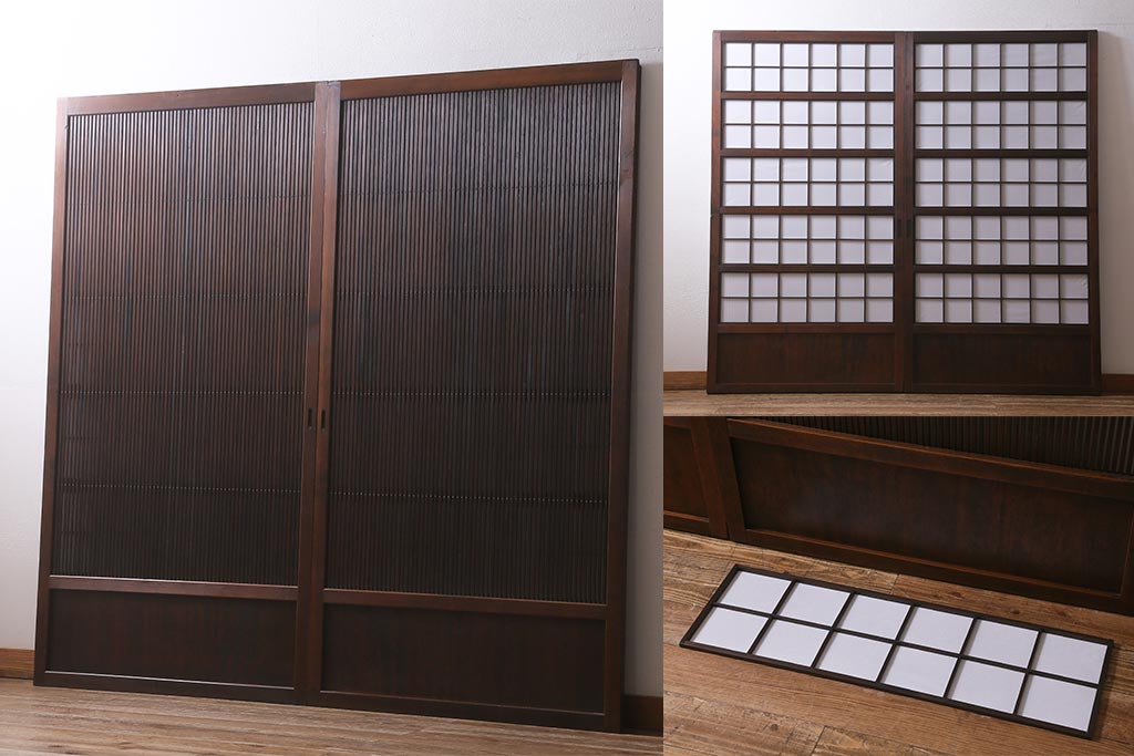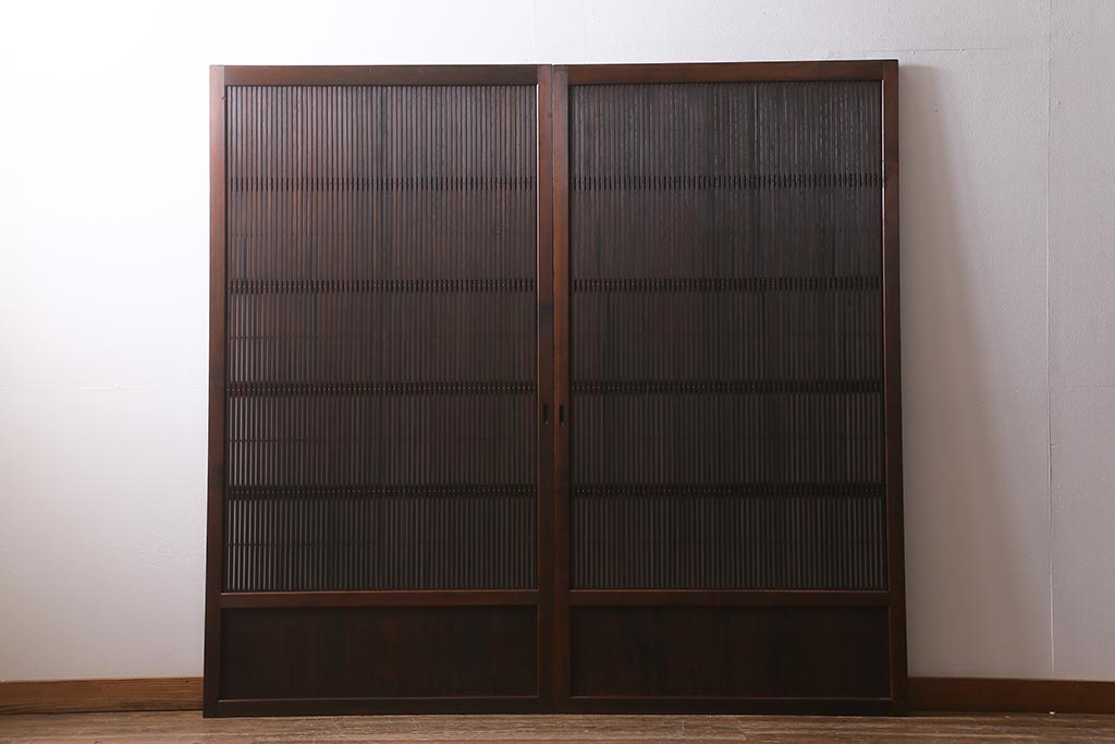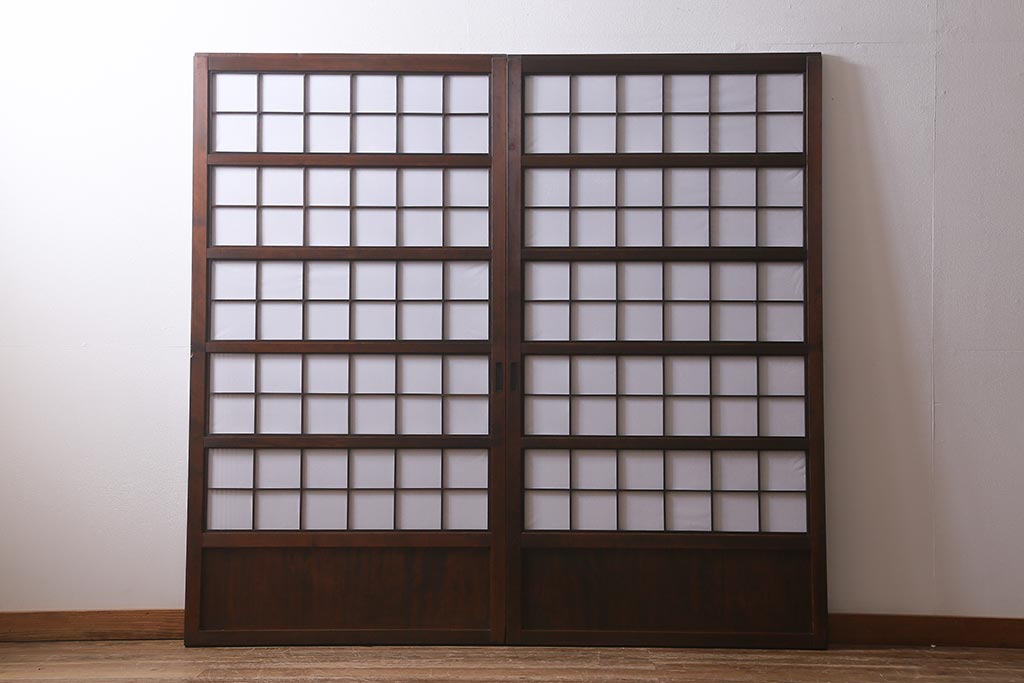 アンティーク建具 昭和中期 裏障子付き 上質な和の空間を演出する格子戸2枚セット(引き戸、建具)(R-041151)