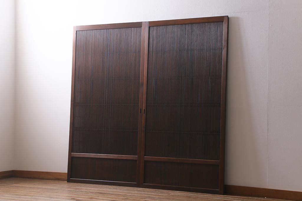 ドア・建具> 格子戸 > アンティーク建具 昭和中期 裏障子付き 上質な和の空間を演出する格子戸2枚セット(引き戸、建具)(R-041151)