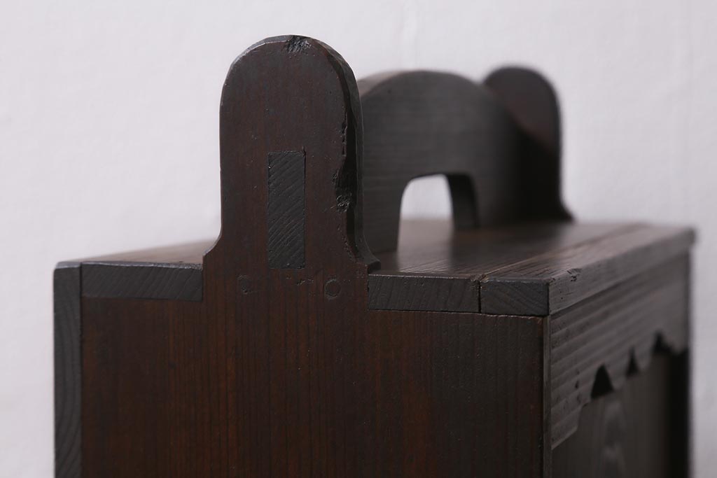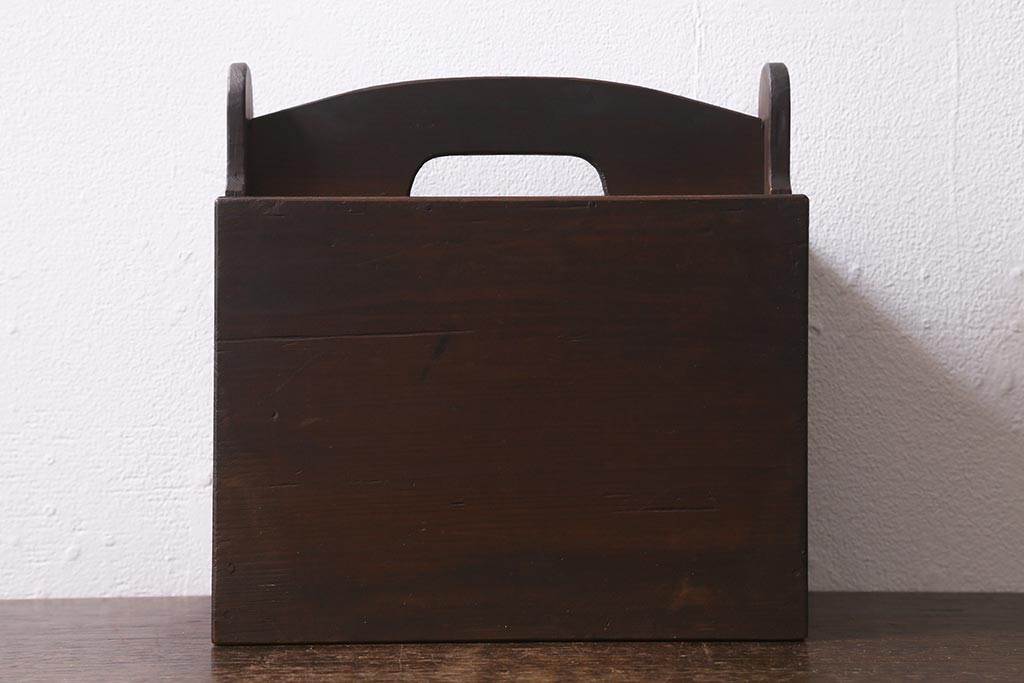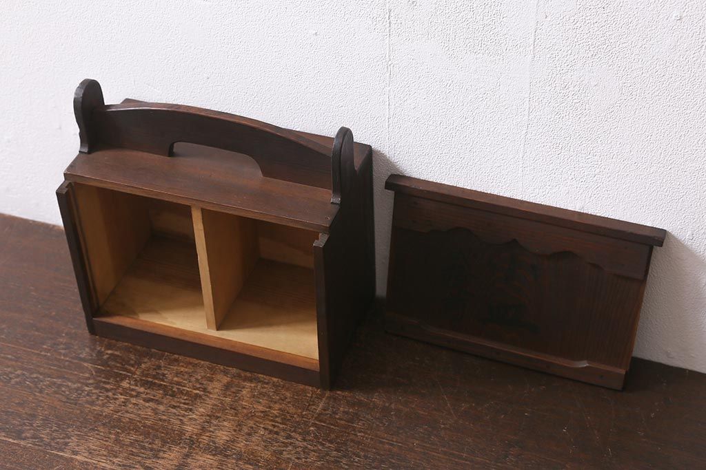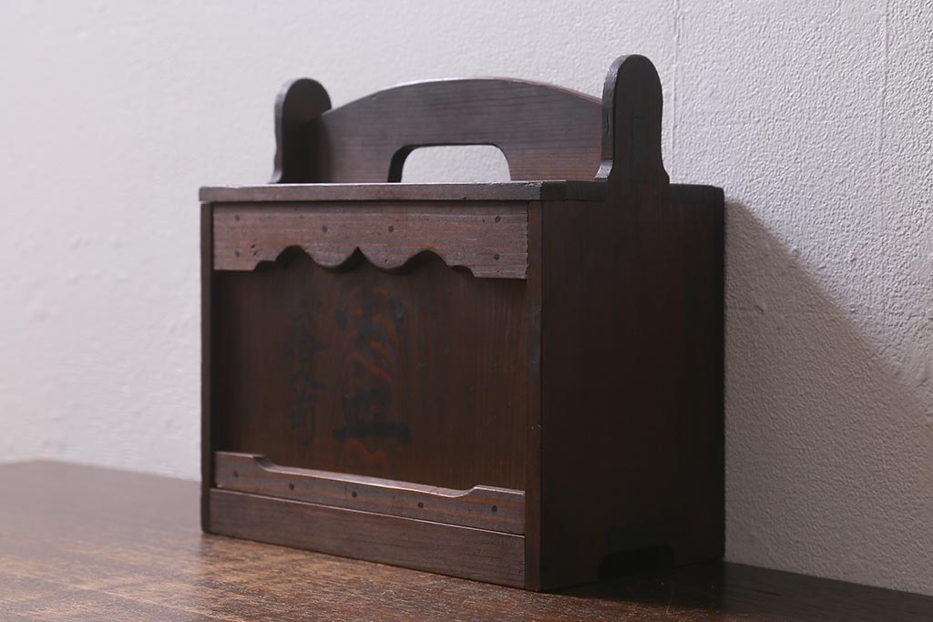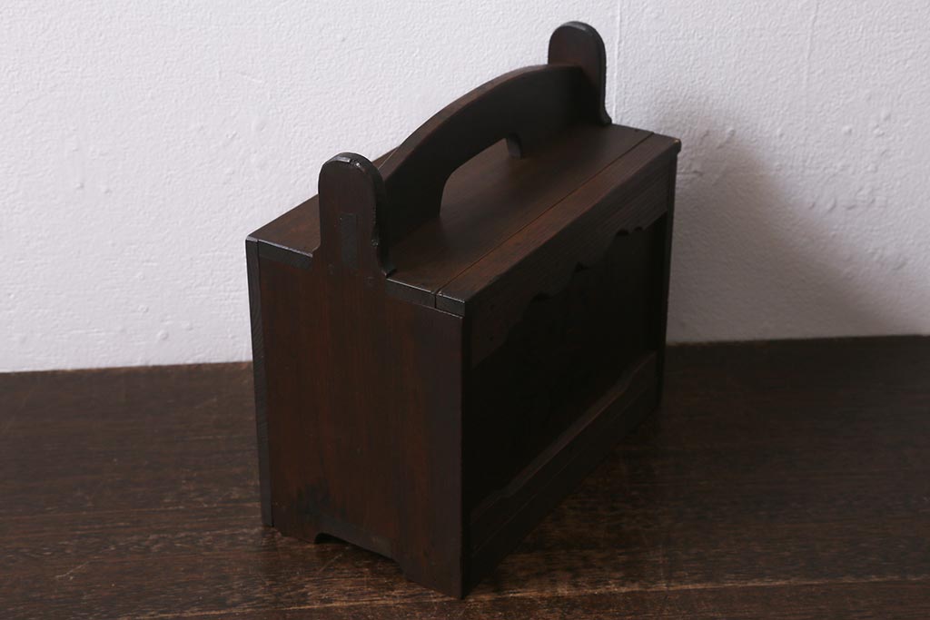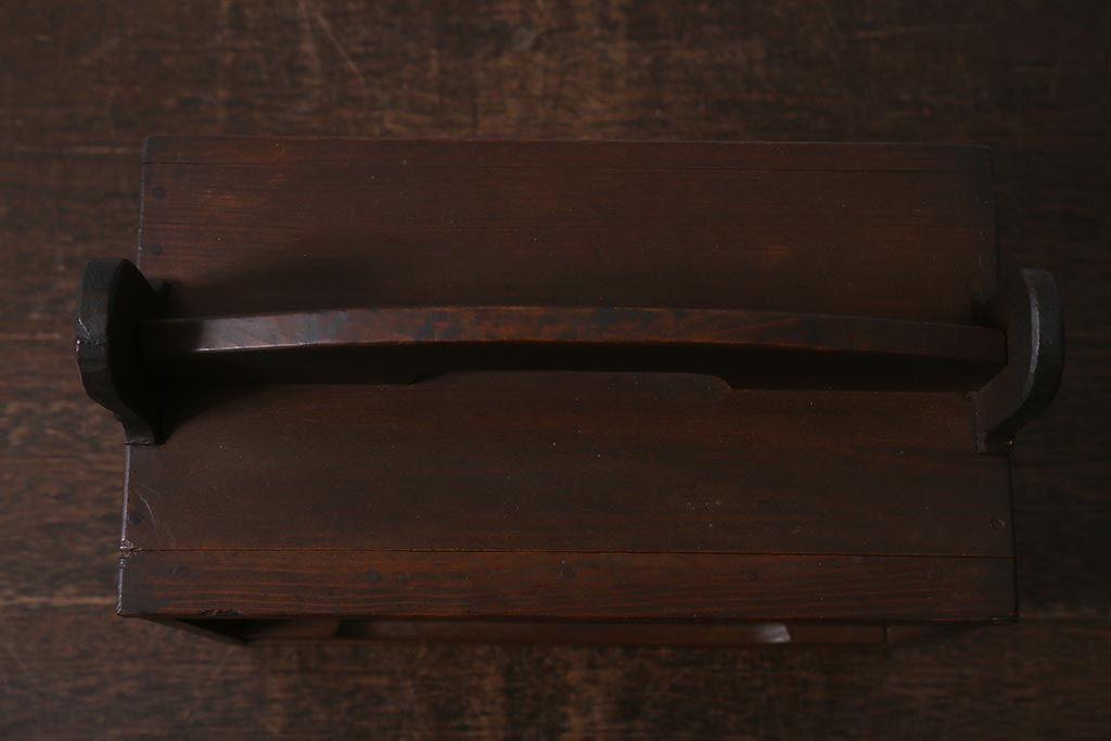 小物収納・トランク > アンティーク雑貨 古道具 大正期 小ぶりな木製のおかもち(岡持ち、木製出前箱、皿箱、収納箱)(R-041159)