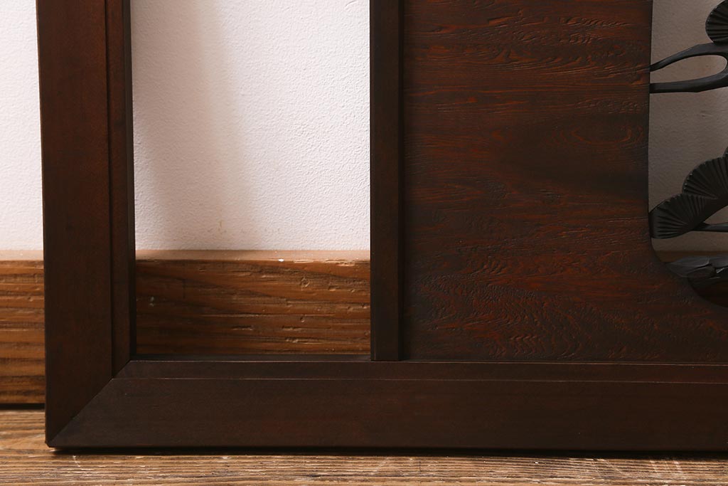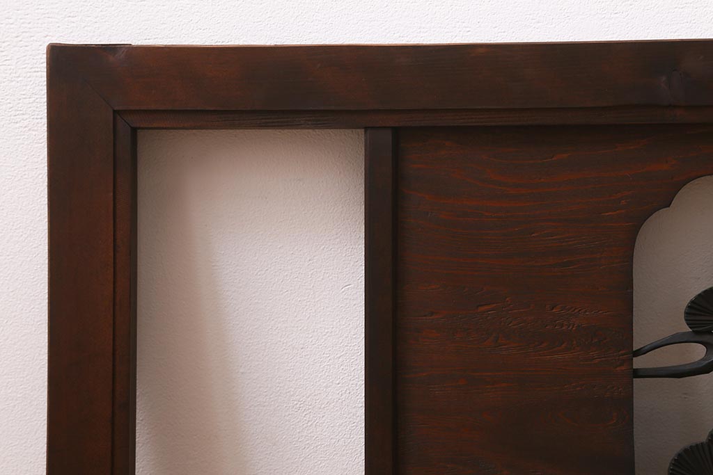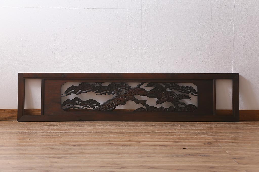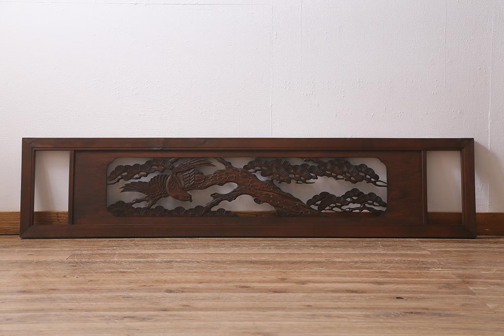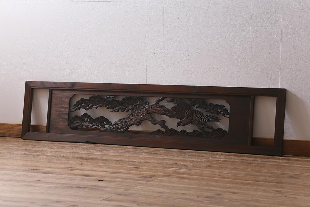 アンティーク建具 和製アンティーク 昭和中期 松に鷹 迫力ある彫りが見事な彫刻欄間(明かり取り、明り取り、建具)(R-041199)