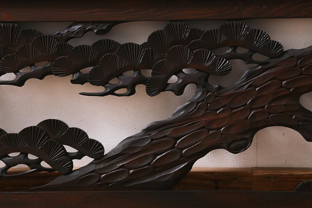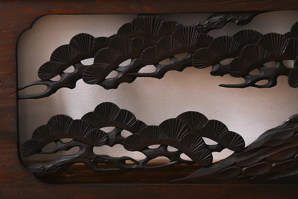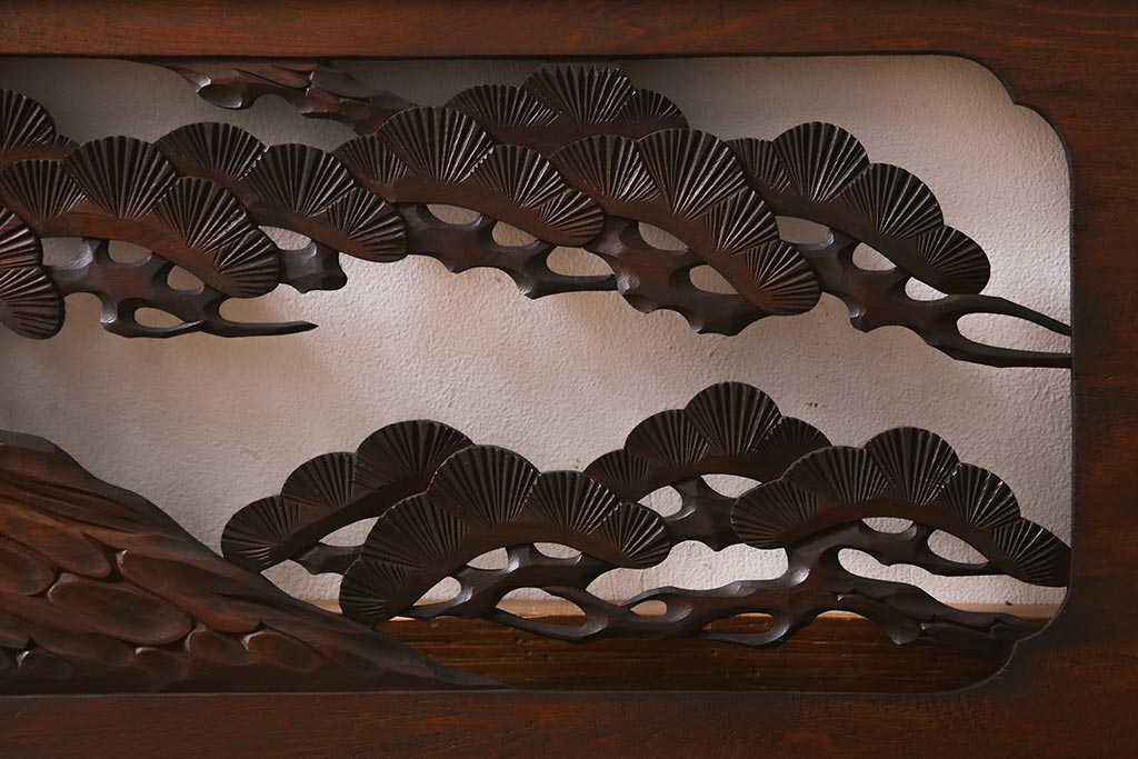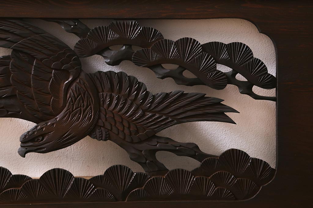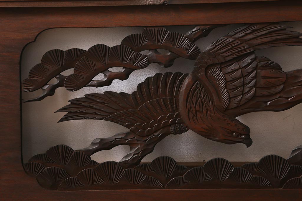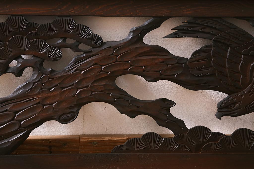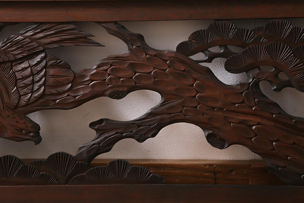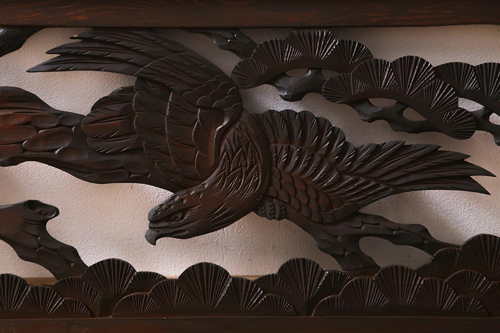 ドア・建具> 明り取り・欄間 > アンティーク建具 和製アンティーク 昭和中期 松に鷹 迫力ある彫りが見事な彫刻欄間(明かり取り、明り取り、建具)(R-041199)
