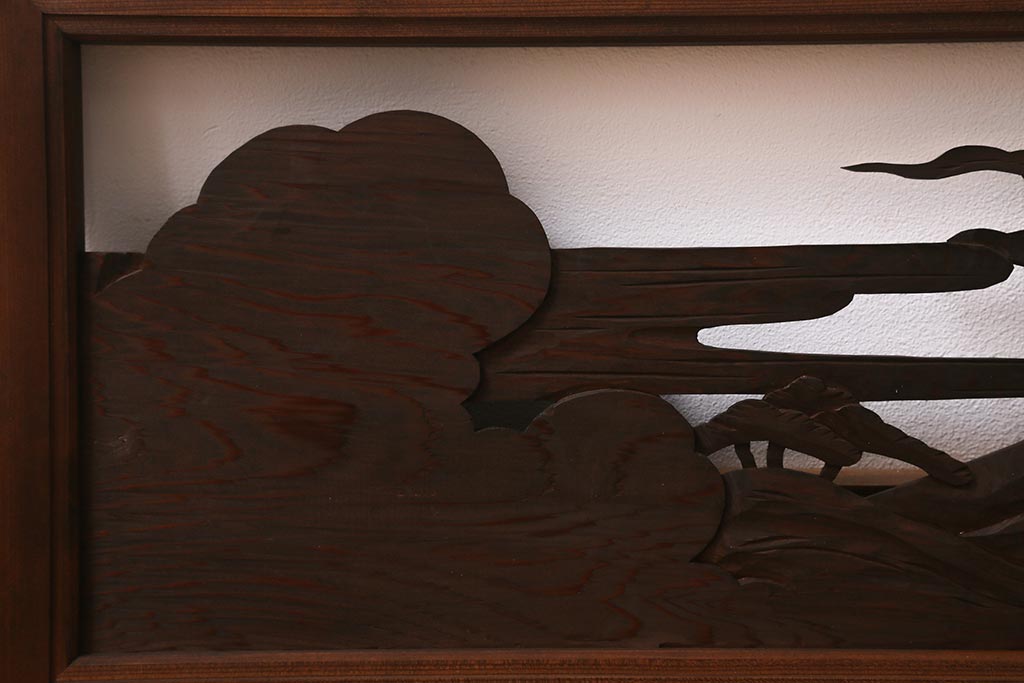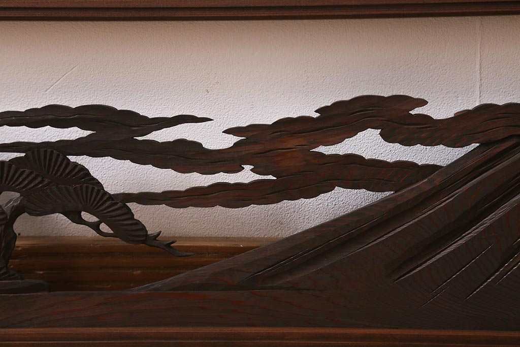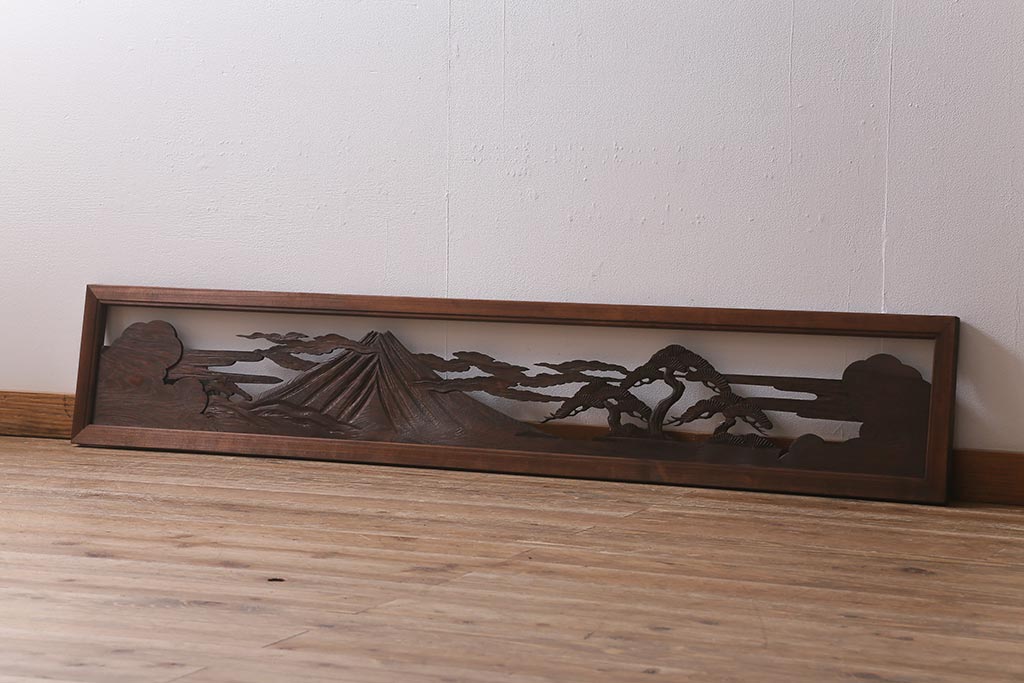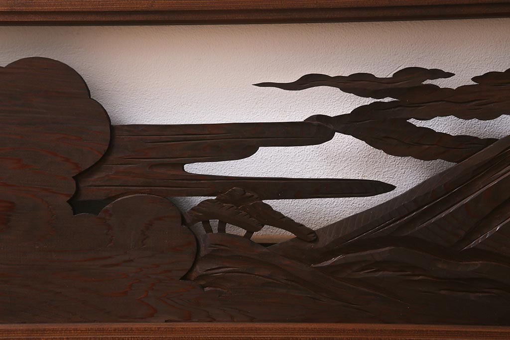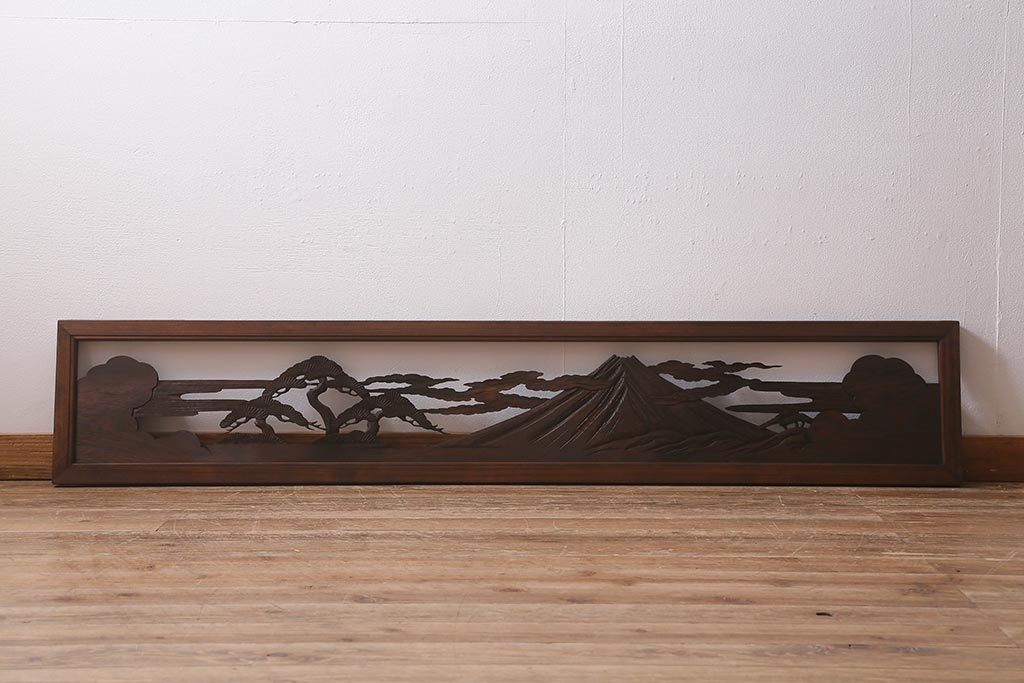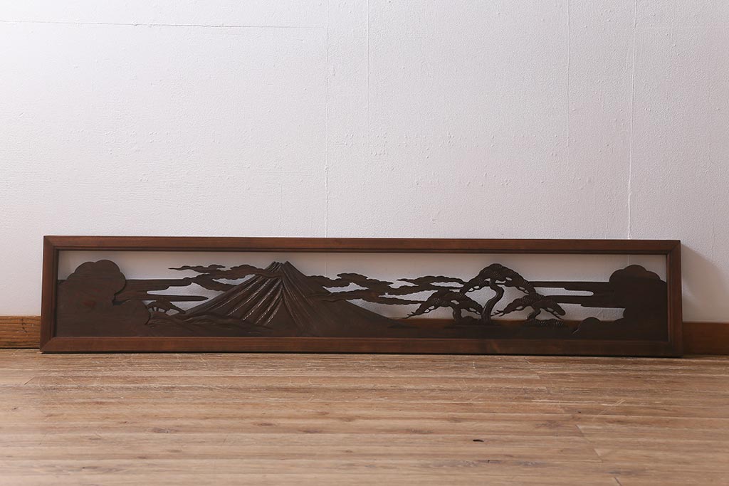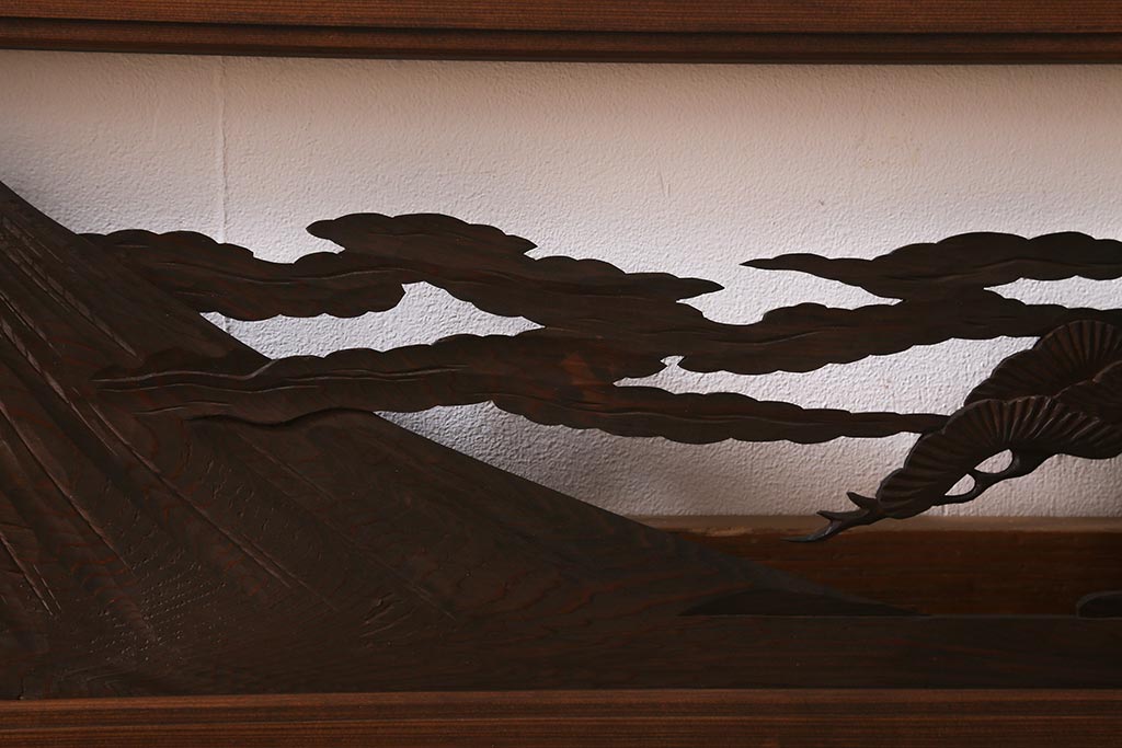 アンティーク建具 和製アンティーク 富士・松 優美なシルエットの彫刻欄間(明かり取り、明り取り、建具)(R-041201)