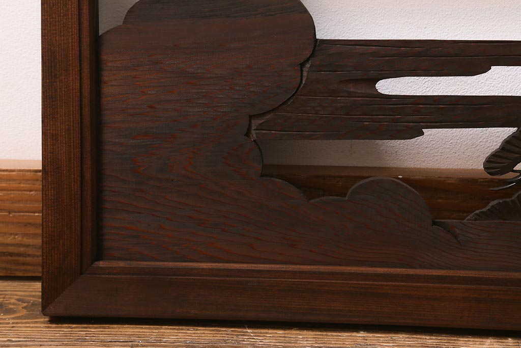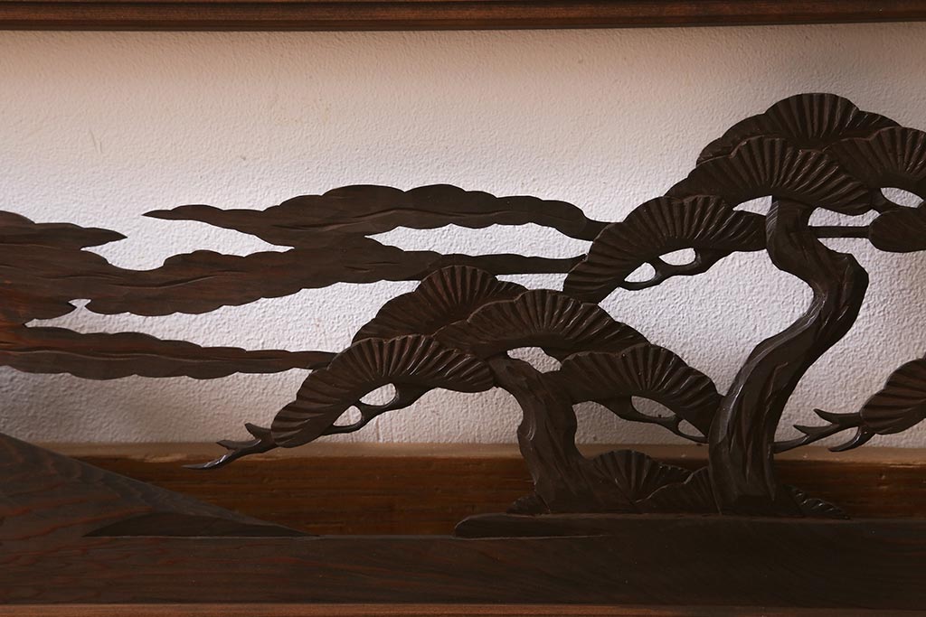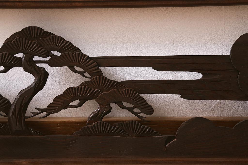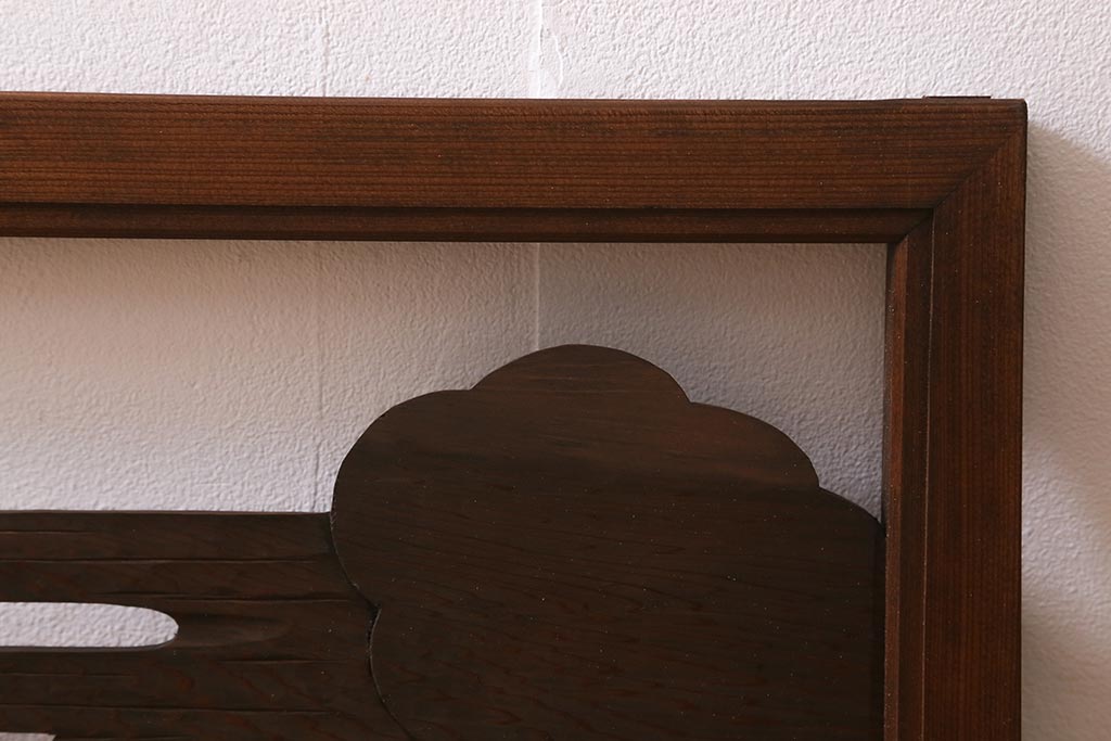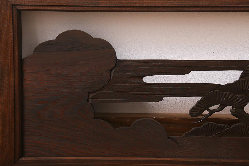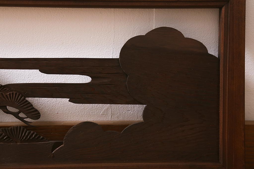 アンティーク建具 和製アンティーク 富士・松 優美なシルエットの彫刻欄間(明かり取り、明り取り、建具)(R-041201)