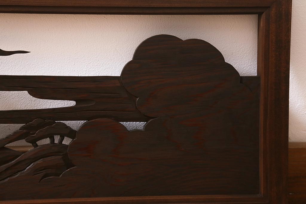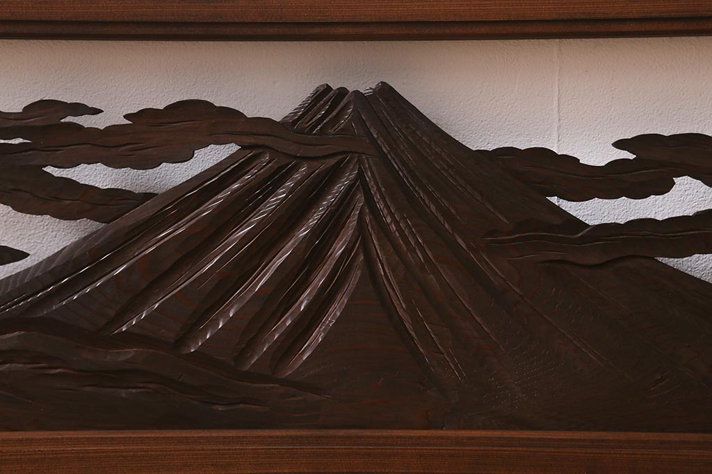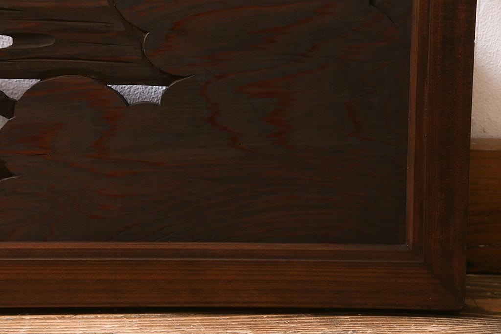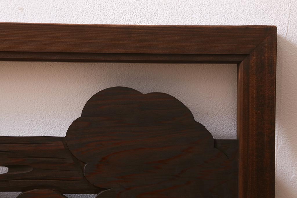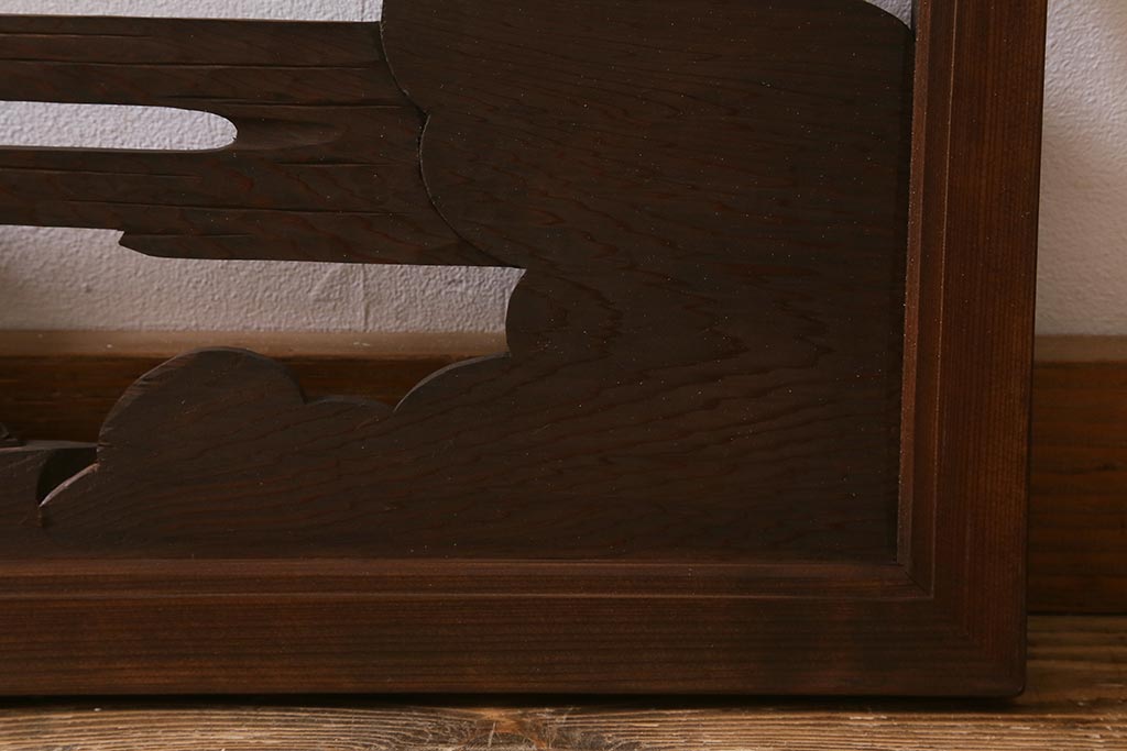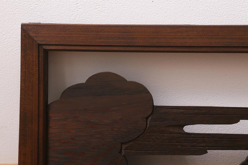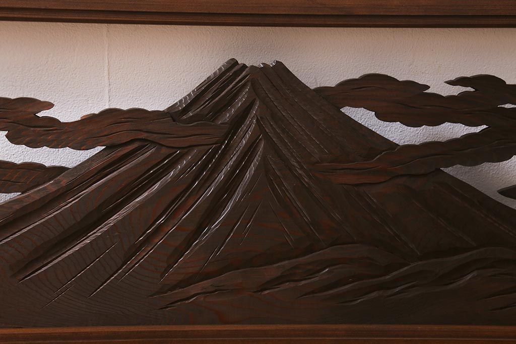 アンティーク建具 和製アンティーク 富士・松 優美なシルエットの彫刻欄間(明かり取り、明り取り、建具)(R-041201)