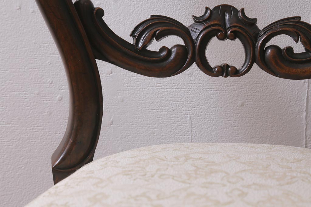 椅子・ベンチ> ダイニングチェア > アンティーク家具 フランスアンティーク マホガニー材 優雅な佇まいが魅力のバルーンバックチェア(椅子、ダイニングチェア)(R-041174)
