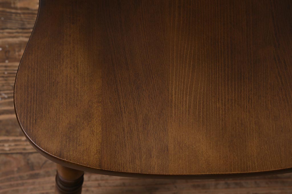 背もたれや脚に施された挽物加工が特徴的な一品です。