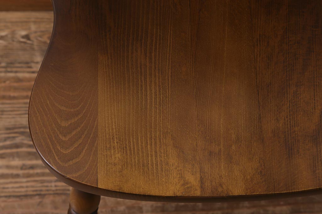 背もたれや脚に施された挽物加工が特徴的な一品です。