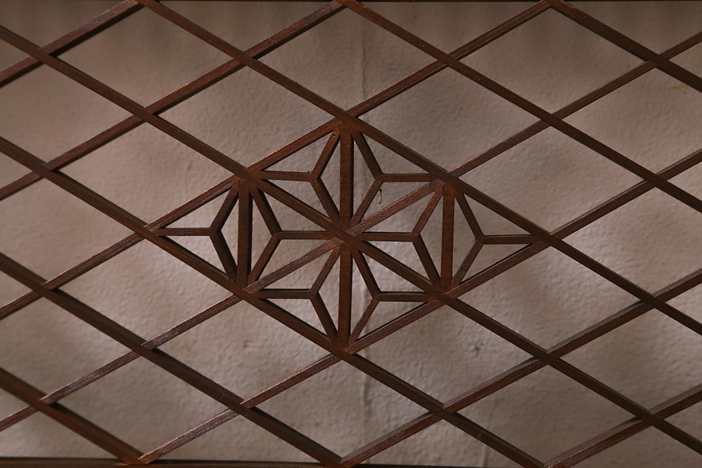 レトロ建具 三重菱 麻の葉 組子がおしゃれな和モダンな欄間(明かり取り、明り取り)(R-041209)