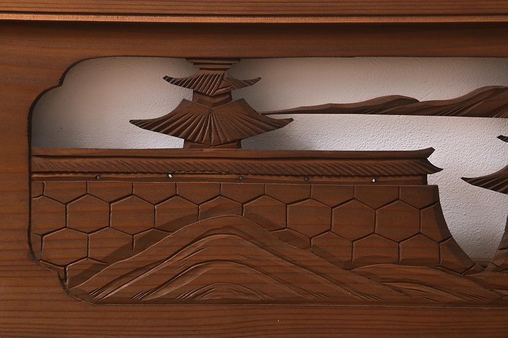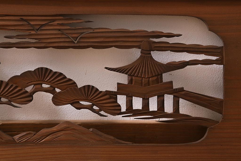 ヴィンテージ建具 昭和中期 近江八景 和の雰囲気高まる欄間(明かり取り、明り取り、組子、ビンテージ)(R-041211)