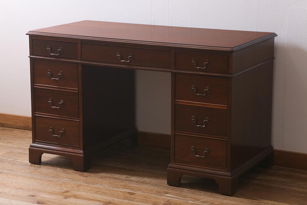 中古 DREXEL HERITAGE (ドレクセルヘリテイジ) マホガニー材 洗練された大人の雰囲気醸し出す両袖デスク(机、在宅ワーク、在宅用ワークデスク)(R-041164)