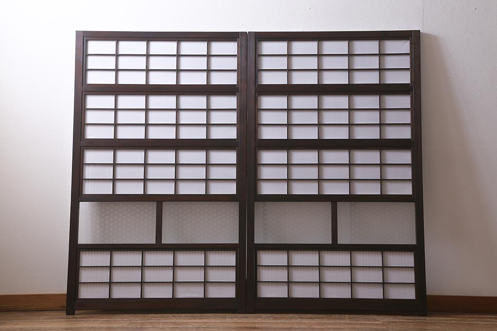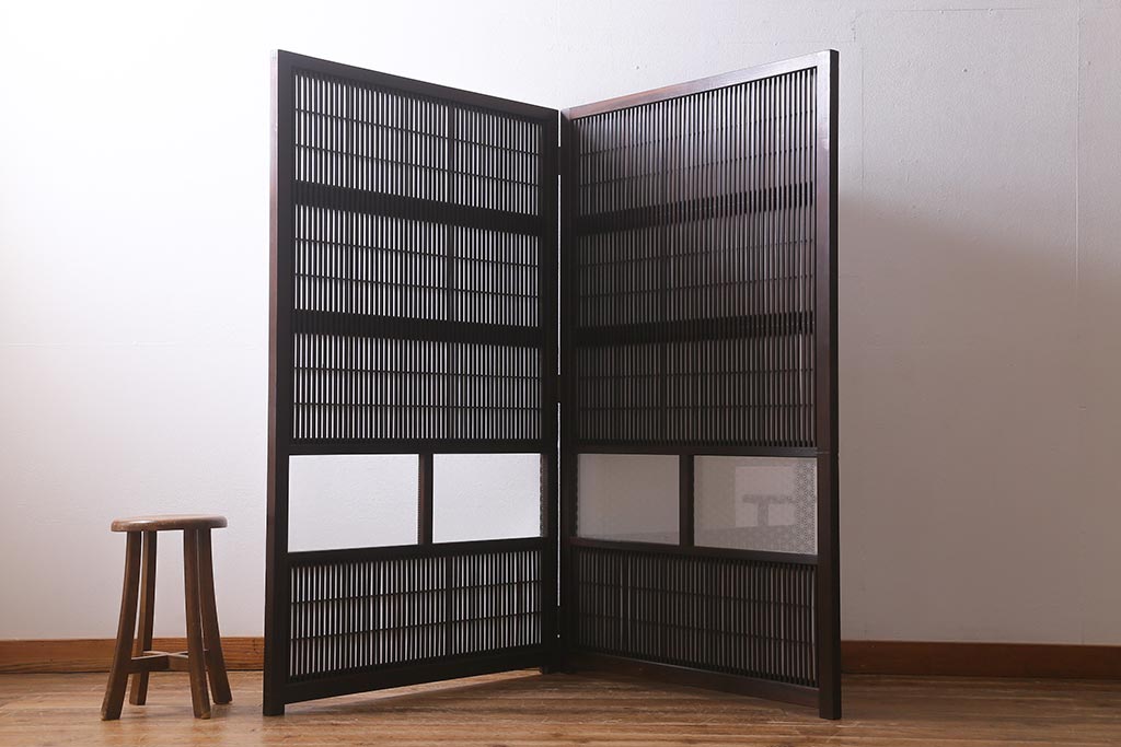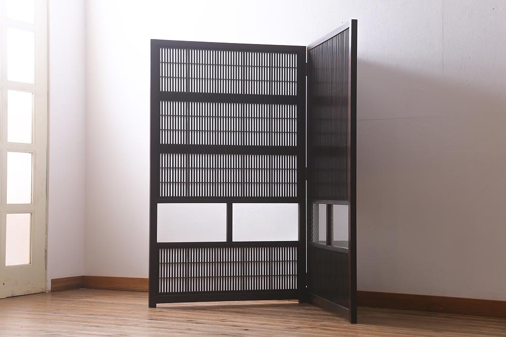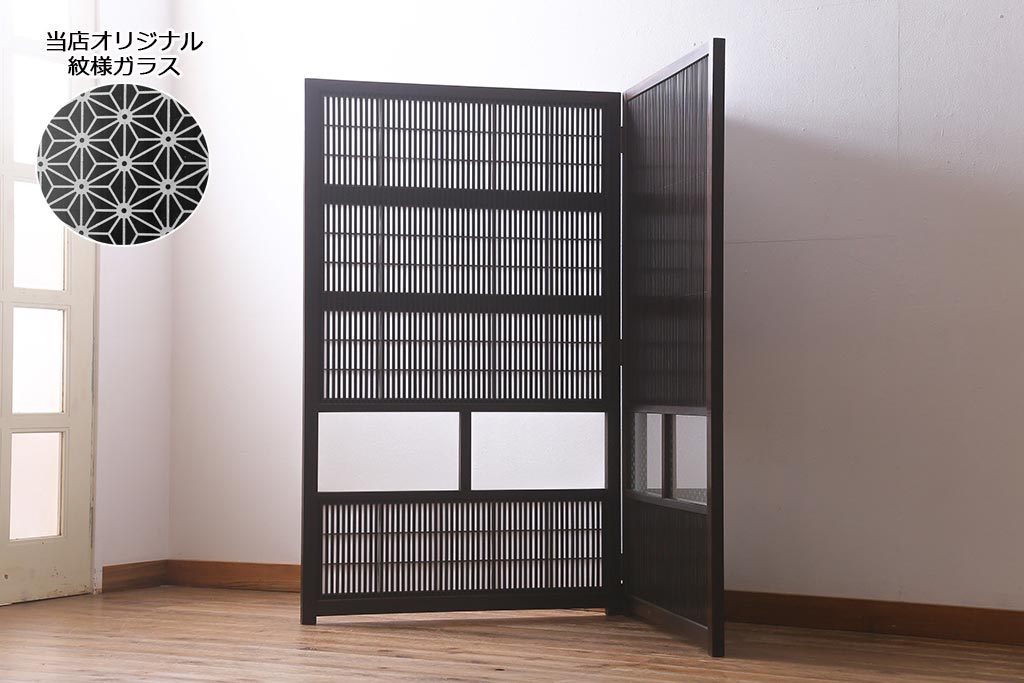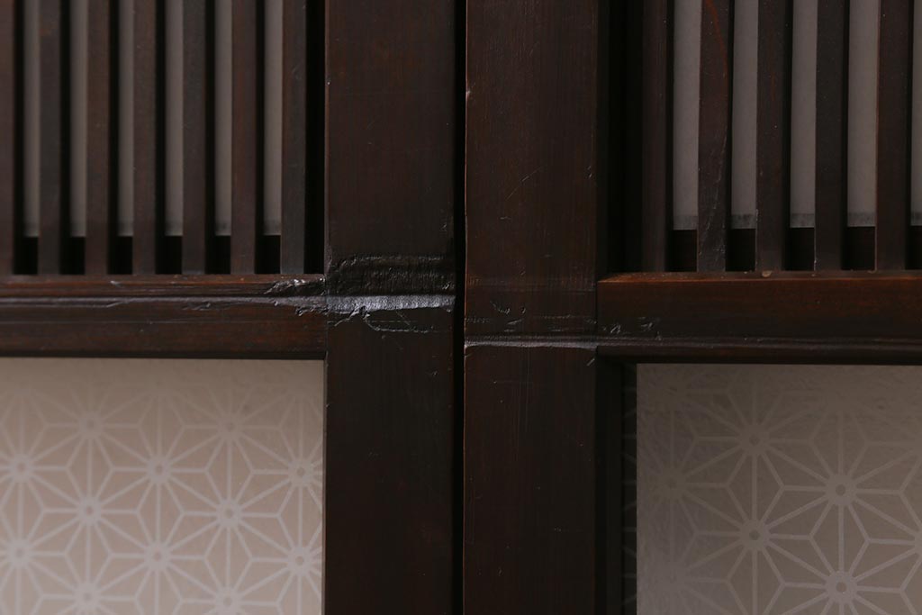 アンティーク建具 古建具リメイク 裏障子付き 当店オリジナルガラス 格子戸をリメイクしたパーテーション(衝立、つい立て、仕切り)(R-041223)