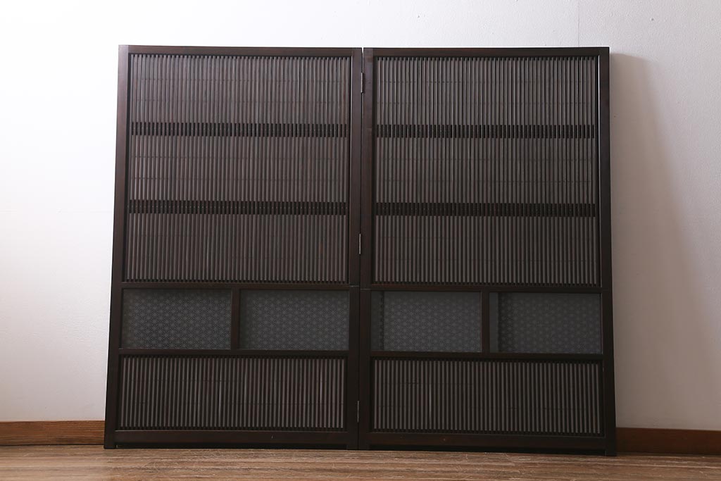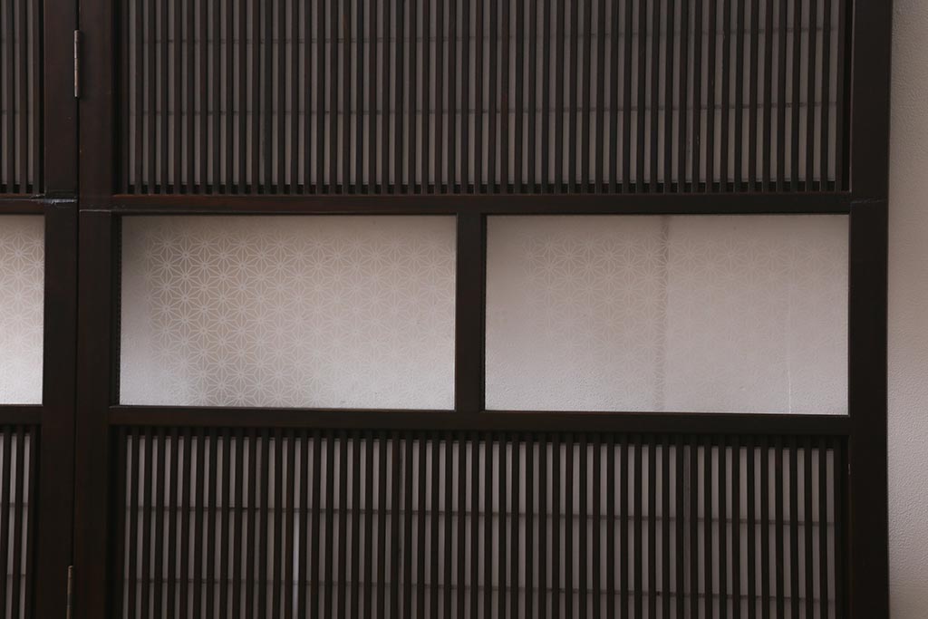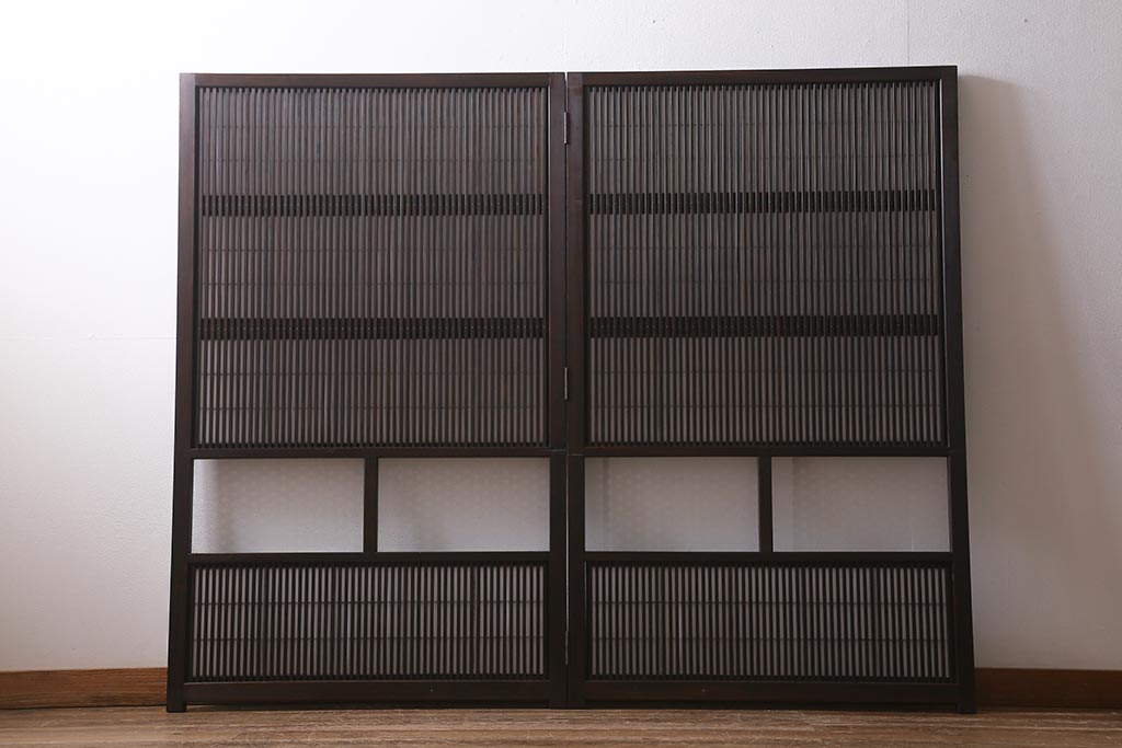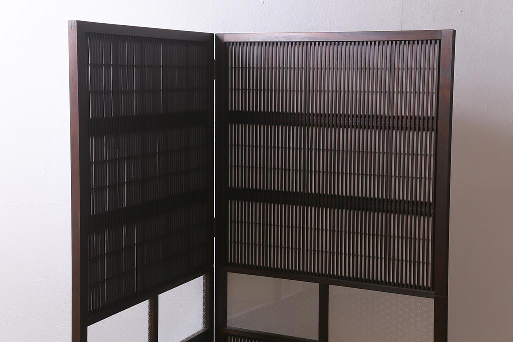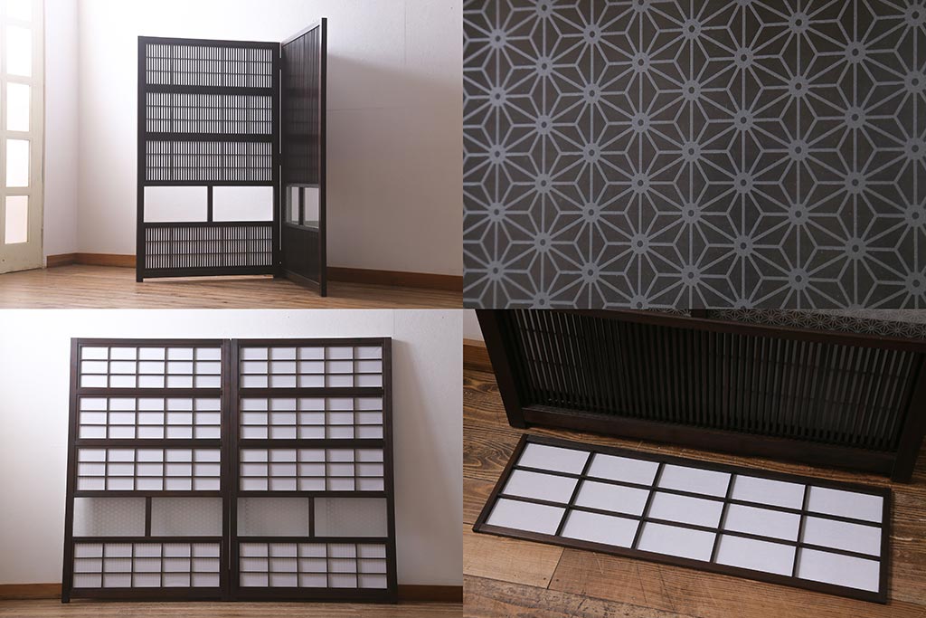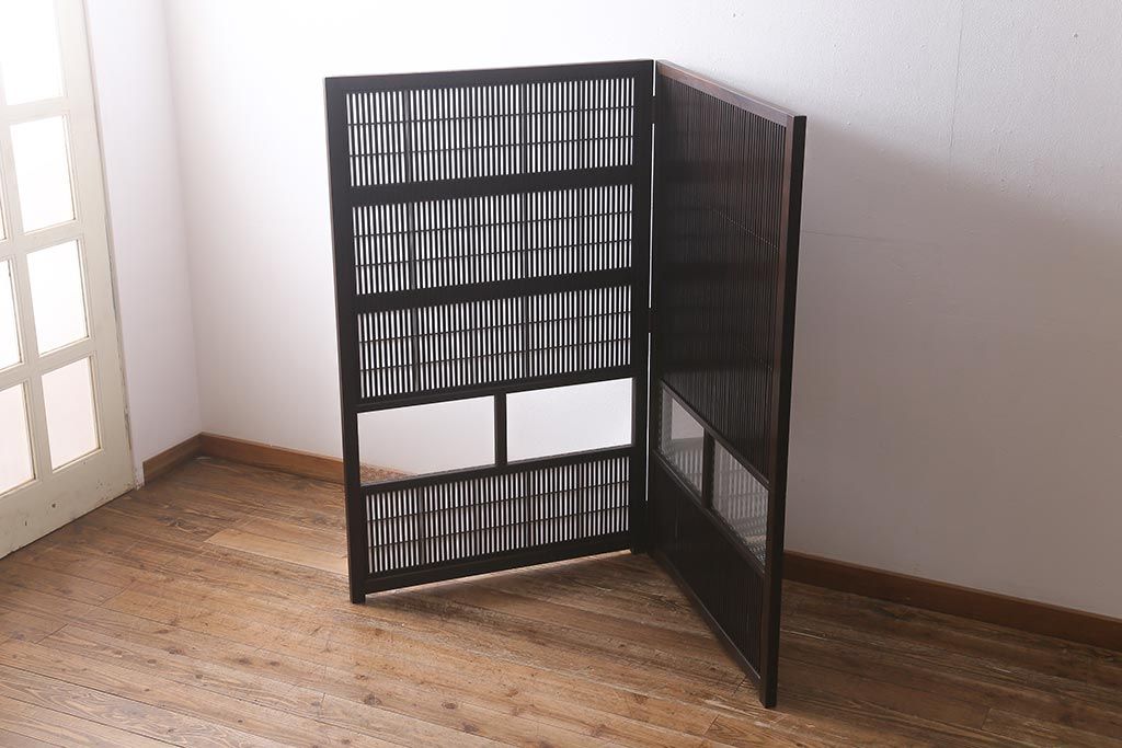 アンティーク建具 古建具リメイク 裏障子付き 当店オリジナルガラス 格子戸をリメイクしたパーテーション(衝立、つい立て、仕切り)(R-041223)
