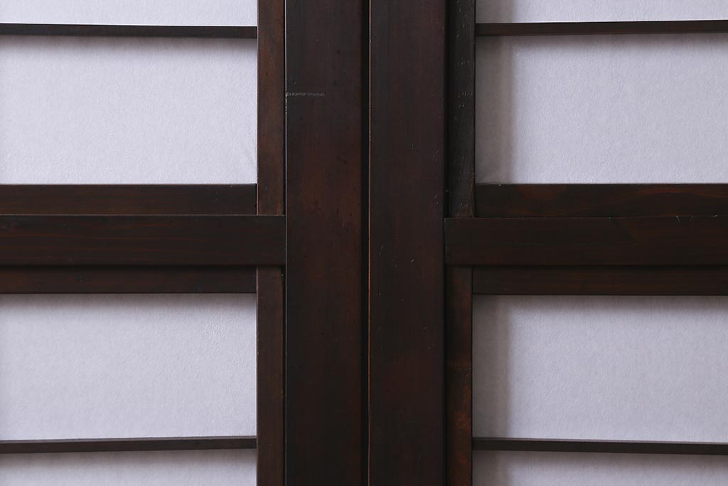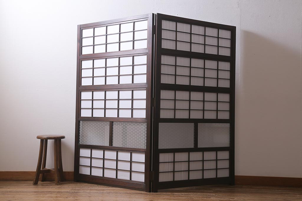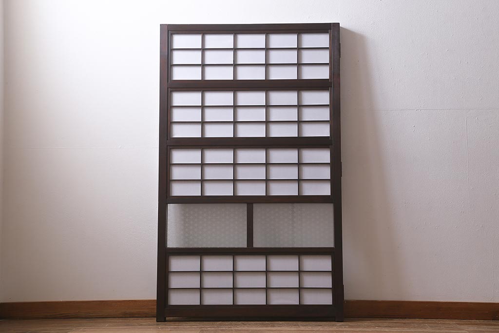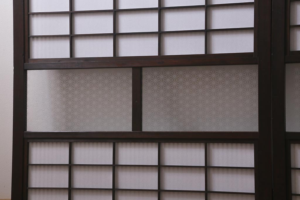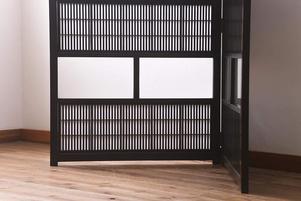 衝立・パーテーション > アンティーク建具 古建具リメイク 裏障子付き 当店オリジナルガラス 格子戸をリメイクしたパーテーション(衝立、つい立て、仕切り)(R-041223)