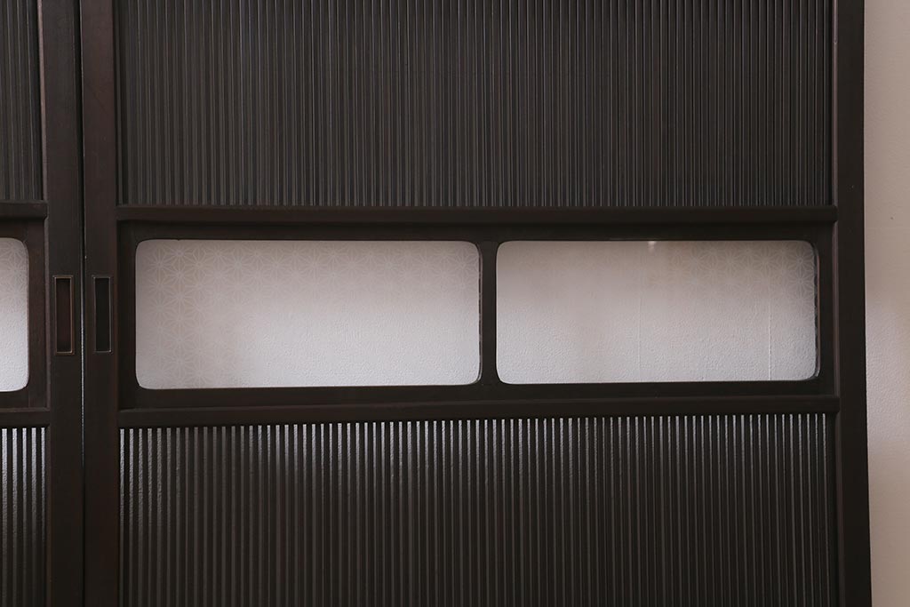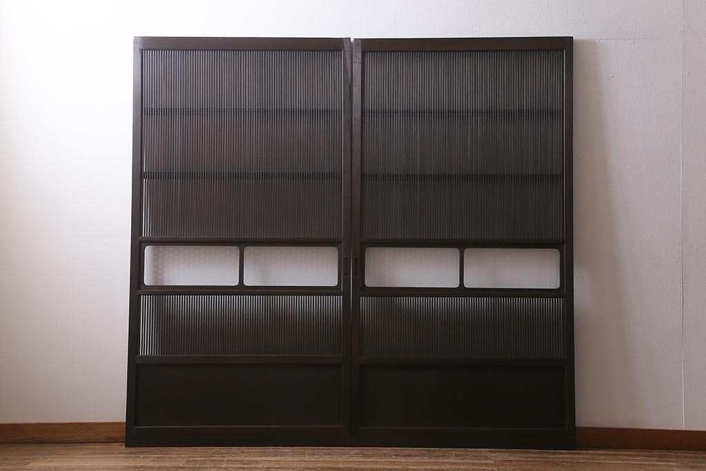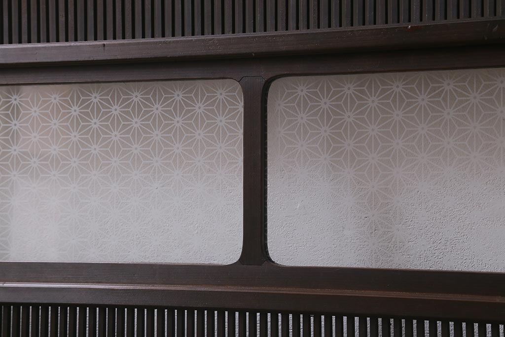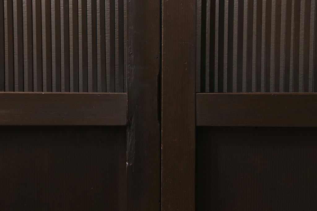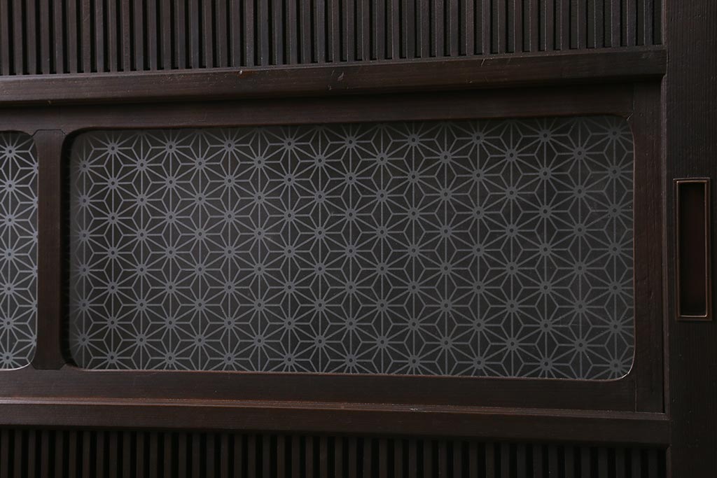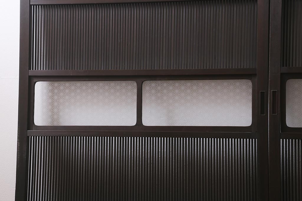 アンティーク建具 和製アンティーク 当店オリジナルガラス 昭和初期 整然と並ぶ格子が繊細な万本格子戸2枚セット(引き戸、建具)(R-041229)