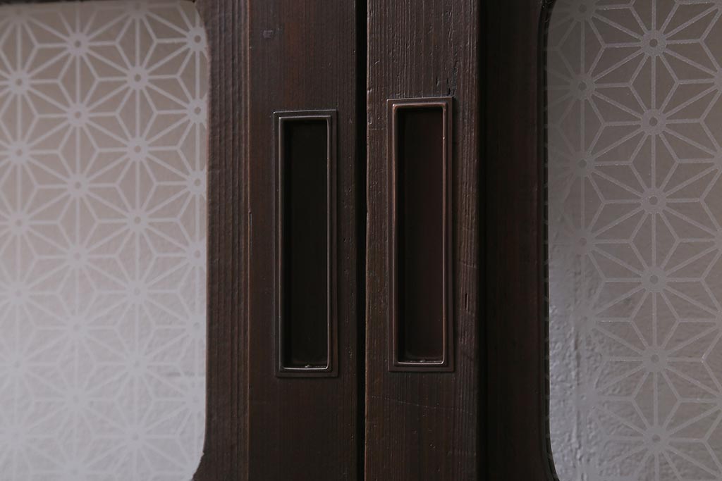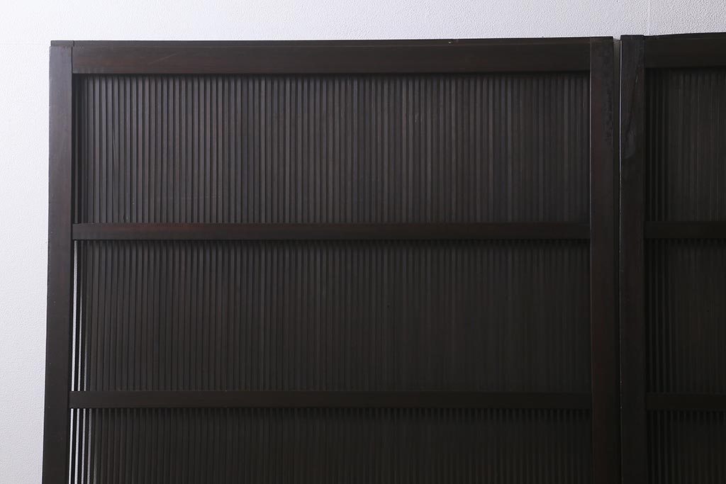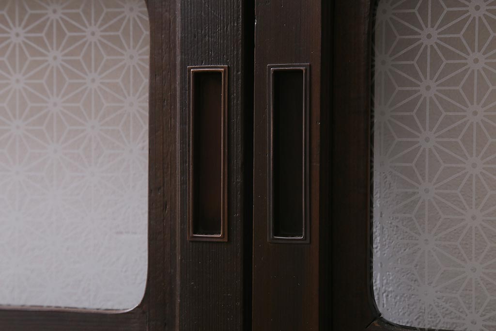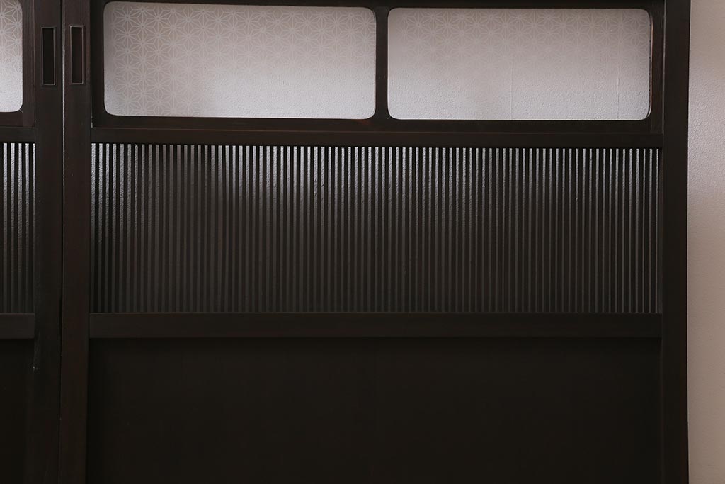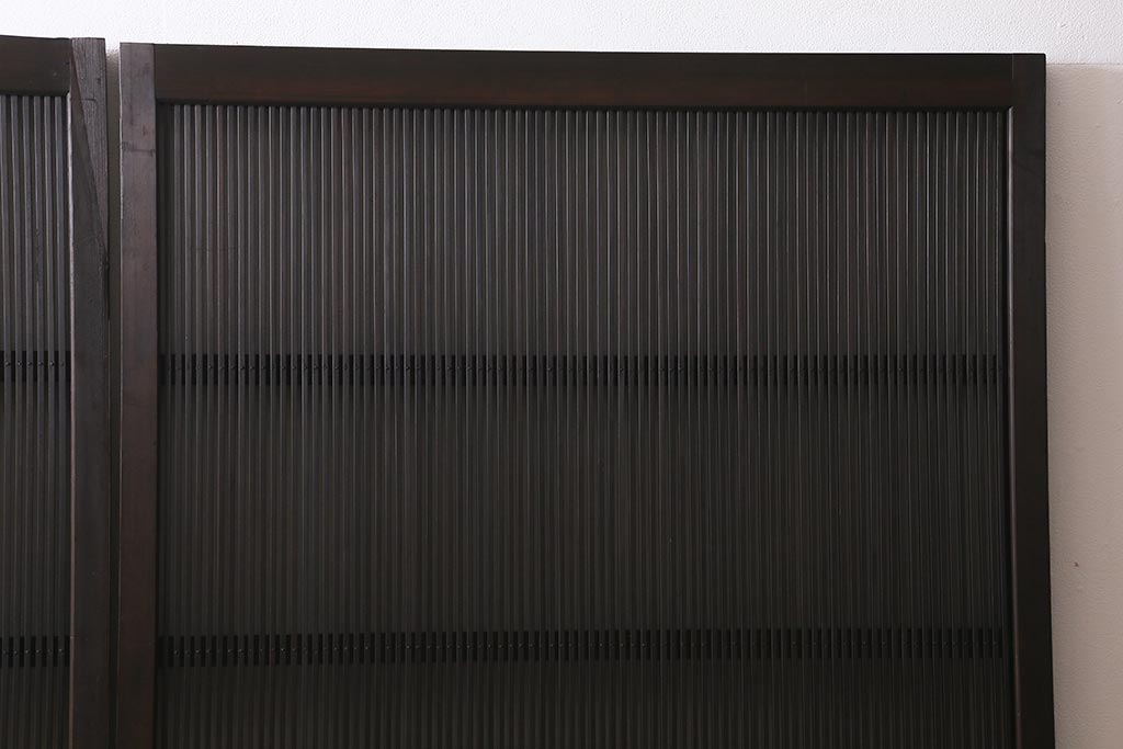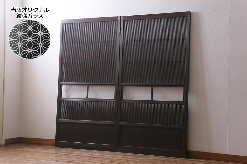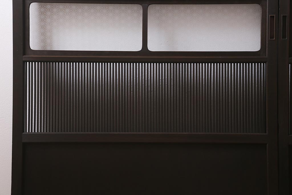 アンティーク建具 和製アンティーク 当店オリジナルガラス 昭和初期 整然と並ぶ格子が繊細な万本格子戸2枚セット(引き戸、建具)(R-041229)