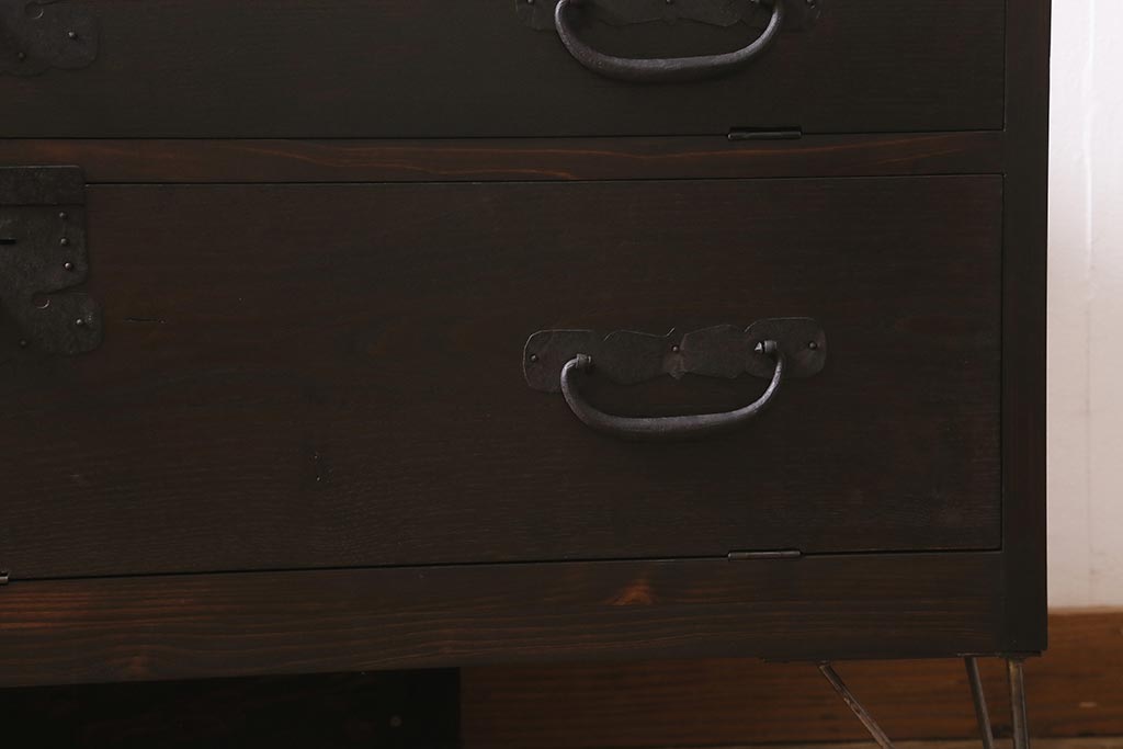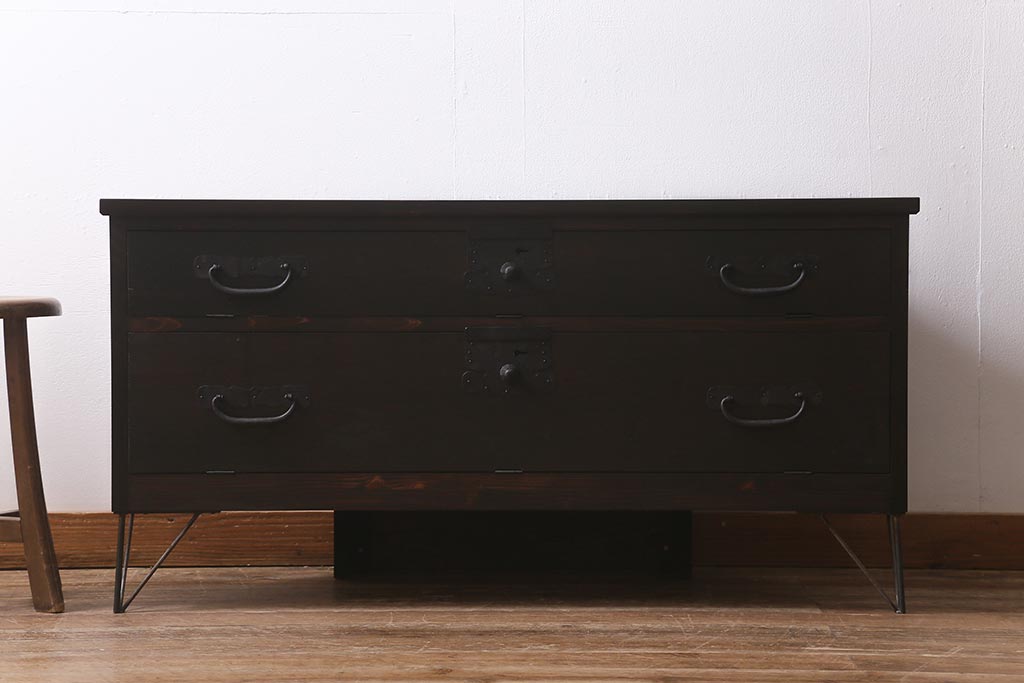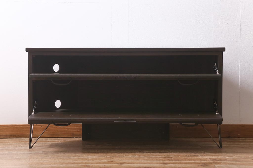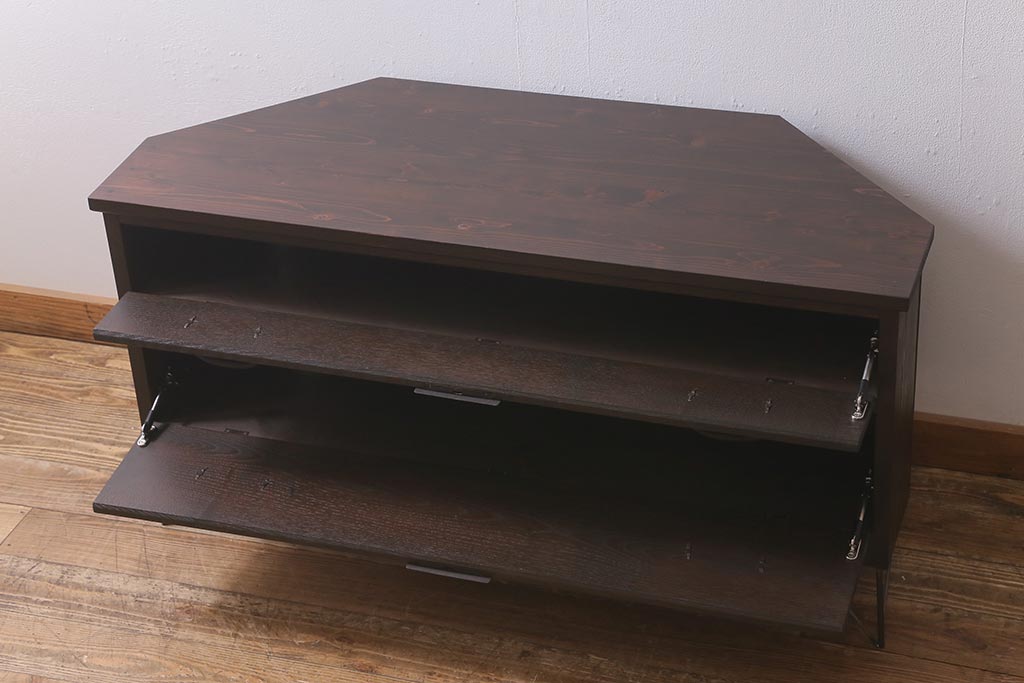 ラフジュ工房オリジナル 古金具リメイク 前板栗材 ヒノキ材 フラップダウン扉が使いやすい脚付きコーナーテレビ台(キャビネット、テレビボード、収納棚)(R-041171)