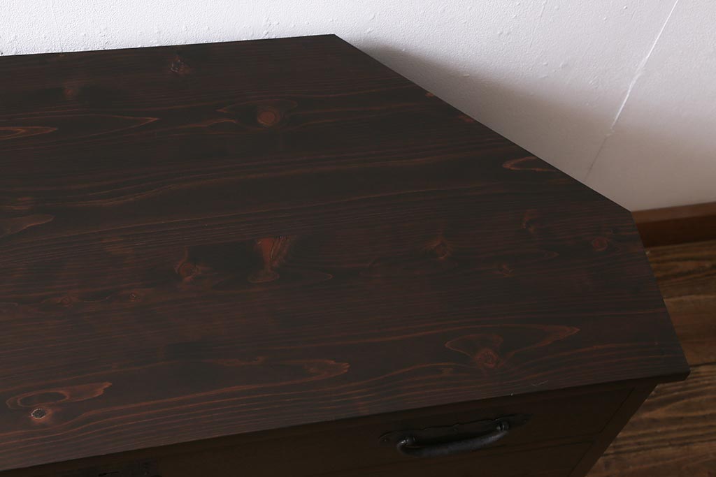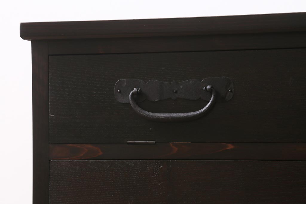 ラフジュ工房> キャビネット・戸棚> テレビ台・ローボード > ラフジュ工房オリジナル 古金具リメイク 前板栗材 ヒノキ材 フラップダウン扉が使いやすい脚付きコーナーテレビ台(キャビネット、テレビボード、収納棚)(R-041171)