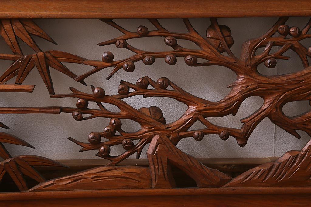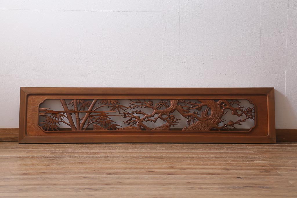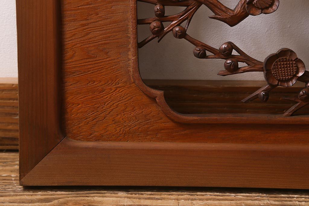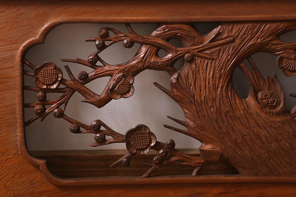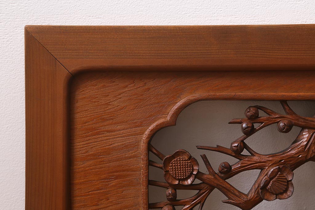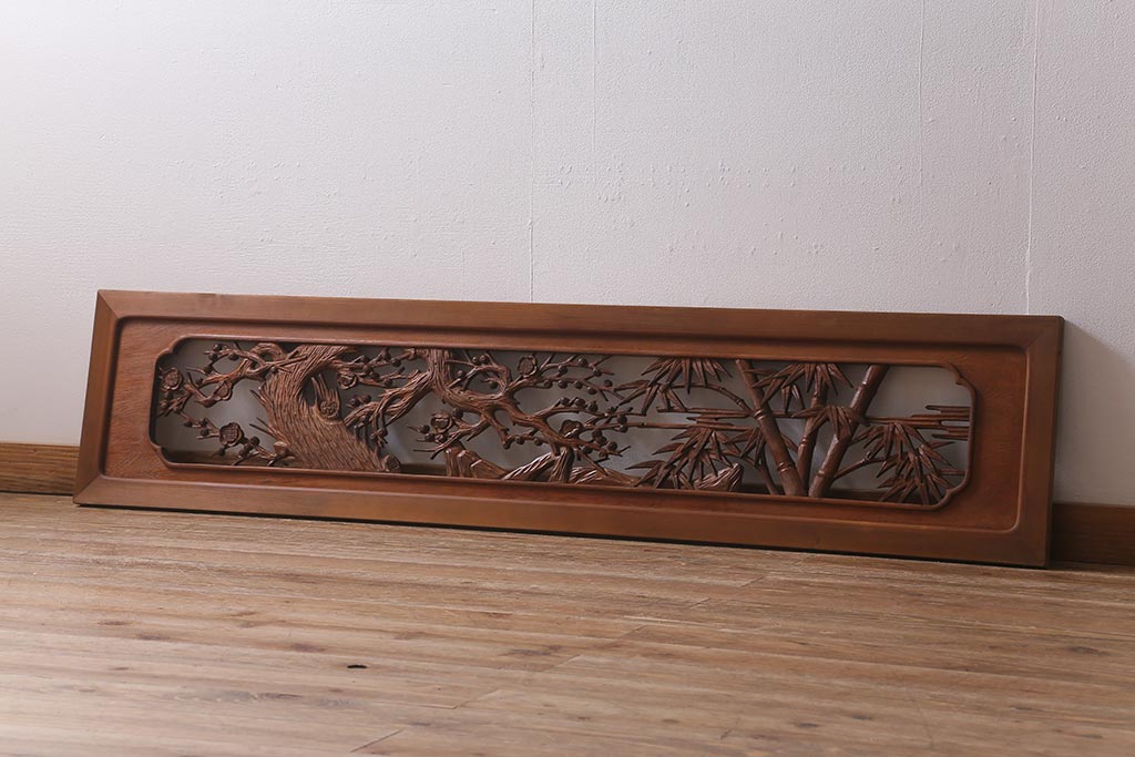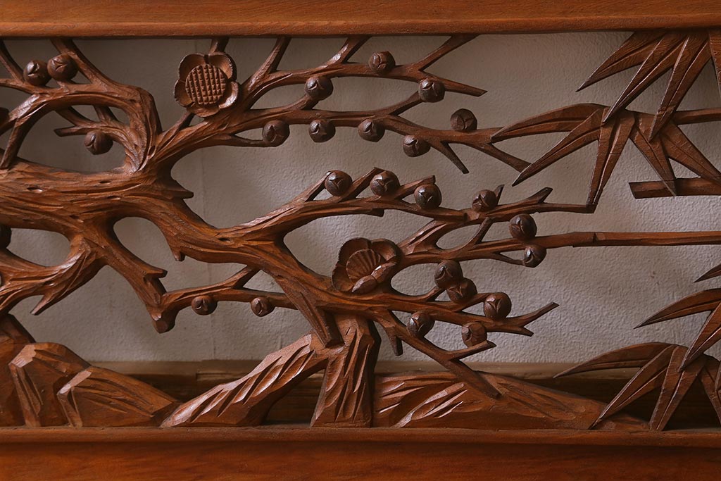 ビンテージ建具 竹梅図 力強く美しい深彫りの彫刻欄間(明かり取り、明り取り)(R-041203)