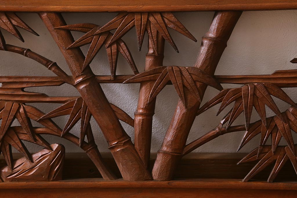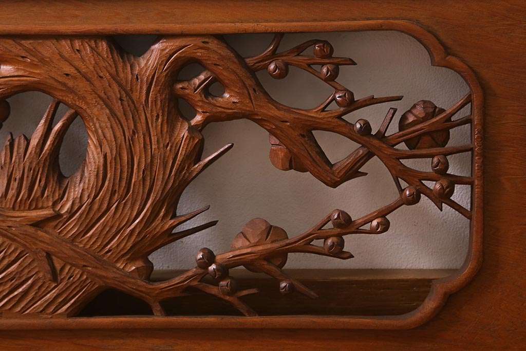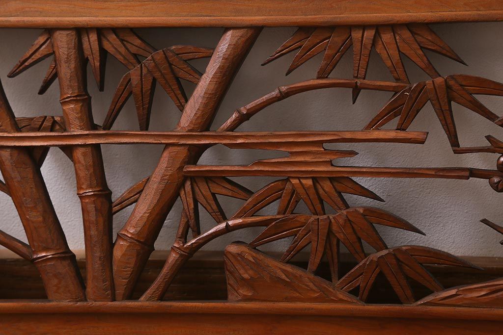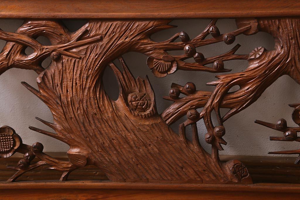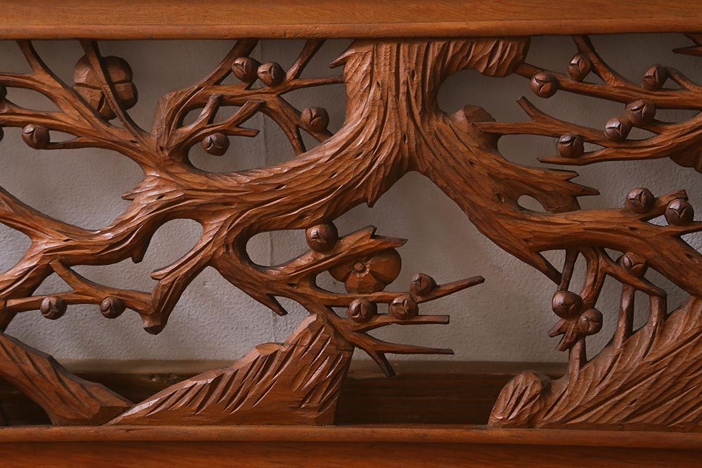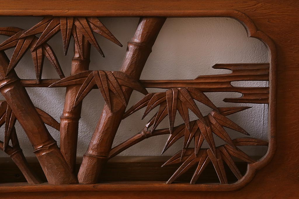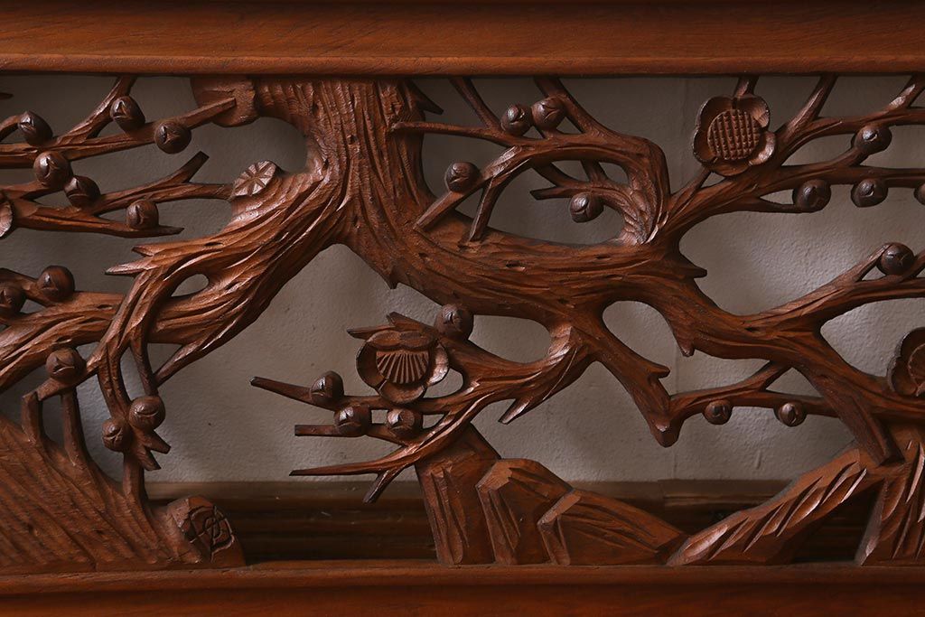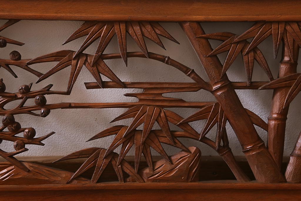 ビンテージ建具 竹梅図 力強く美しい深彫りの彫刻欄間(明かり取り、明り取り)(R-041203)