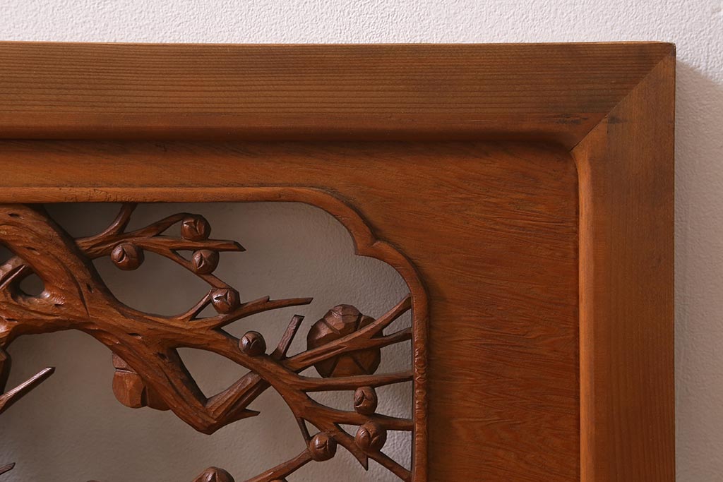 ビンテージ建具 竹梅図 力強く美しい深彫りの彫刻欄間(明かり取り、明り取り)(R-041203)です。