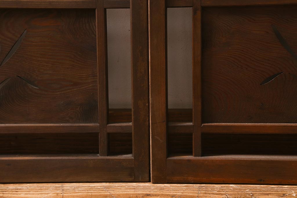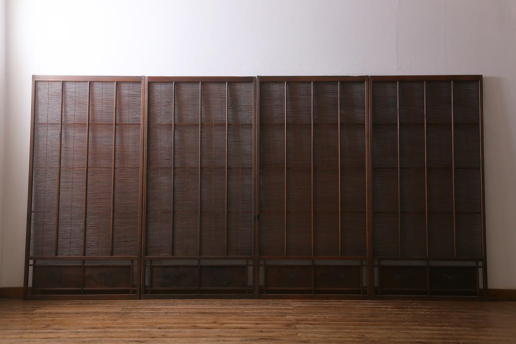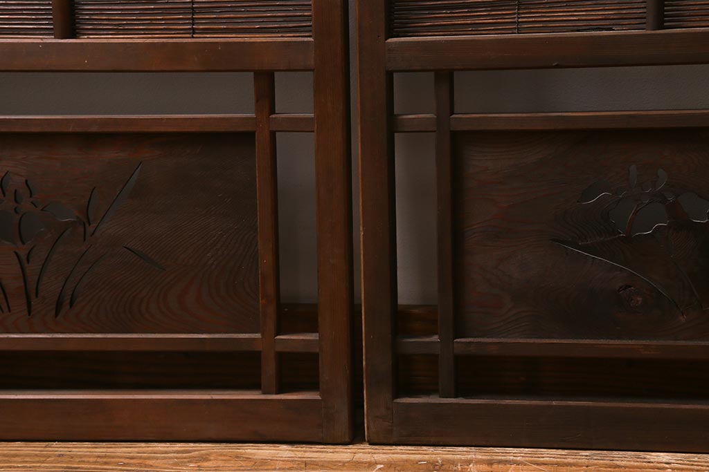 ビンテージ建具 菖蒲 日本風情を感じさせる透かし入りの御簾戸4枚セット(戸、簀戸、葭戸、夏障子、夏戸、葦戸)(R-041262)