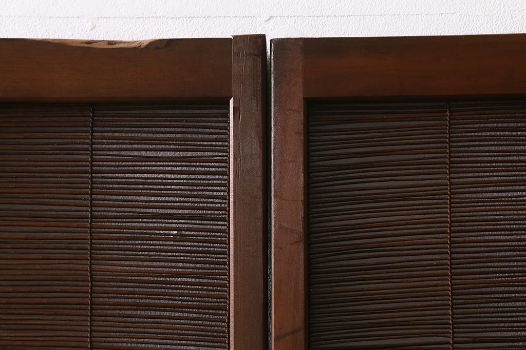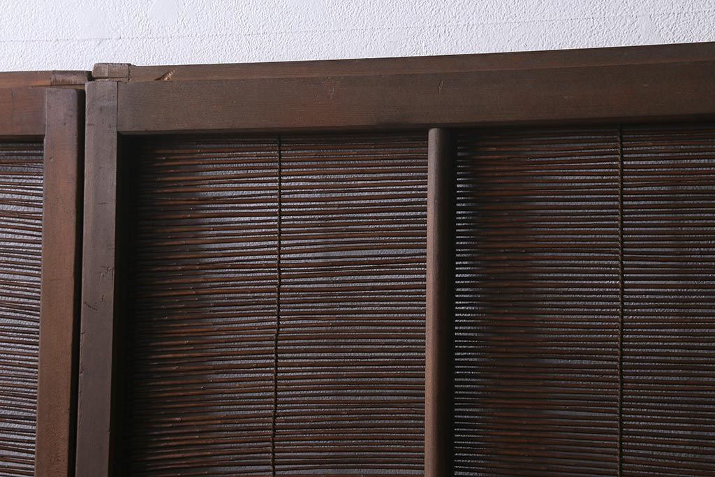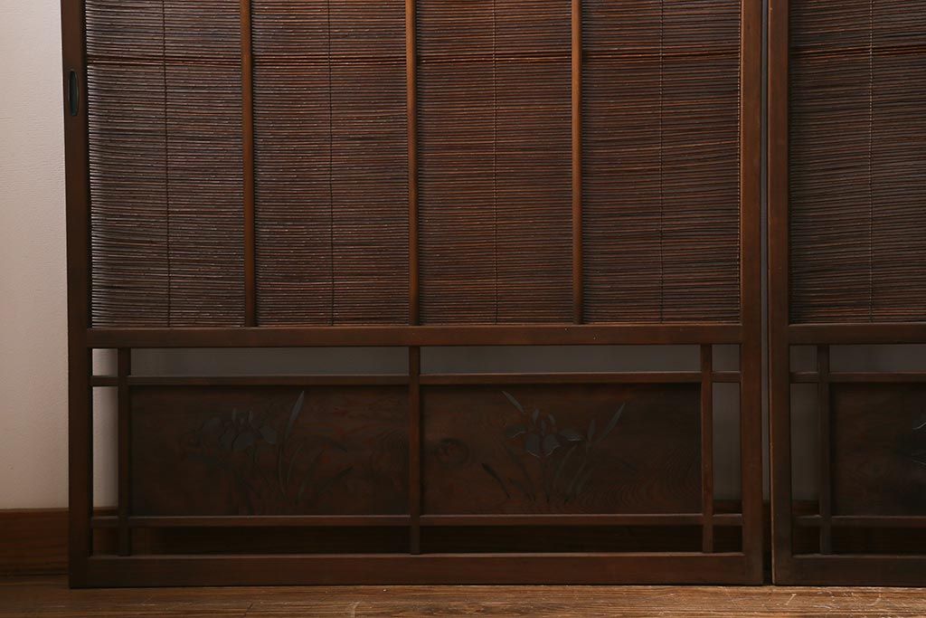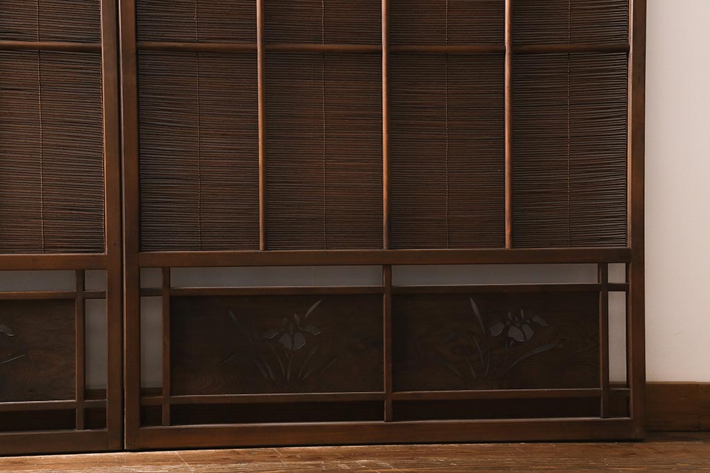 ドア・建具> 引き戸 > ビンテージ建具 菖蒲 日本風情を感じさせる透かし入りの御簾戸4枚セット(戸、簀戸、葭戸、夏障子、夏戸、葦戸)(R-041262)