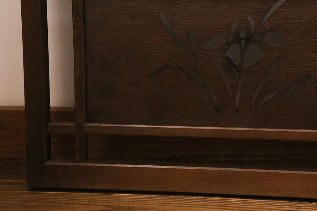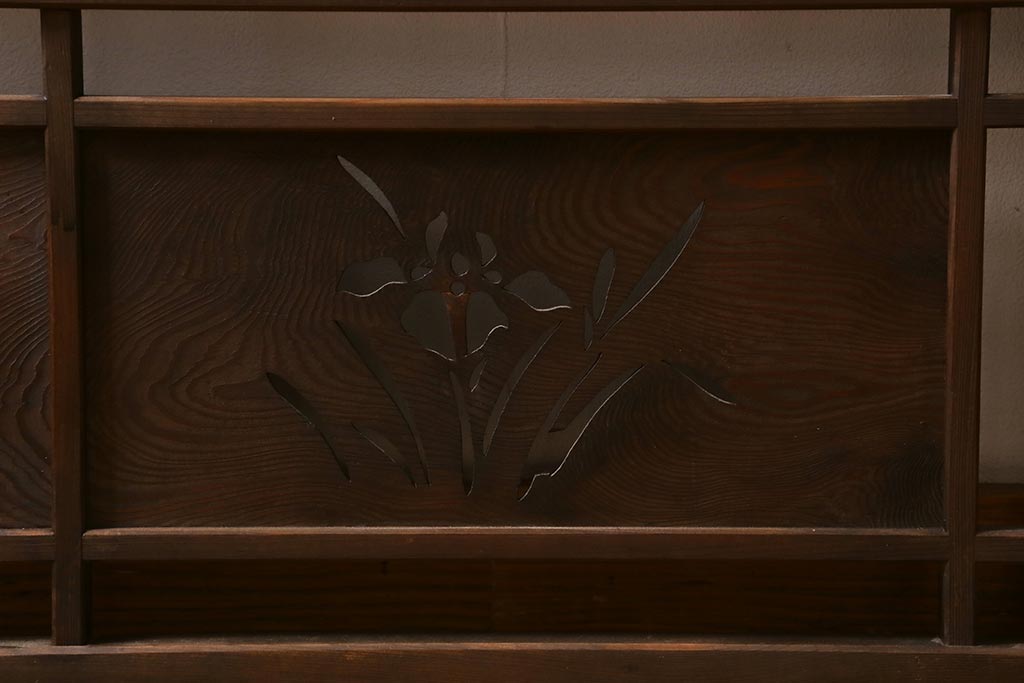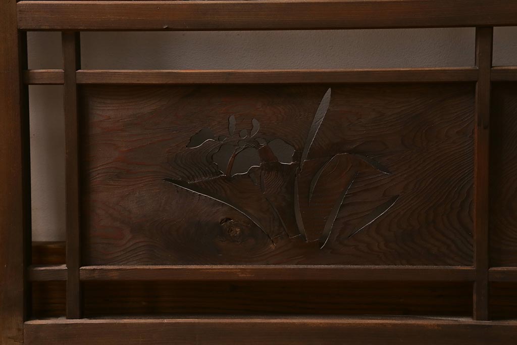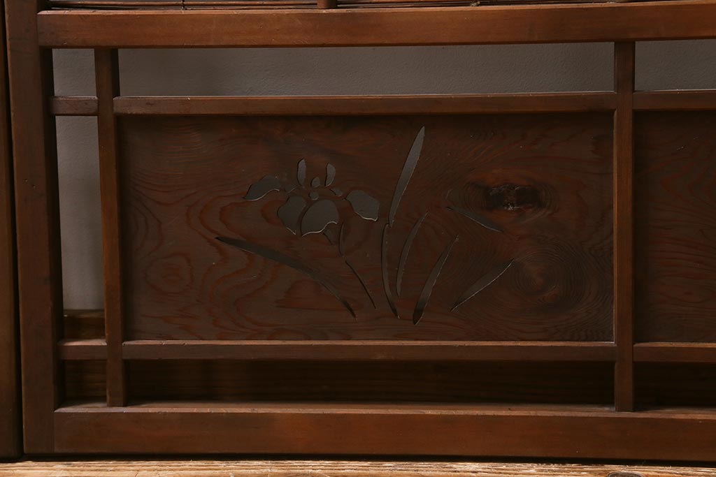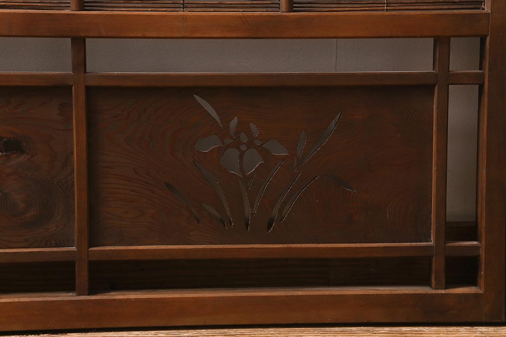 ビンテージ建具 菖蒲 日本風情を感じさせる透かし入りの御簾戸4枚セット(戸、簀戸、葭戸、夏障子、夏戸)(R-041262)です。