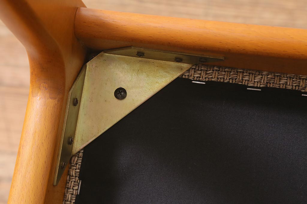 座面生地とクッション(座面内スポンジ)は当店にて張り替えておりますので、しっかりとしております。