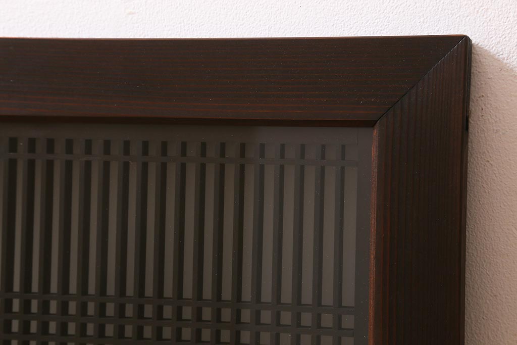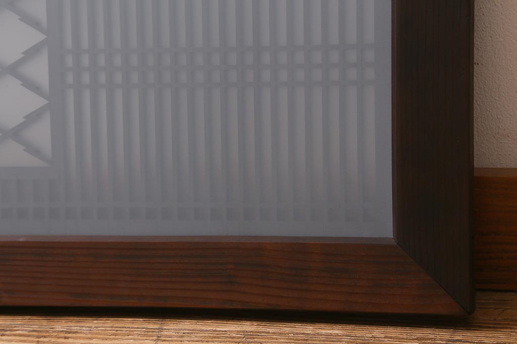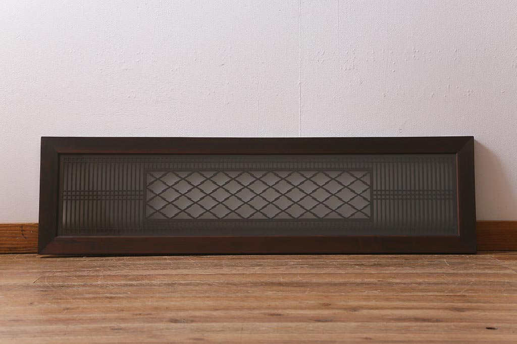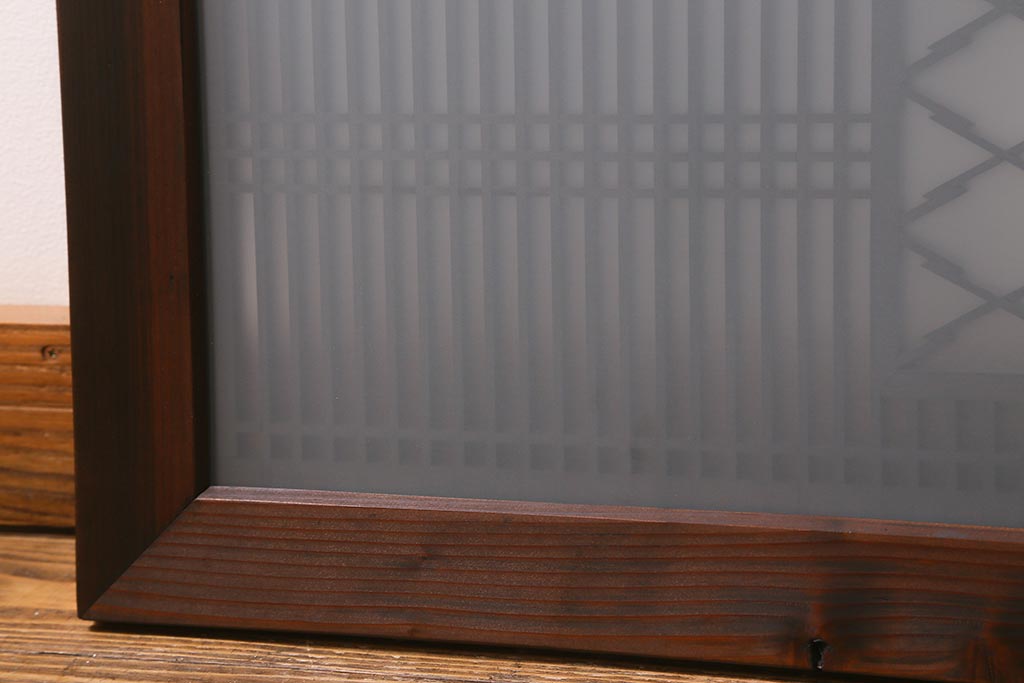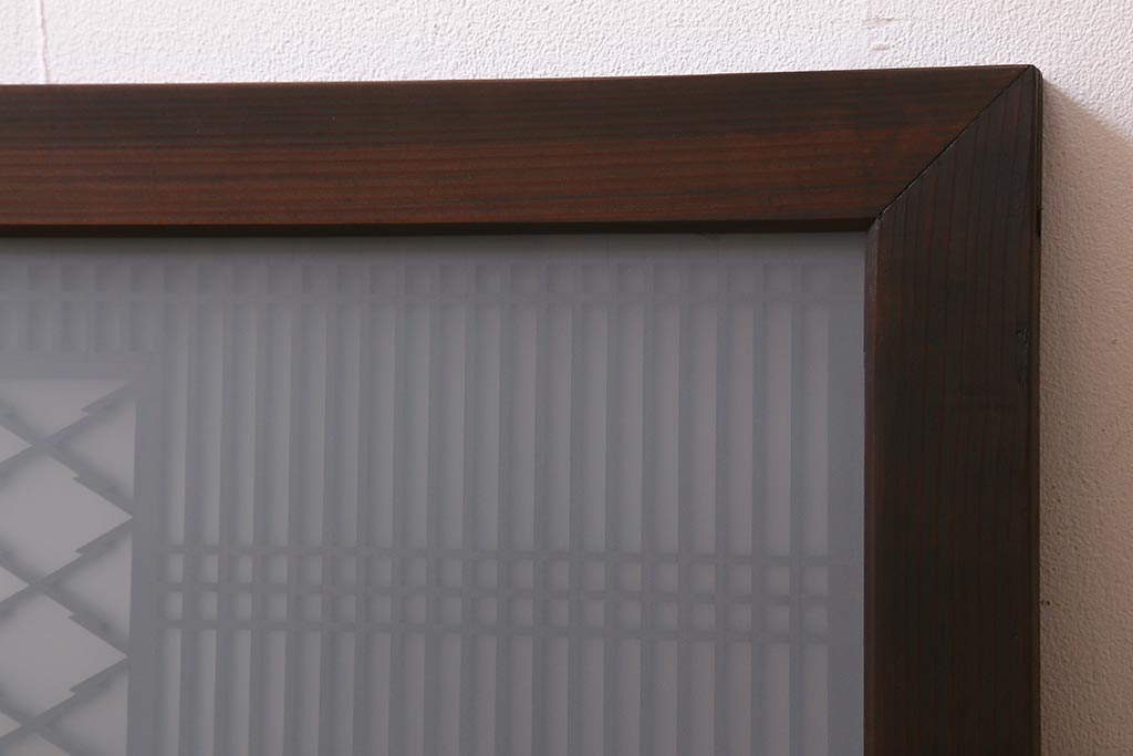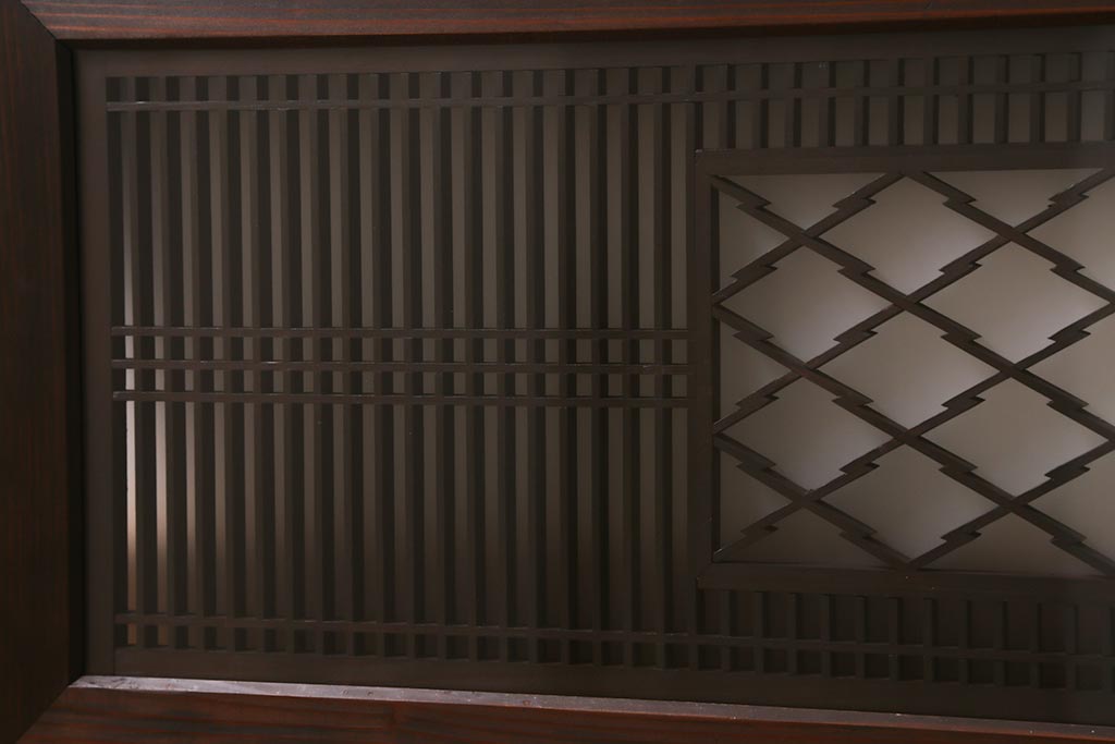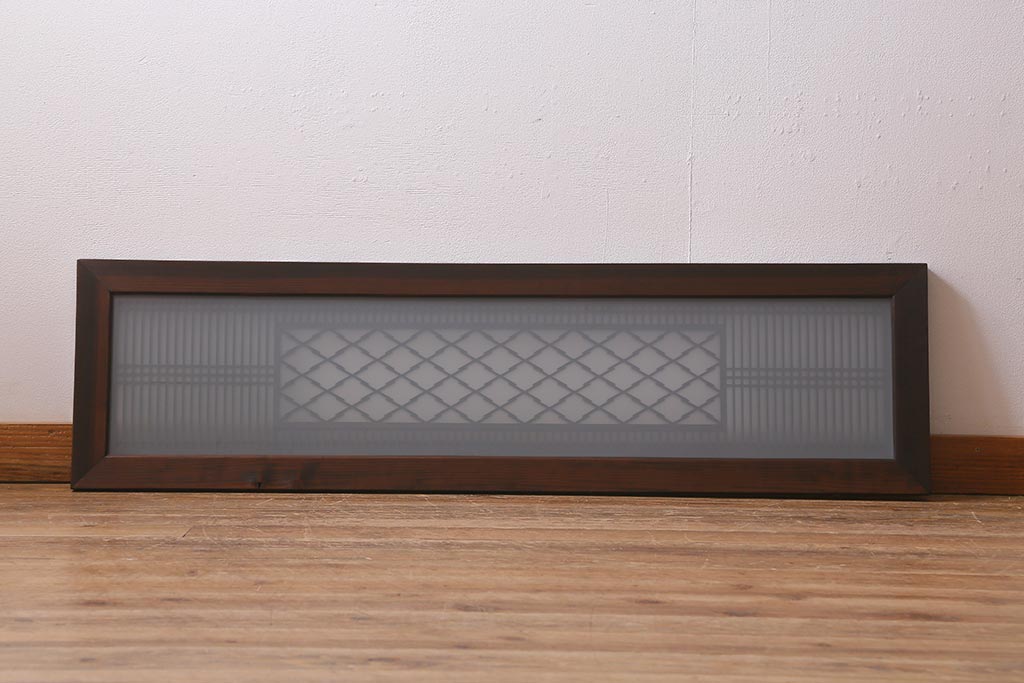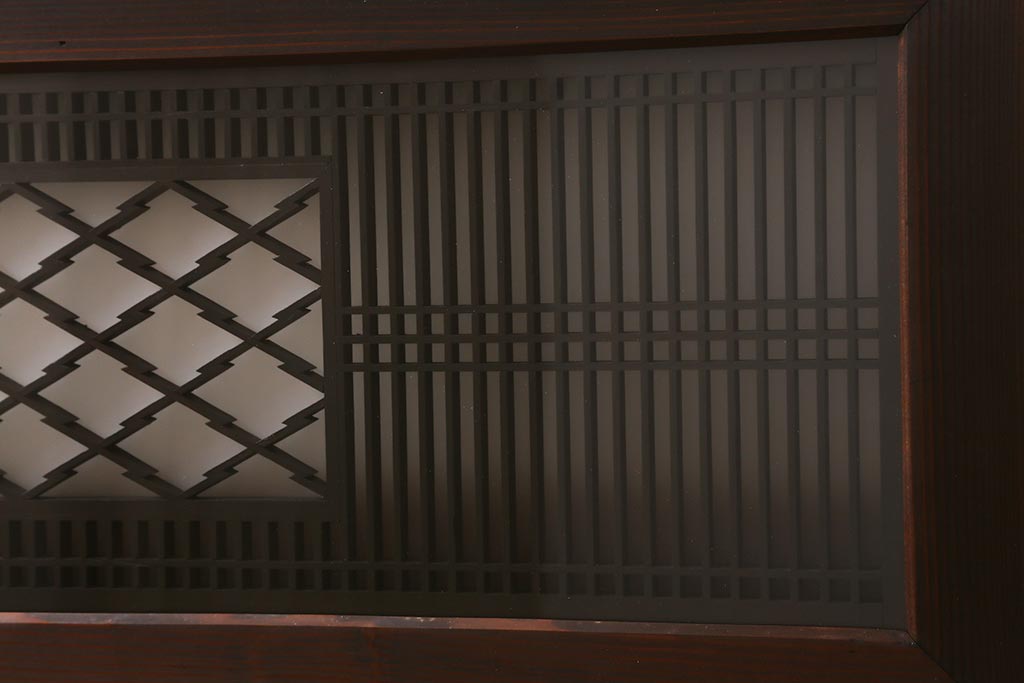 ビンテージ建具 両面ガラス入り 細かい格子と松皮菱文様の組子が優美な欄間(明り取り、明かり取り)(R-041256)