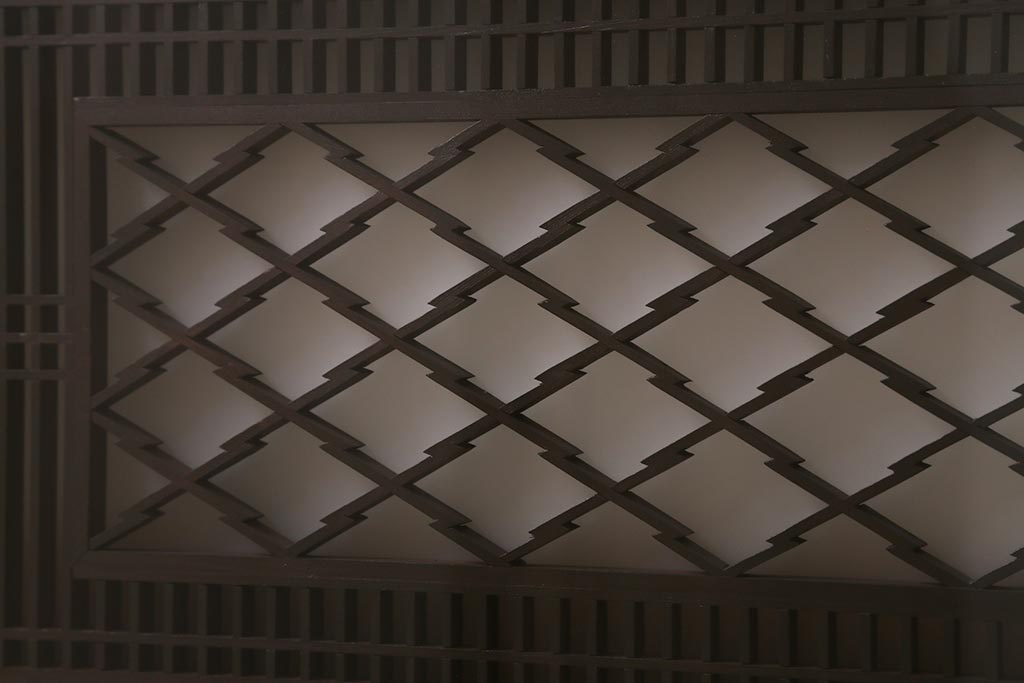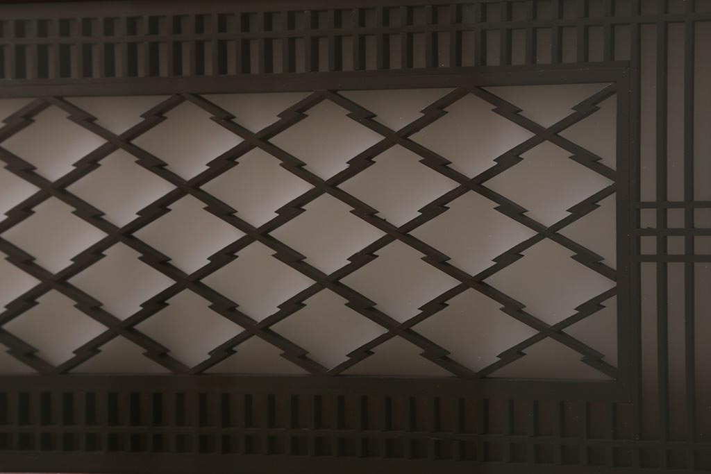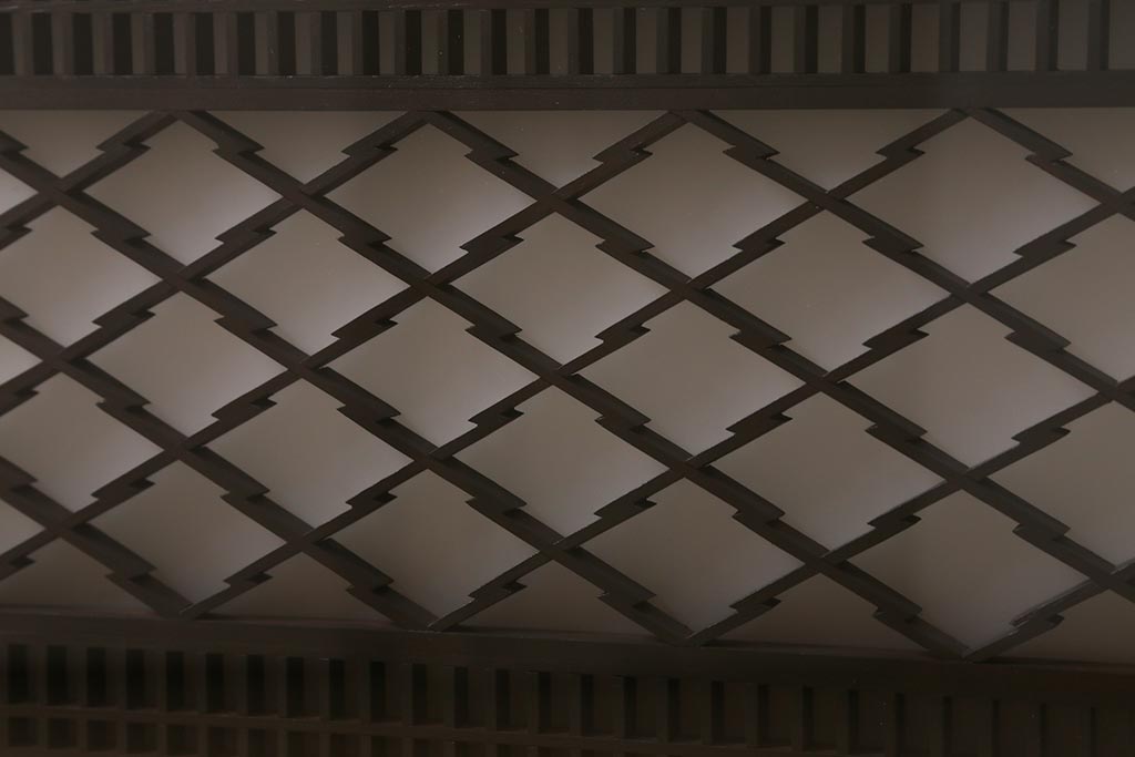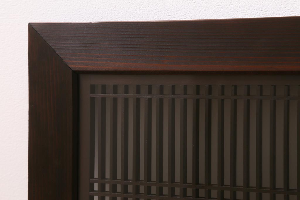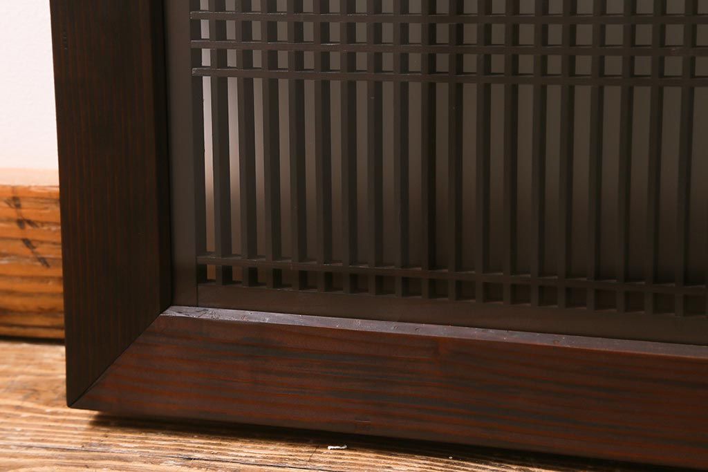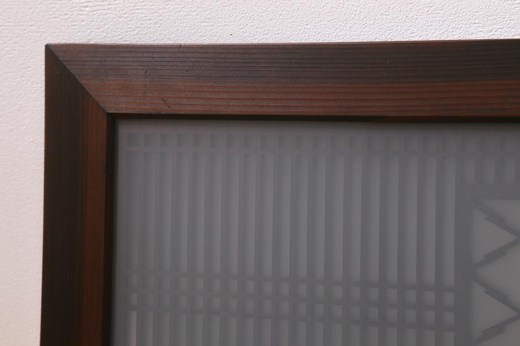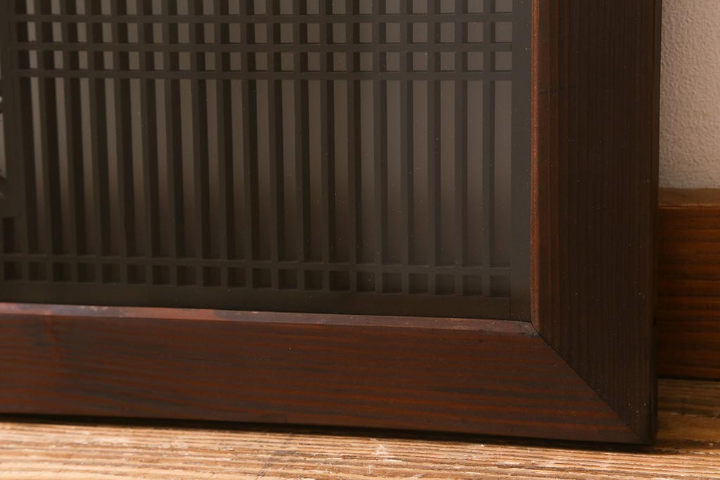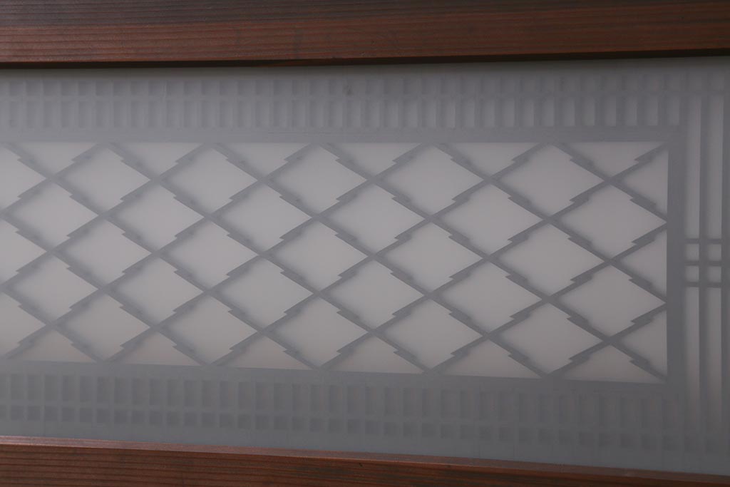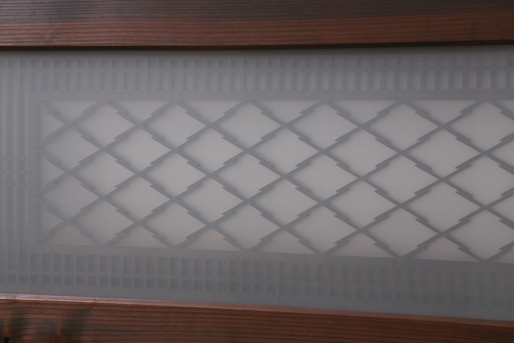 ビンテージ建具 両面ガラス入り 細かい格子と松皮菱文様の組子が優美な欄間(明り取り、明かり取り)(R-041256)