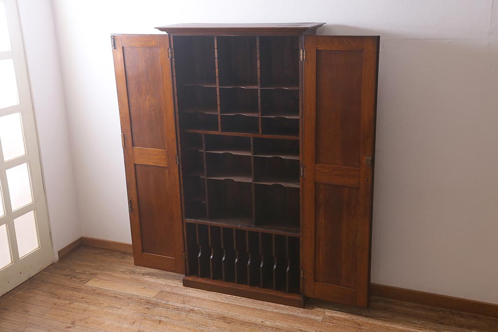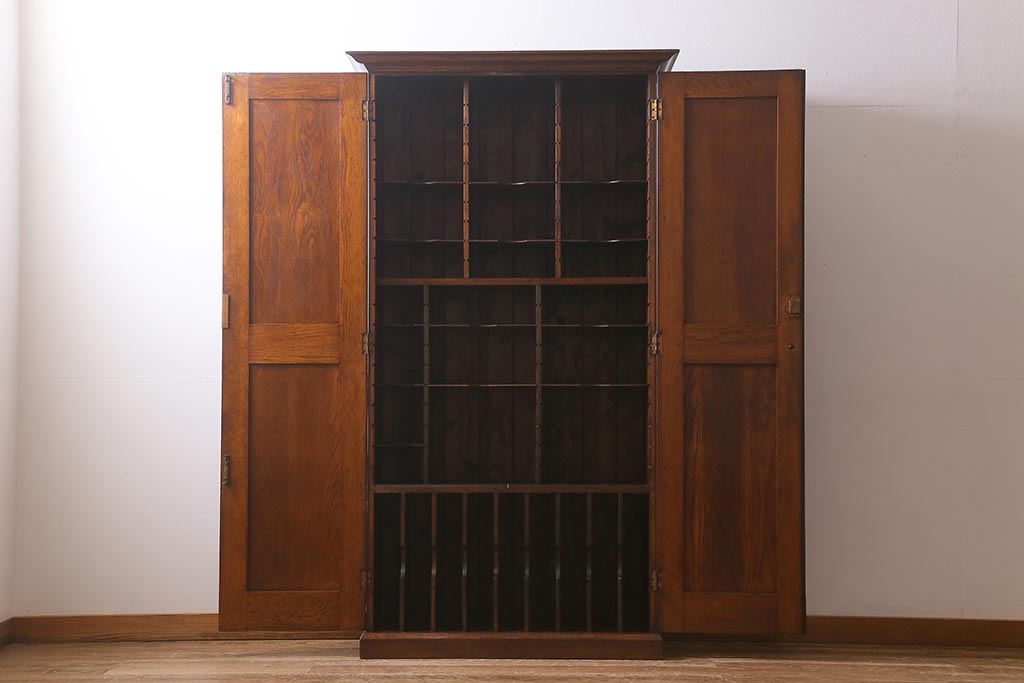 キャビネット・戸棚> 本箱 > アンティーク家具 イギリスアンティーク オーク材製 洗練された佇まいが魅力的な収納棚(戸棚、本箱、書庫)(R-041245)