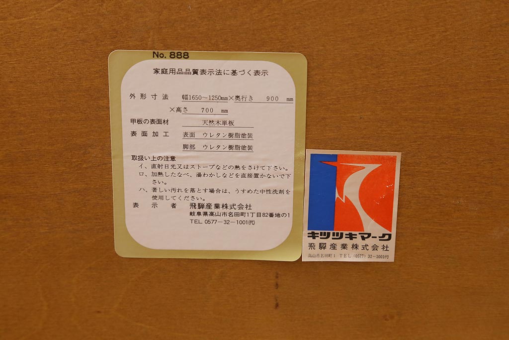 ラフジュ工房> テーブル> エクステンションテーブル > 中古 飛騨産業 穂高シリーズ キツツキマーク エレガントな雰囲気漂うエクステンションテーブル(ダイニングテーブル、拡張式テーブル)(R-041272)