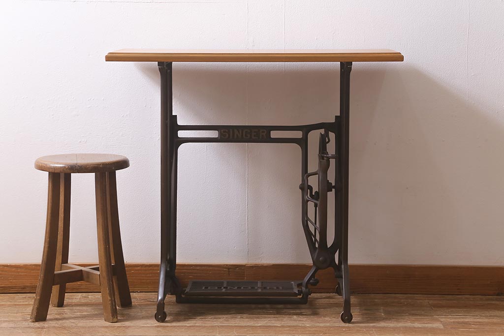 デスク> ワークデスク > レトロ家具 アンティーク シンプル レトロなシンガー社製ミシンテーブル(シンガーミシン、サイドテーブル、カフェテーブル)(R-041277)