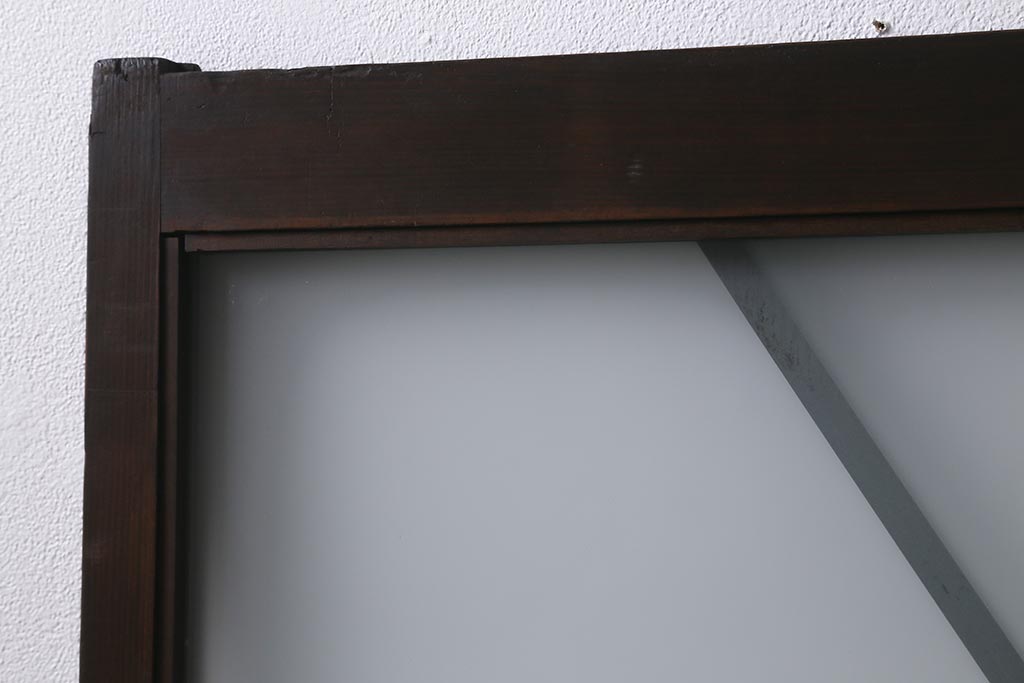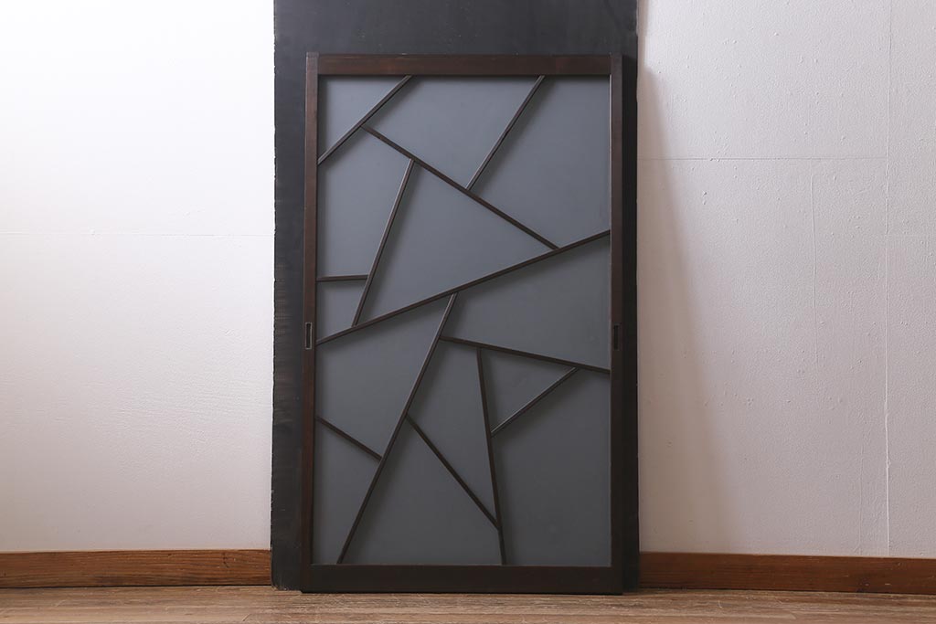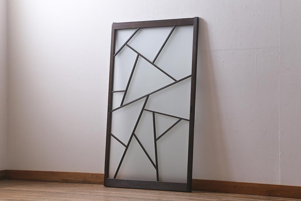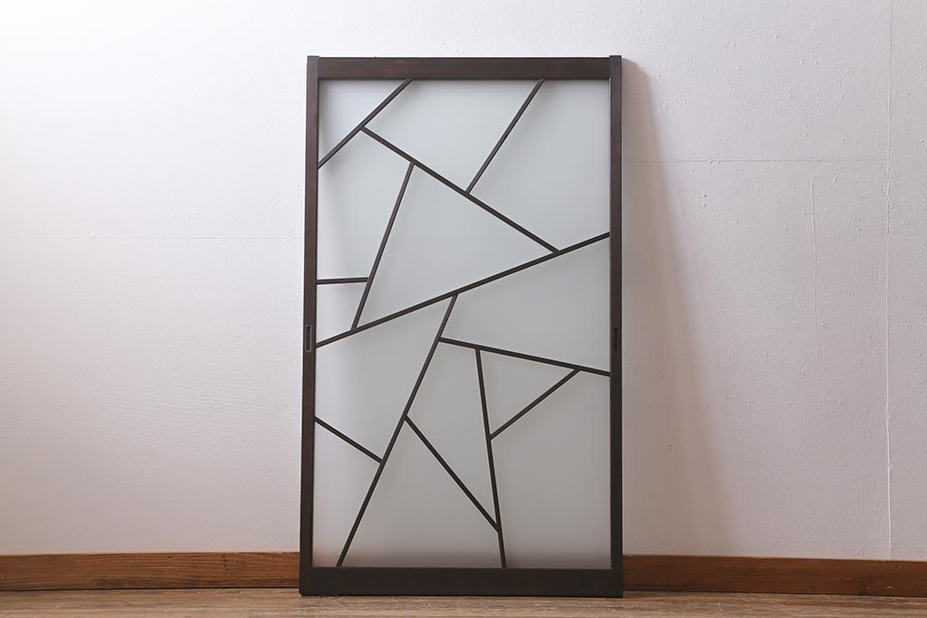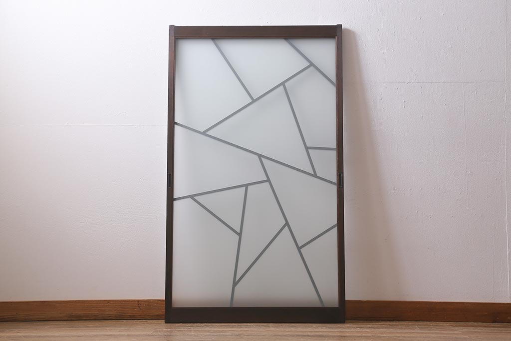 アンティーク建具 激レア! 昭和初期 すりガラス 凝ったデザインが目を引く美しいガラス戸1枚(建具、窓、引き戸)(R-041237)