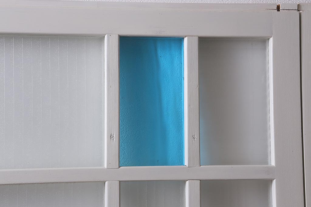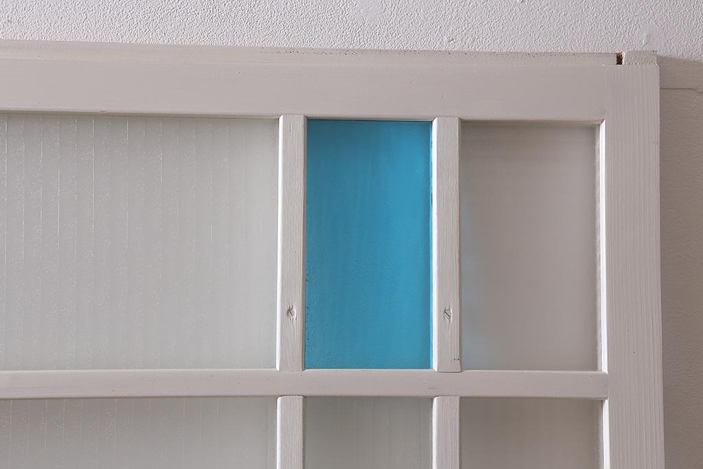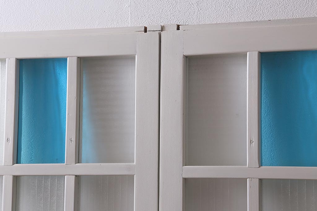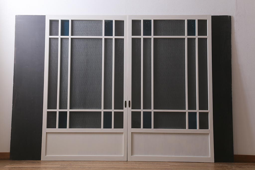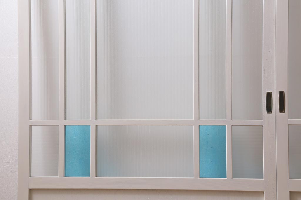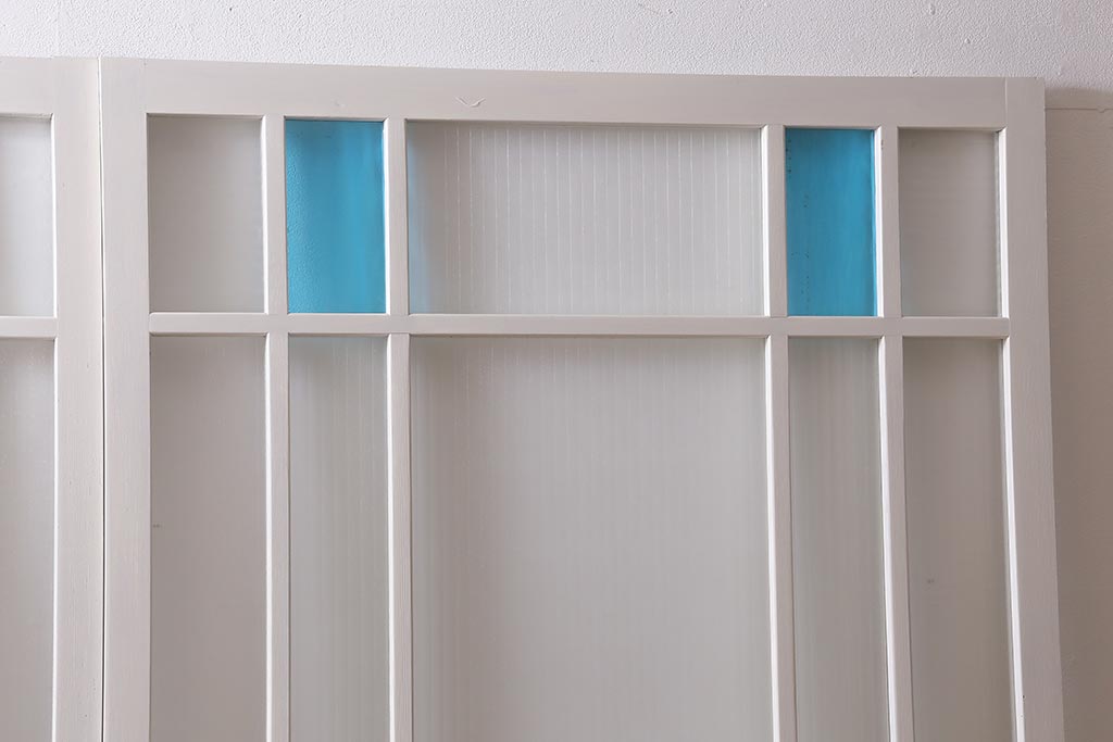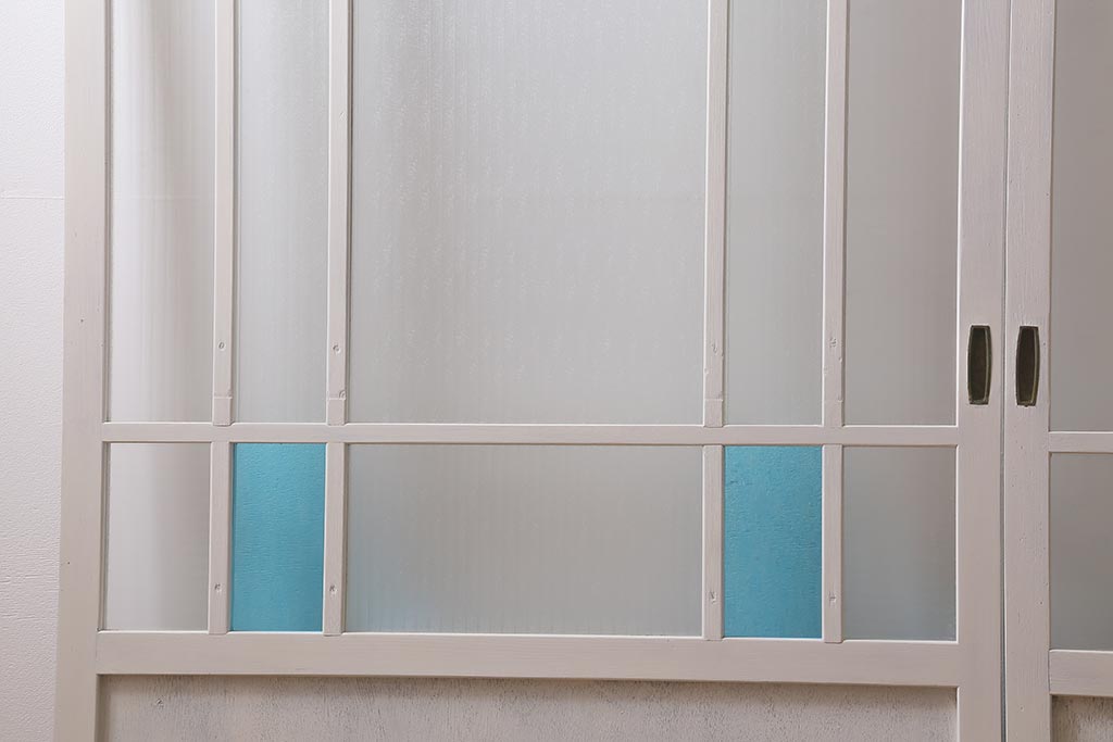 ドア・建具> 引き戸 > アンティーク建具 昭和中期 ペイント 色ガラス・銀モールガラス 爽やかなカラーが目を引くガラス戸2枚セット(引き戸、建具)(R-041320)