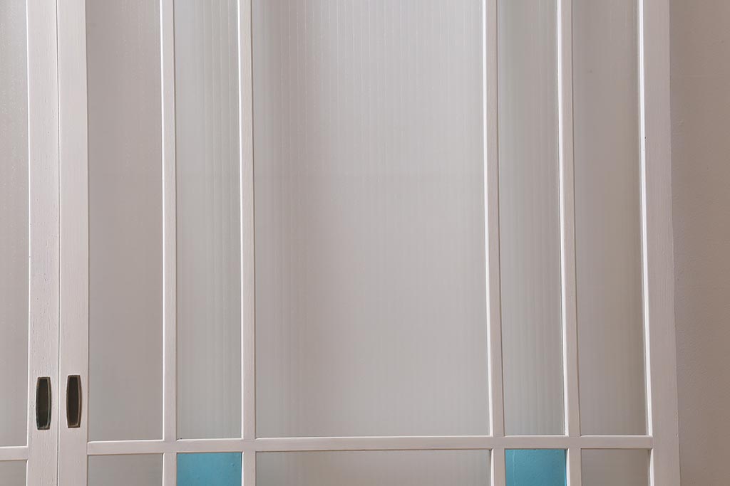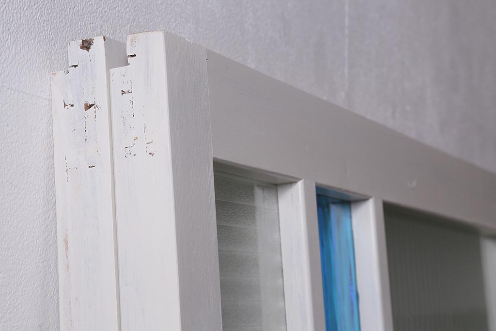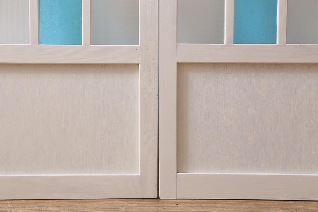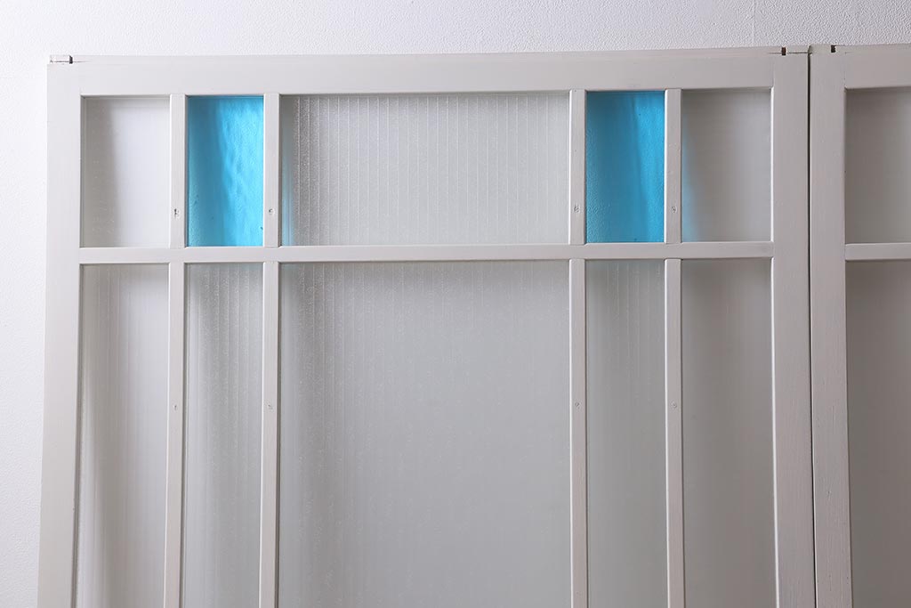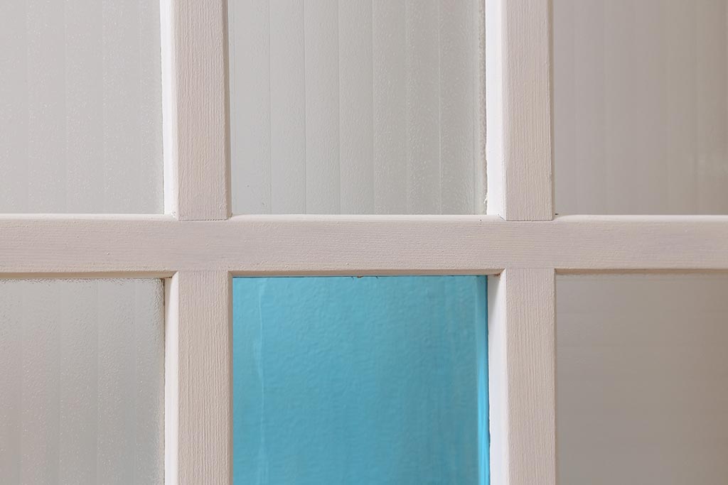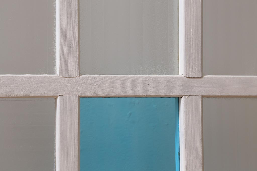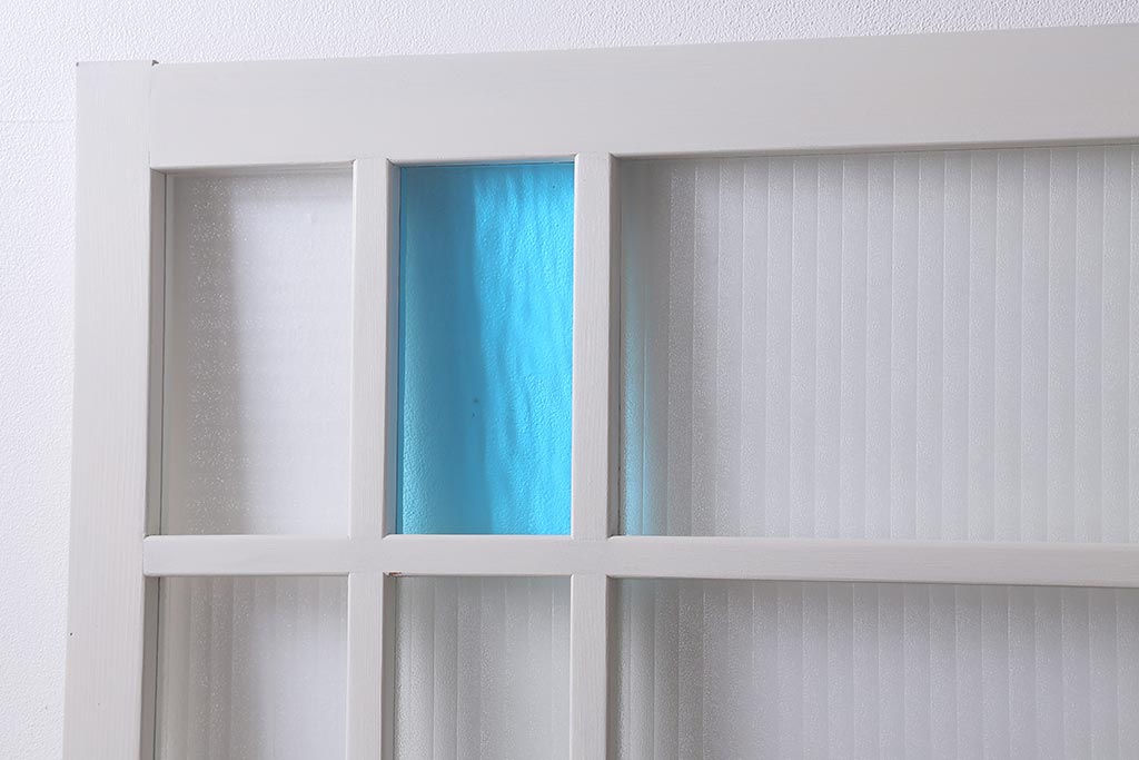 ドア・建具> 引き戸 > アンティーク建具 昭和中期 ペイント 色ガラス・銀モールガラス 爽やかなカラーが目を引くガラス戸2枚セット(引き戸、建具)(R-041320)