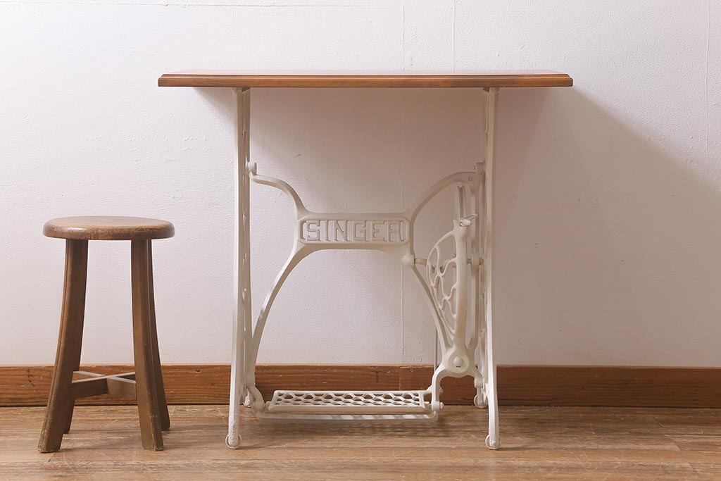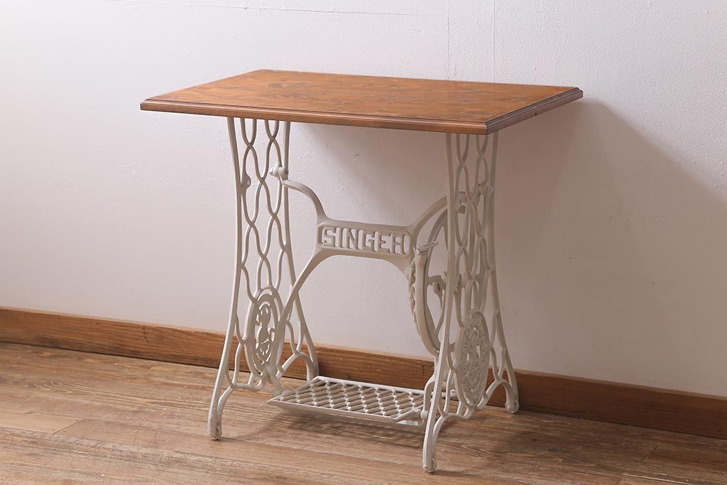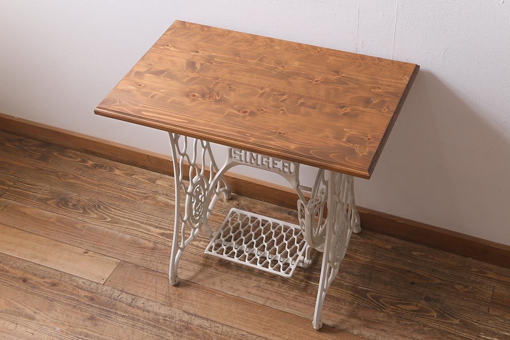 テーブル> 作業台 > シンガー社(SINGER) 天板ヒノキ材 リメイク ナチュラルインテリアにぴったりなミシンテーブル(シンガーミシン、サイドテーブル、カフェテーブル)(R-041276)