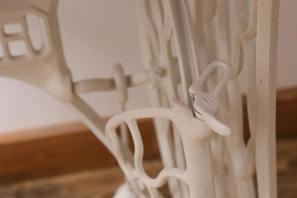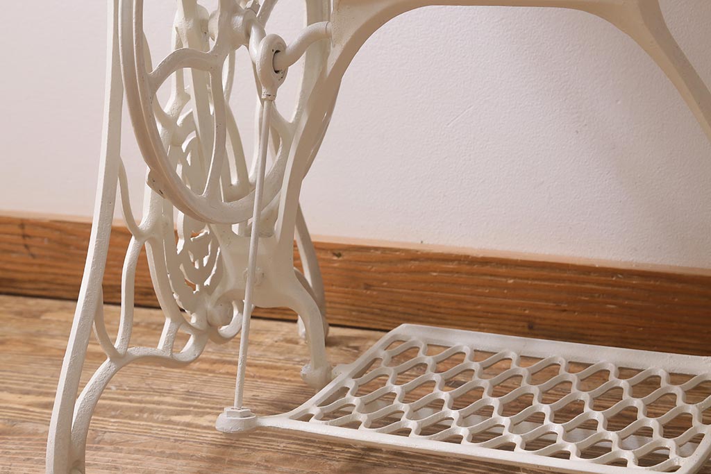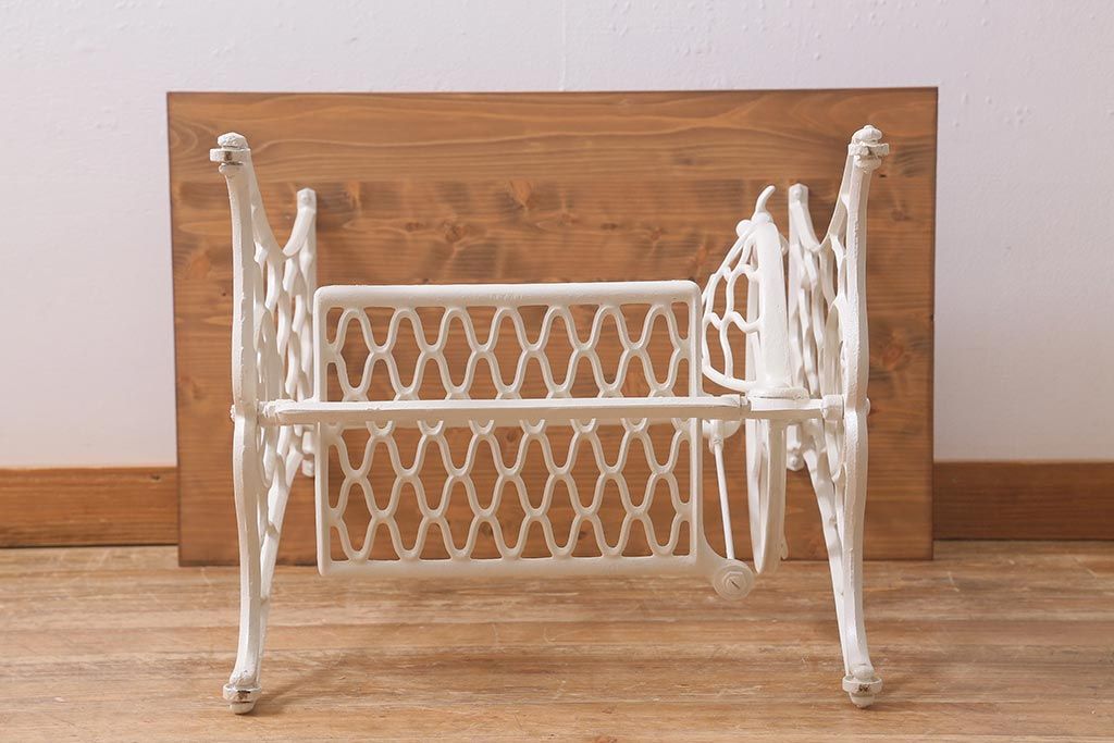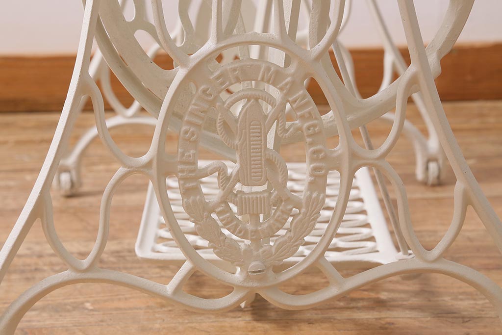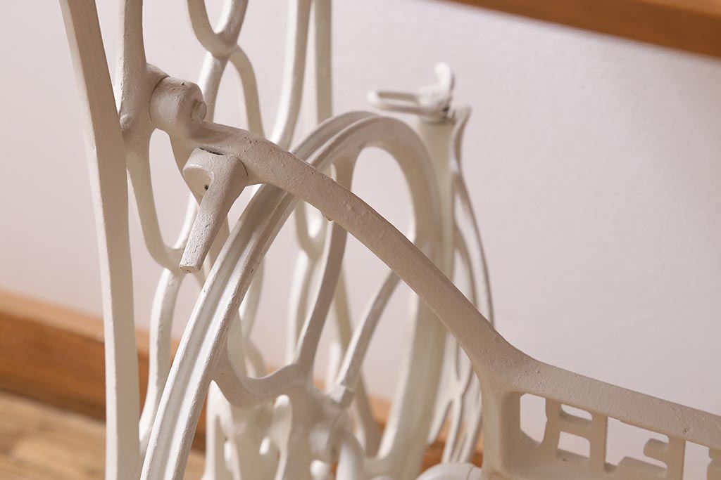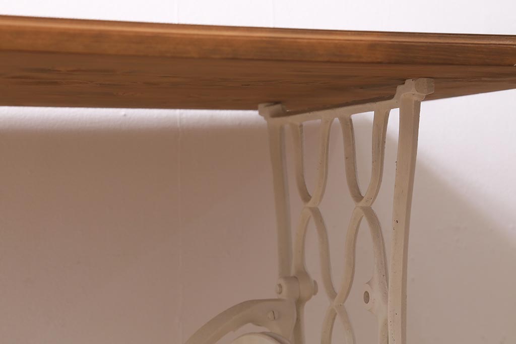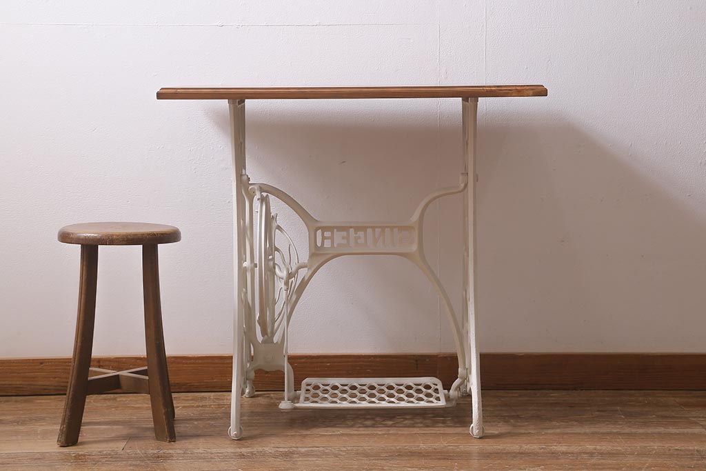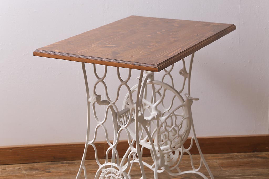 テーブル> 鉄脚テーブル > シンガー社(SINGER) 天板ヒノキ材 リメイク ナチュラルインテリアにぴったりなミシンテーブル(シンガーミシン、サイドテーブル、カフェテーブル)(R-041276)