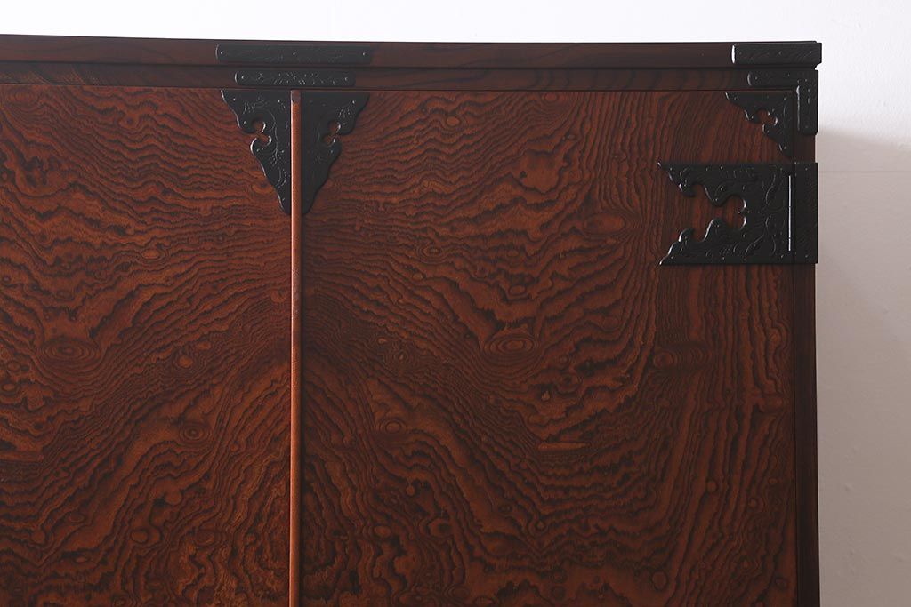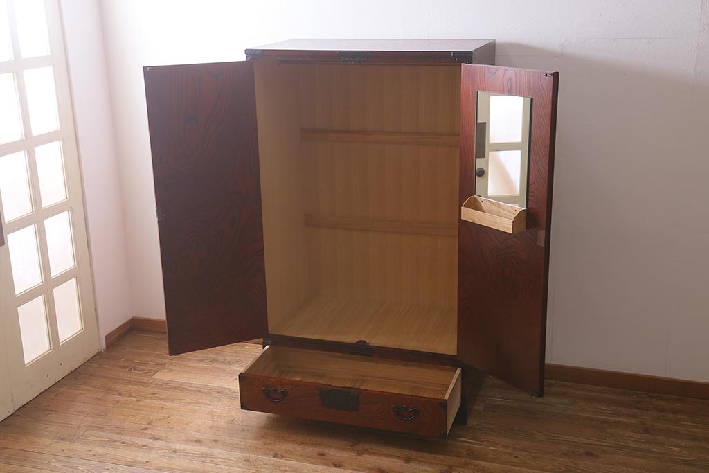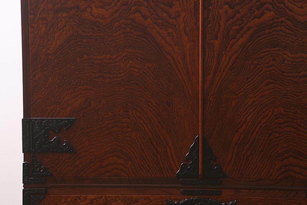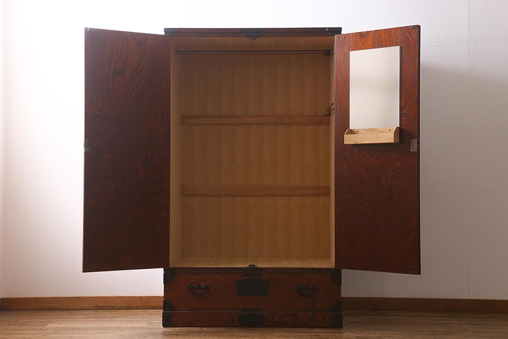 ワードローブ・ロッカー> ワードローブ > 中古 伝統民芸家具 岩谷堂箪笥 漆塗り みちのくA3型 味わい深い杢目が目を引く洋服タンス(ワードローブ)(R-041318)