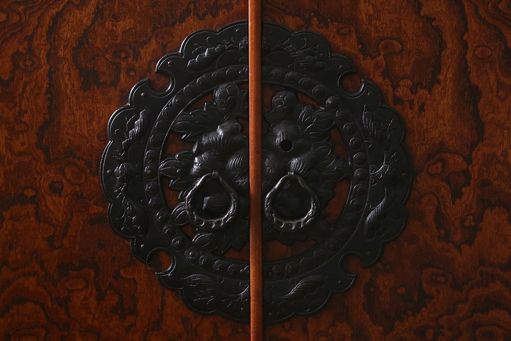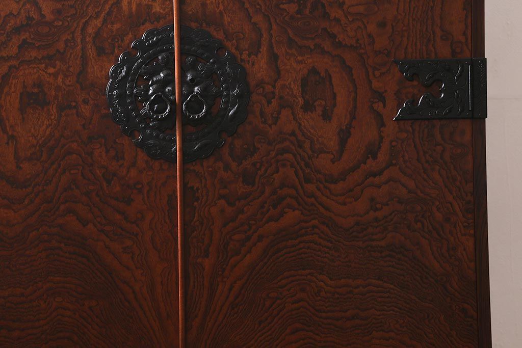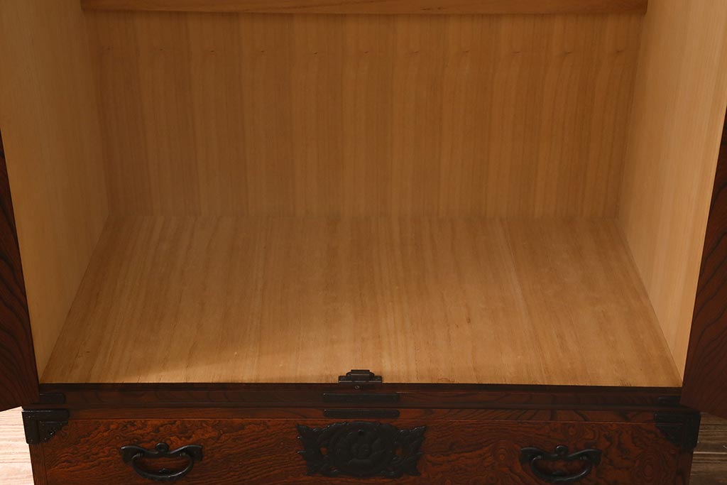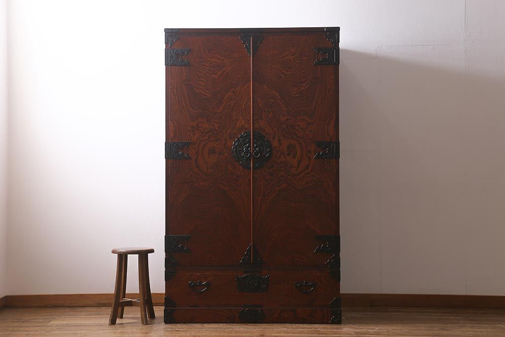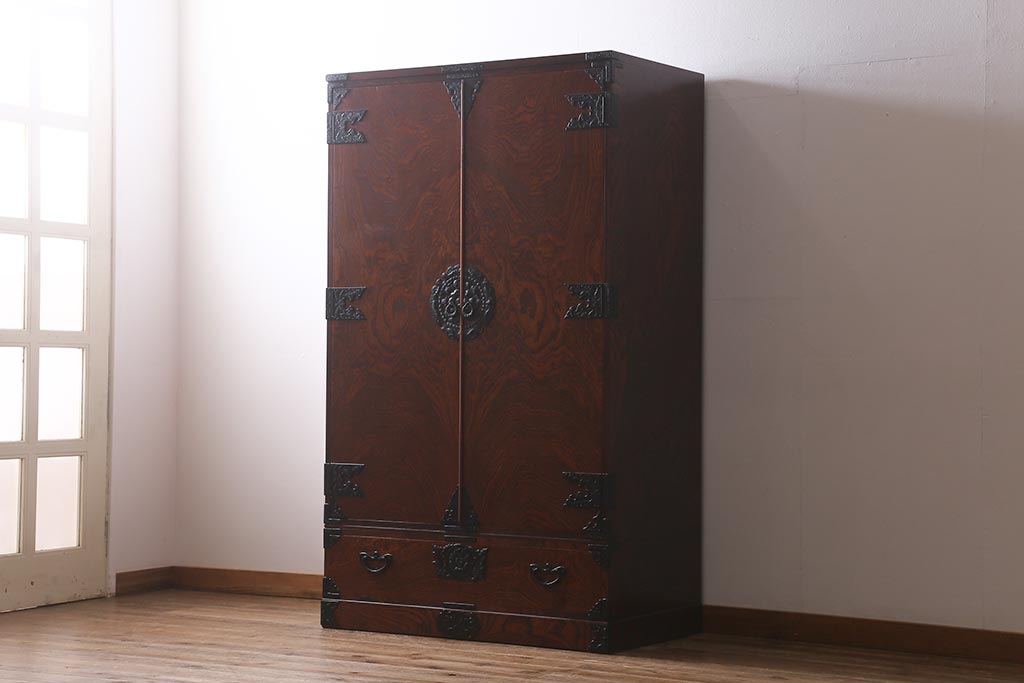 ワードローブ・ロッカー> ワードローブ > 中古 伝統民芸家具 岩谷堂箪笥 漆塗り みちのくA3型 味わい深い杢目が目を引く洋服タンス(ワードローブ)(R-041318)