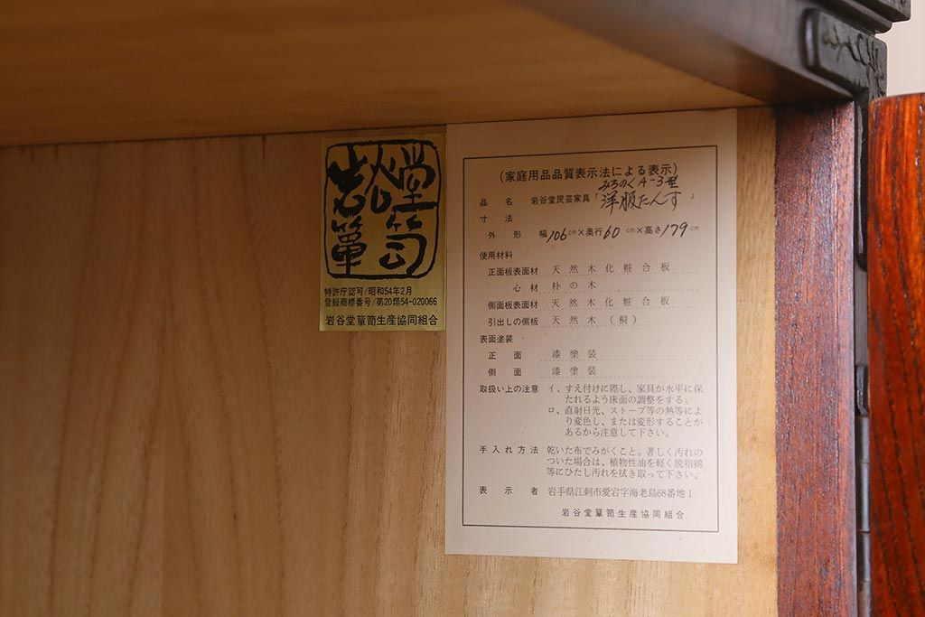 伝統民芸家具、岩谷堂箪笥の洋服タンスです。