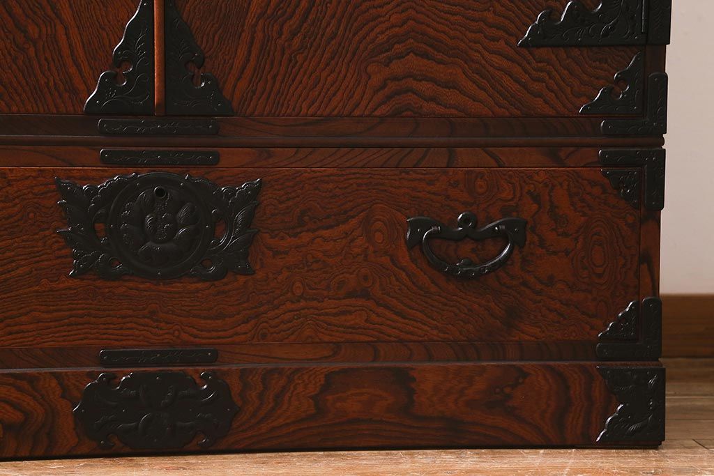 中古 伝統民芸家具 岩谷堂箪笥 漆塗り みちのくA3型 味わい深い杢目が目を引く洋服タンス(ワードローブ)(R-041318)