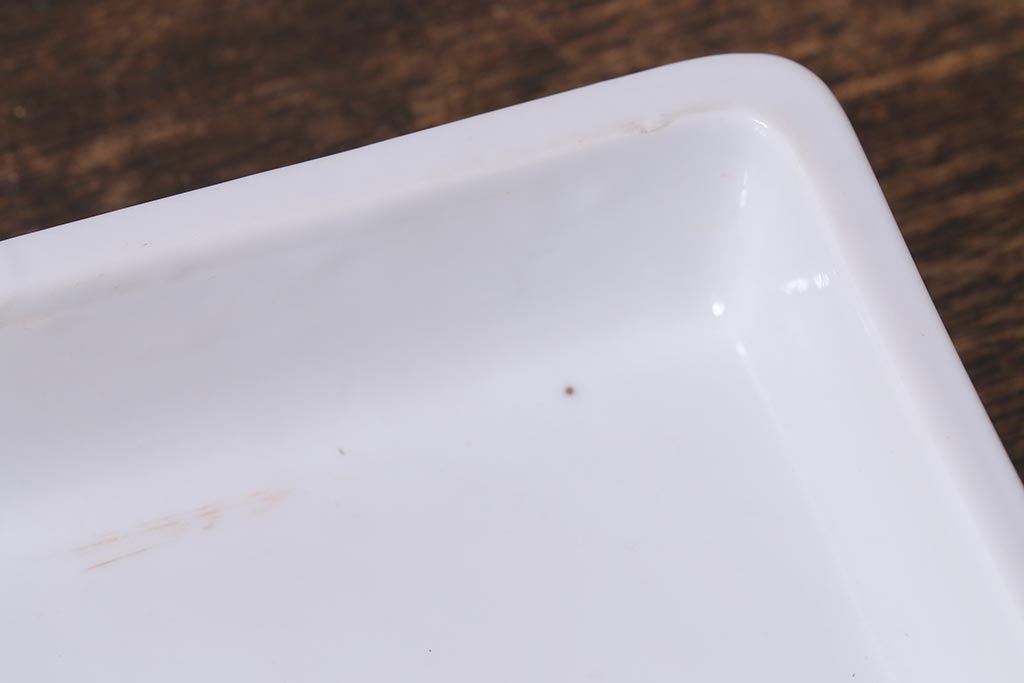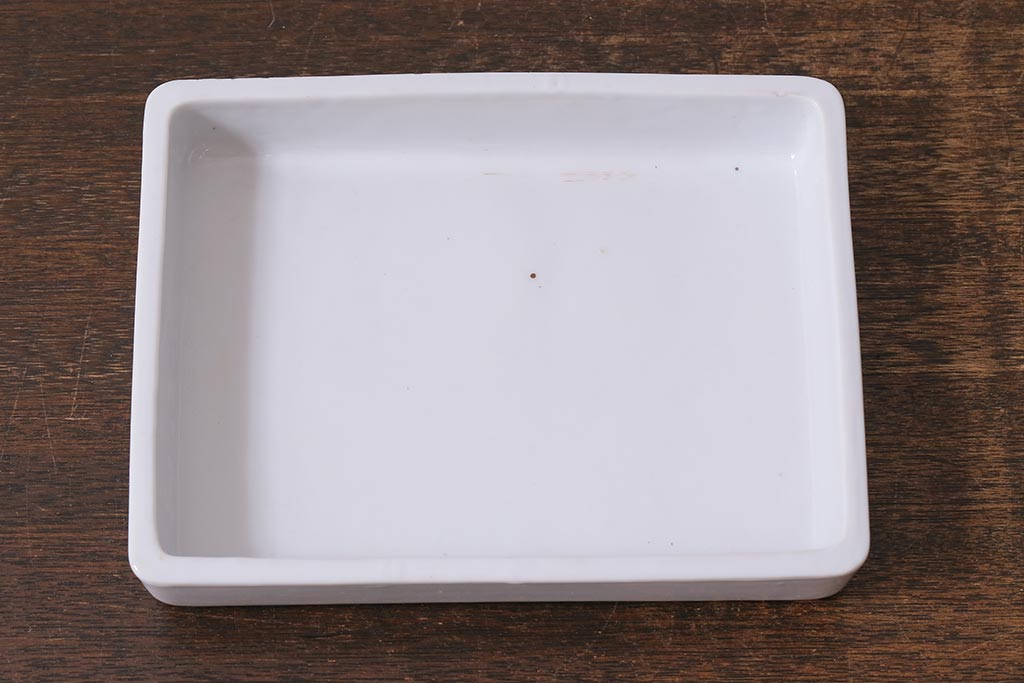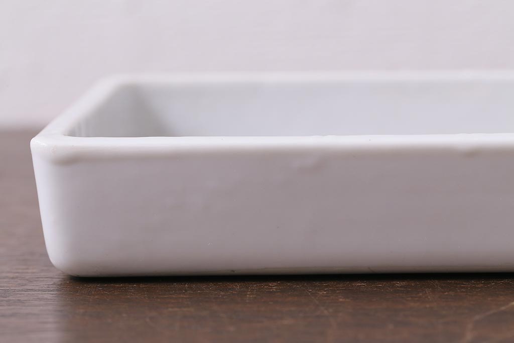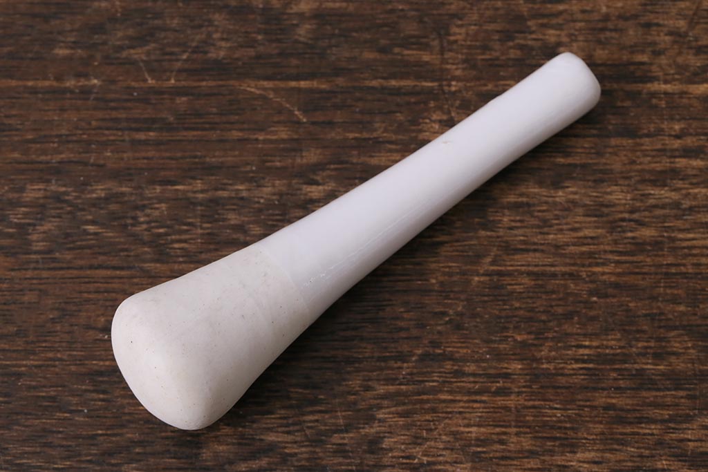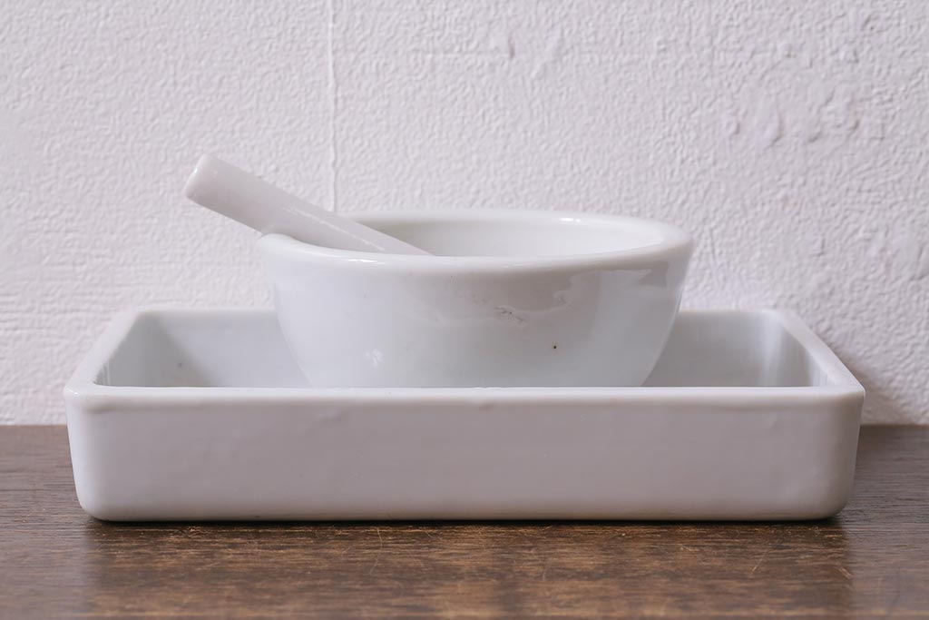 アンティーク雑貨 昭和初期 角皿付きの古い乳鉢(乳棒付き)(R-040849)
