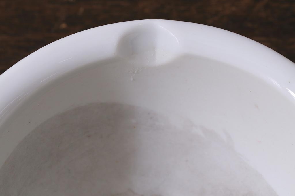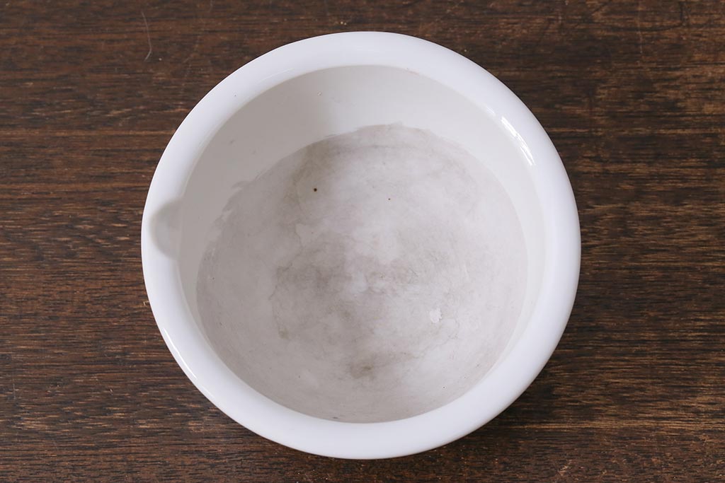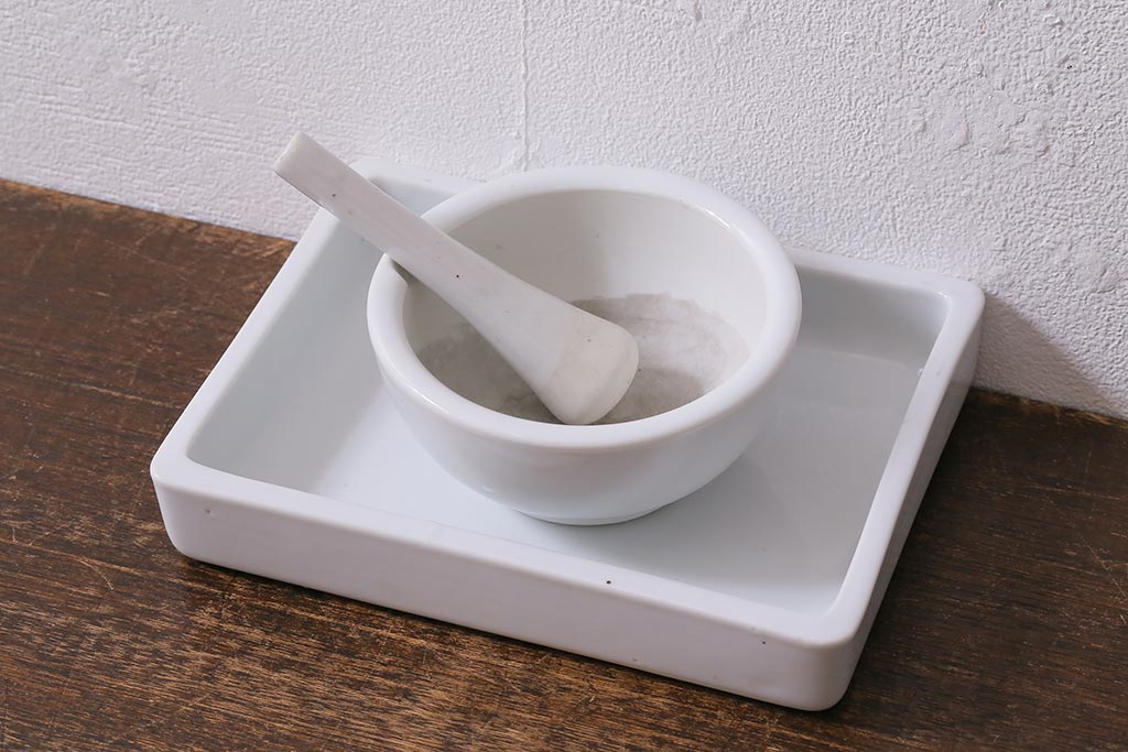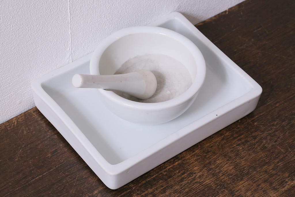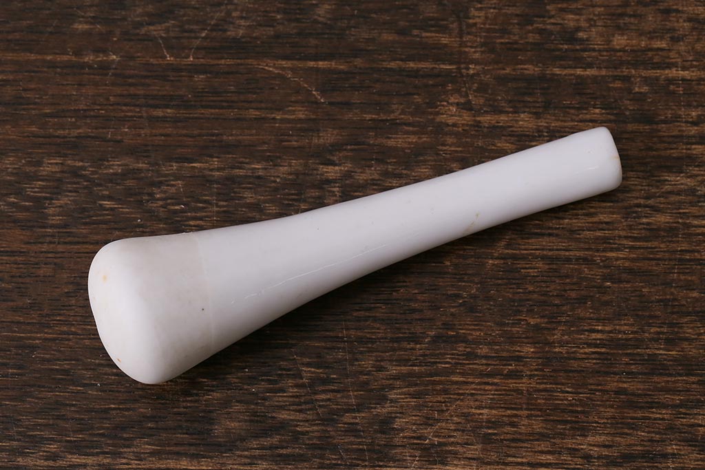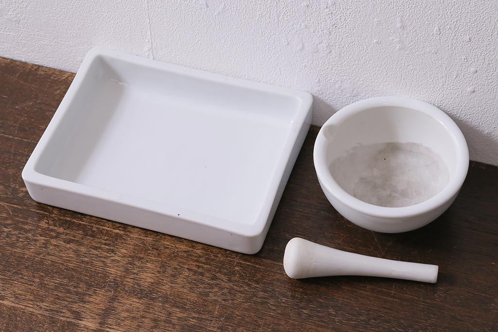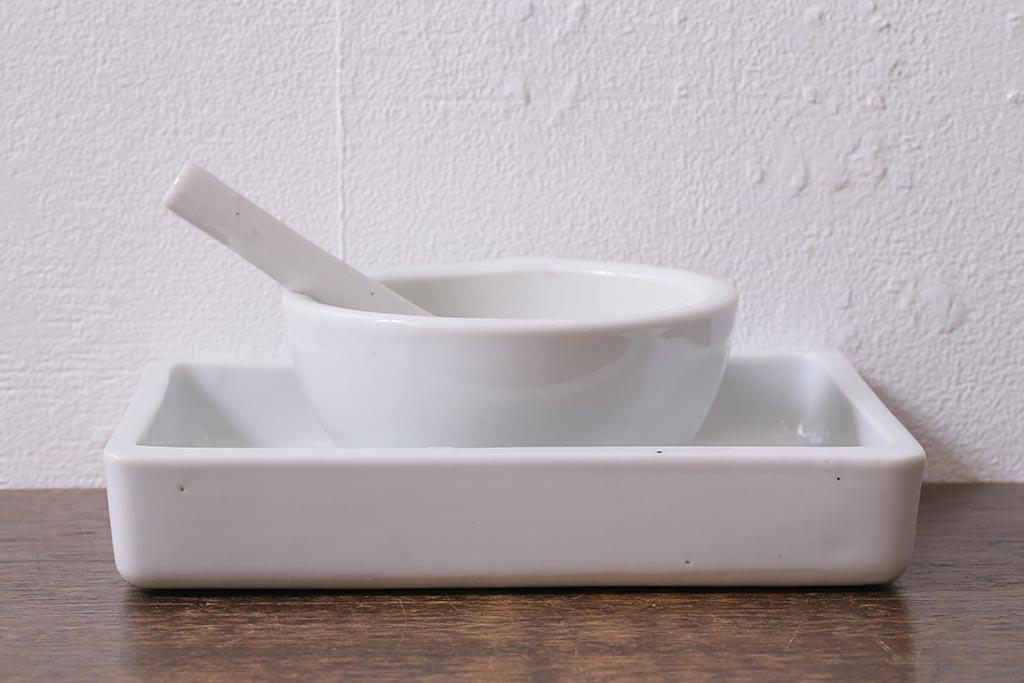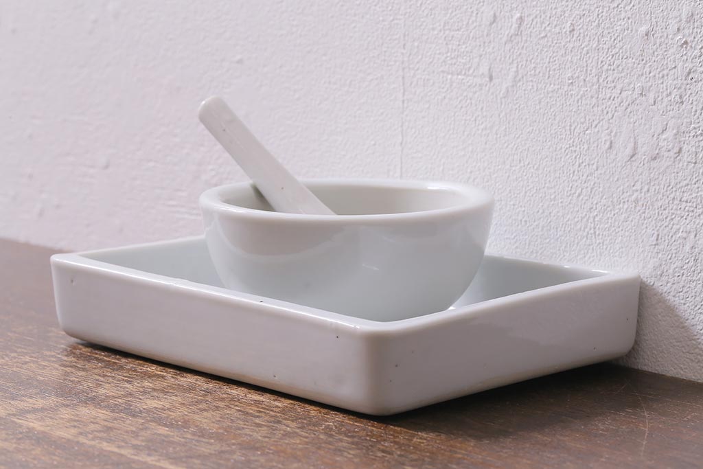 アンティーク雑貨 昭和初期 角皿付きの古い乳鉢(乳棒付き)(R-040848)